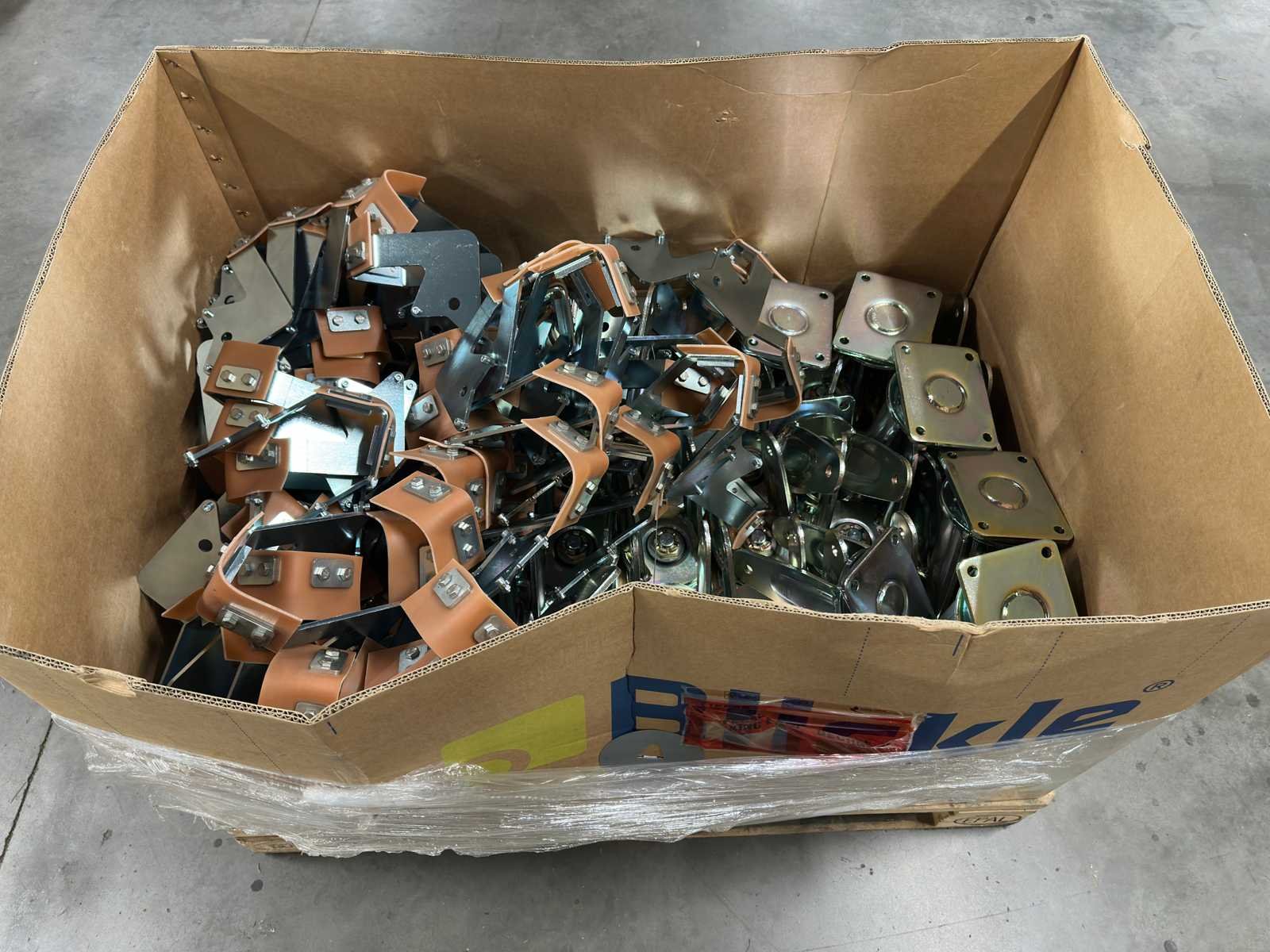 <li>Partij gegalvaniseerde stalen beugels, klemmen en montageplaten (453KG)</li> <li> Gewicht: 453KG net </li> No