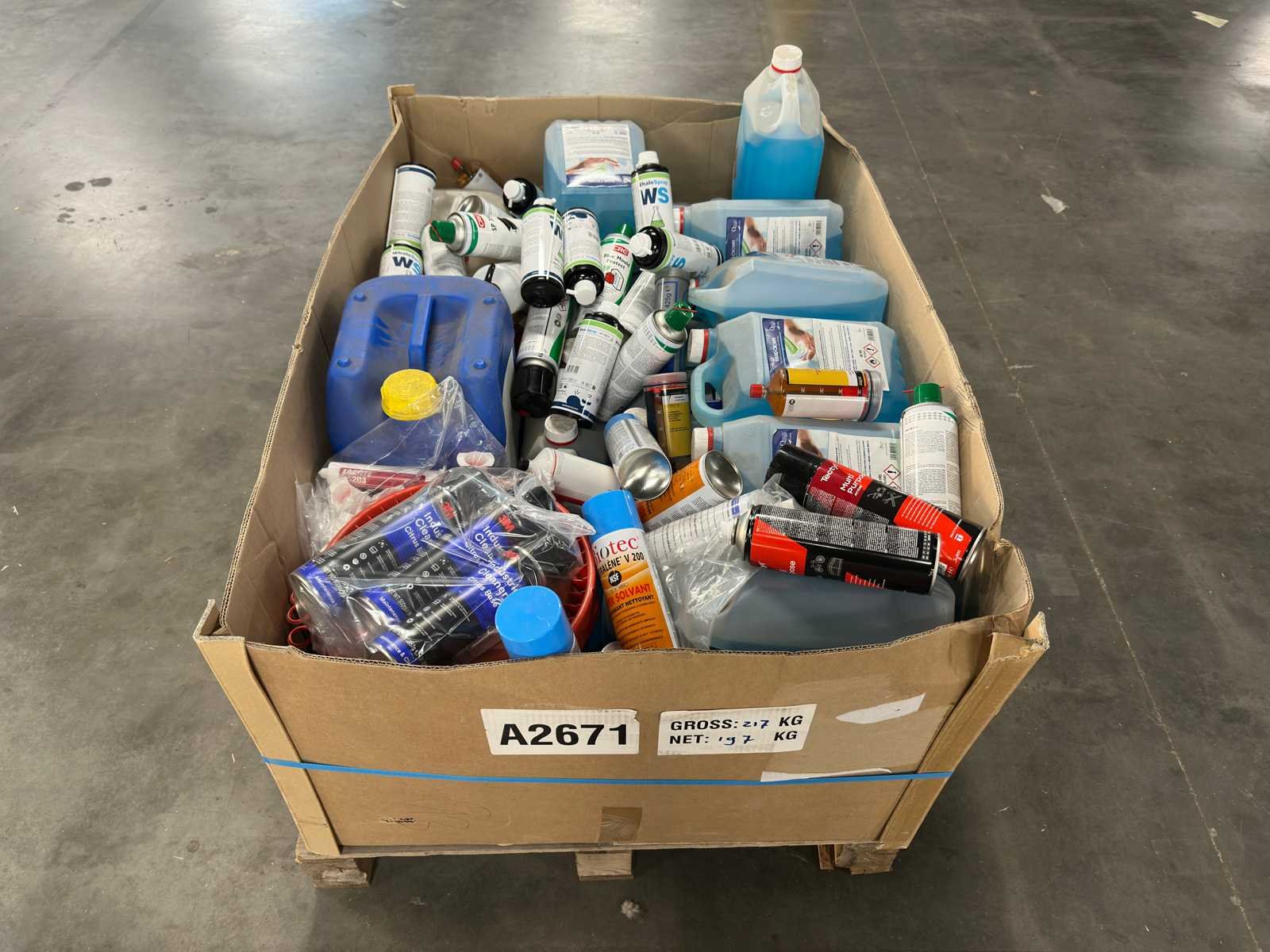 <li>Partij onderhouds- & reinigingsmiddelen</li> <li> Staat: ongebruikt</li> <li> Gewicht: 197KG net </li> No