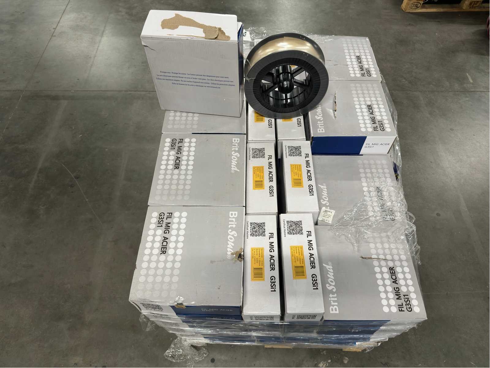 <li>Partij MIG lasdraad staal G3Si1 rollen - Ø1,0 mm (D300 / 15 kg per rol)</li> <li> Staat: ongebruikt</li> <li> Gewicht: 1002KG net </li> No Merk: Brit Sound