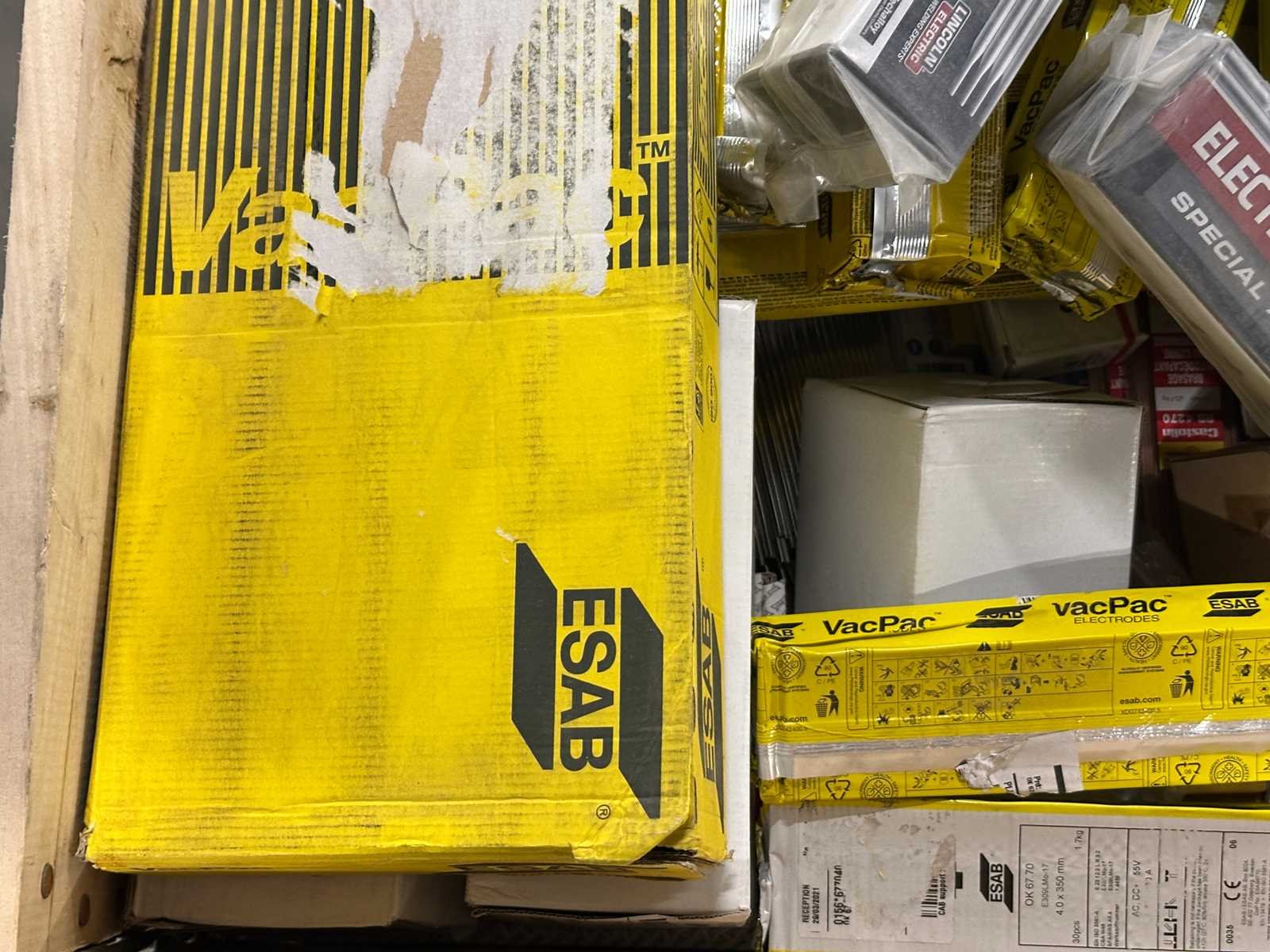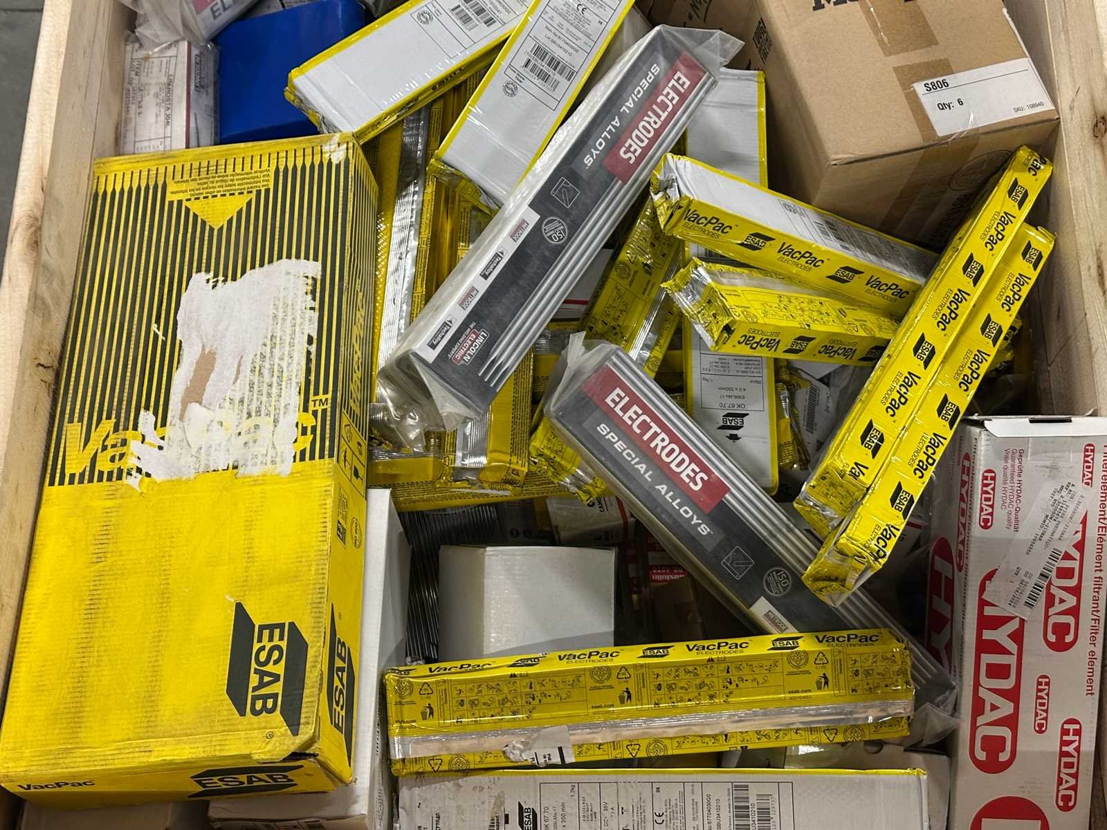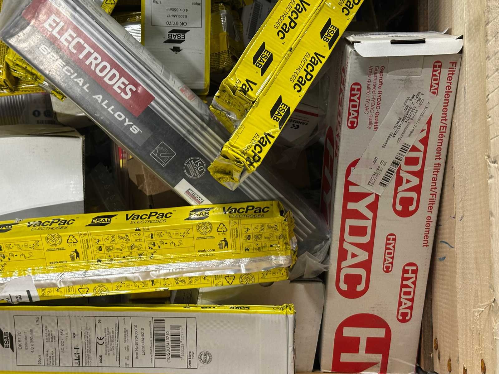 <li>Partij lasverbruiksmateriaal – diverse elektroden/lasstaven</li> <li> Gewicht: 221KG net </li> No Merk: ESAB / Mix