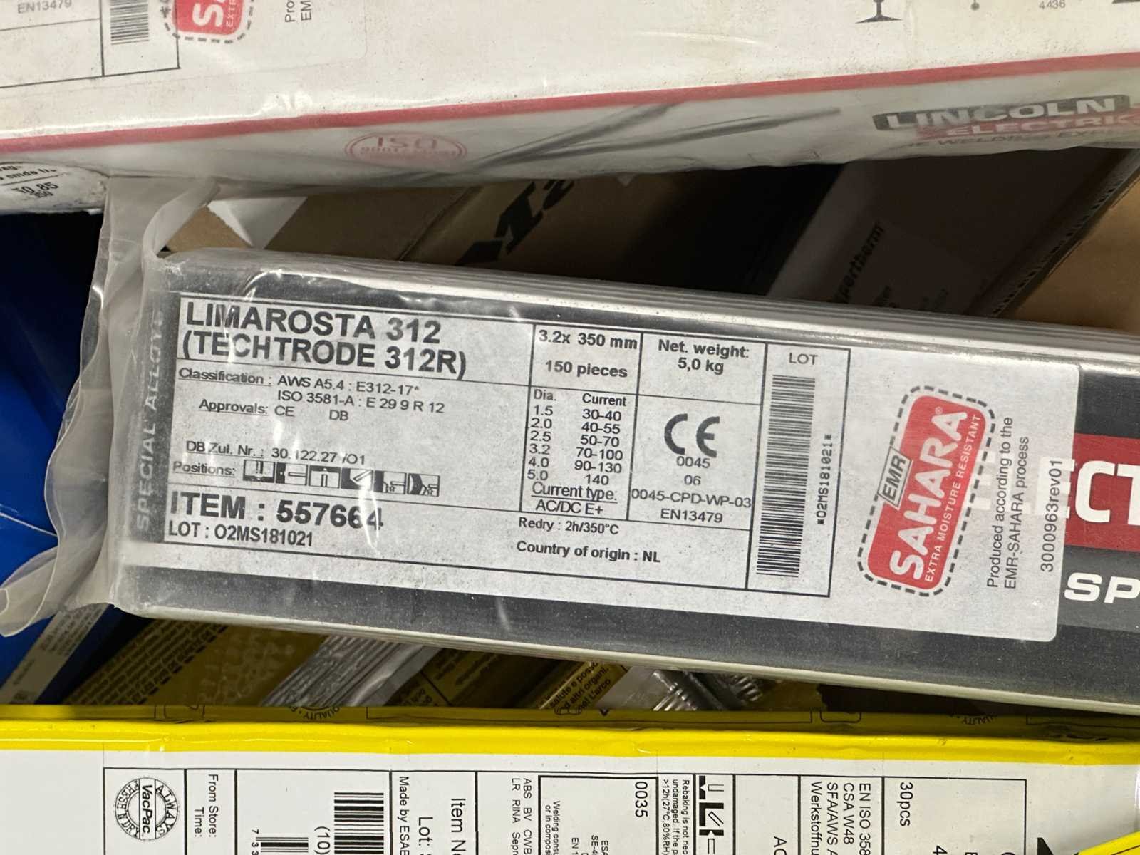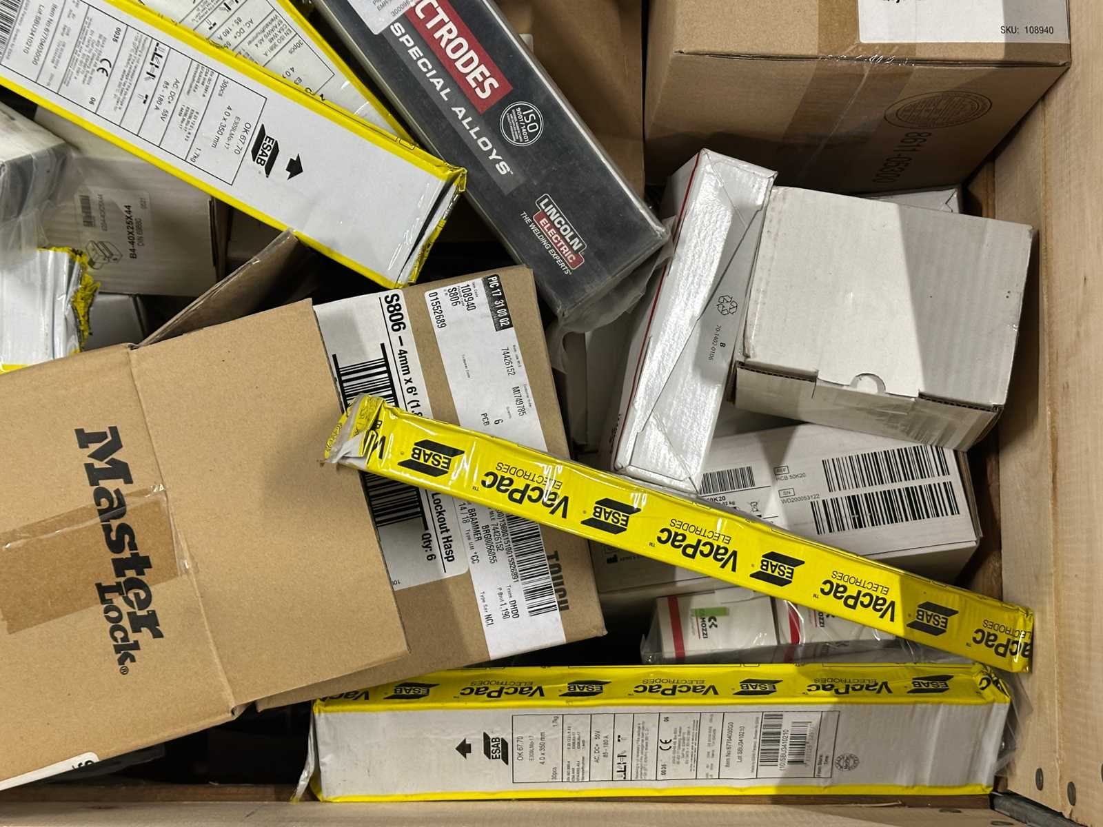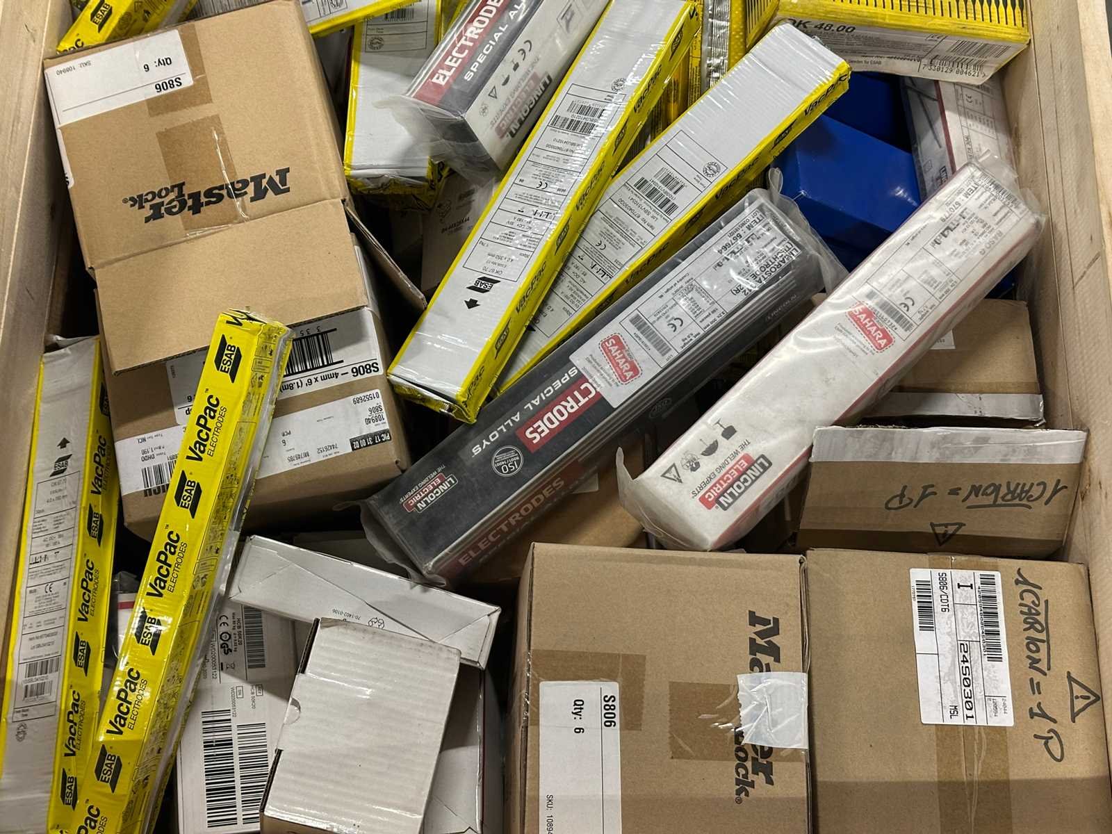 <li>Partij lasverbruiksmateriaal – diverse elektroden/lasstaven</li> <li> Gewicht: 221KG net </li> No Merk: ESAB / Mix