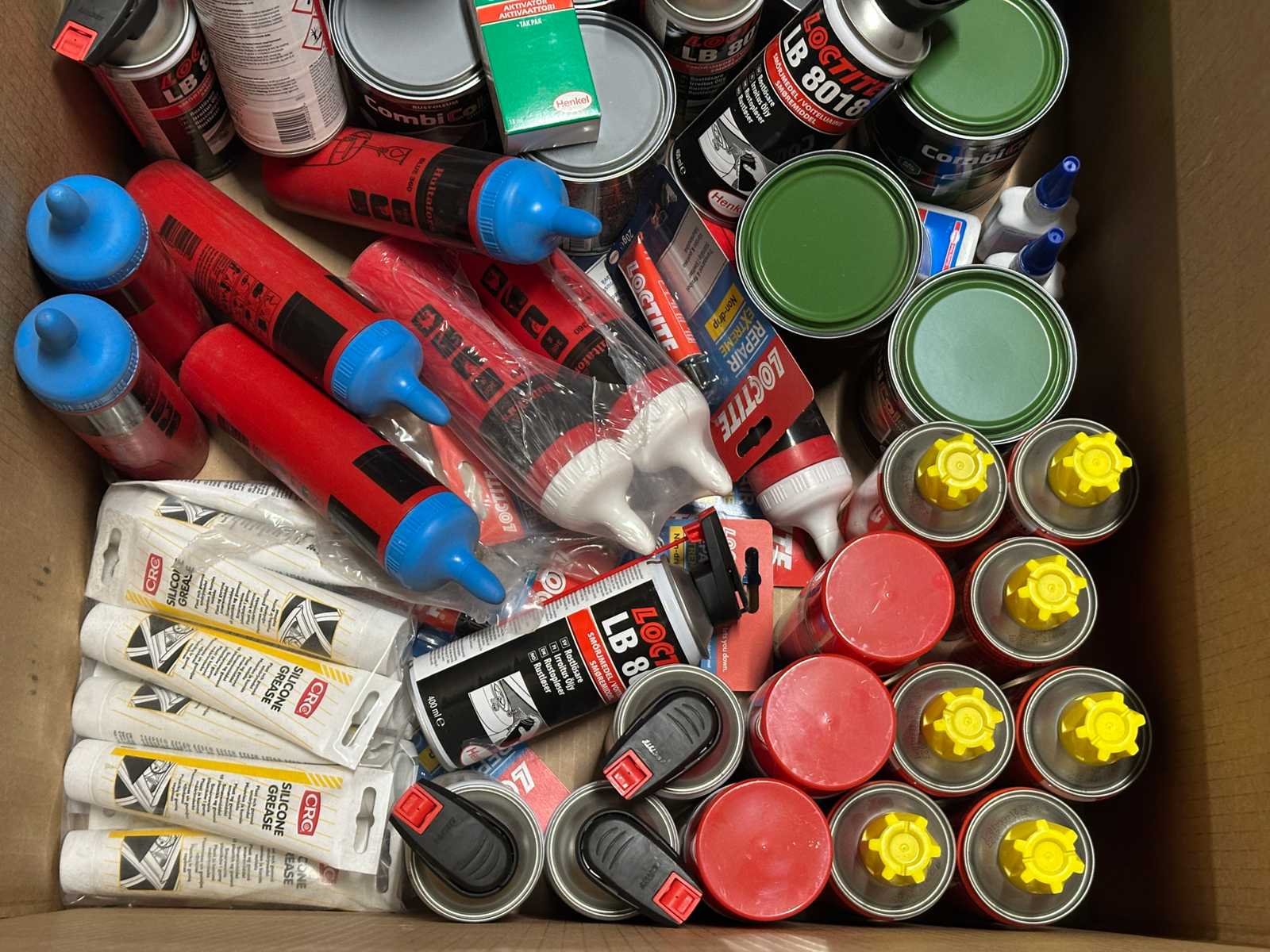 <li> Partij Loctite/CRC/Rust-Oleum sprays, vet & reinigers</li> <li> Staat: ongebruikt</li> <li> Gewicht: 36KG net </li> No