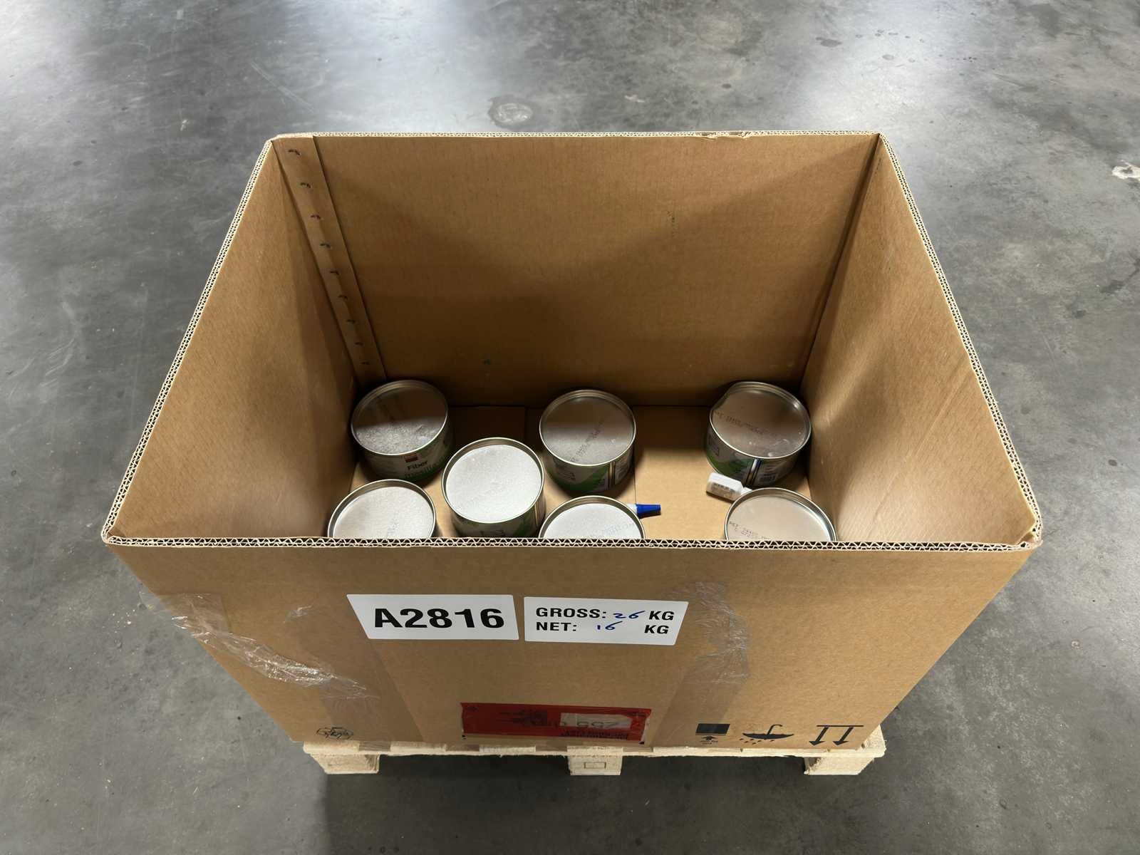 <li> Partij blikken glasvezelplamuur / fiberglass filler</li> <li> Gewicht: 16KG net </li> No Merk: Krafft
