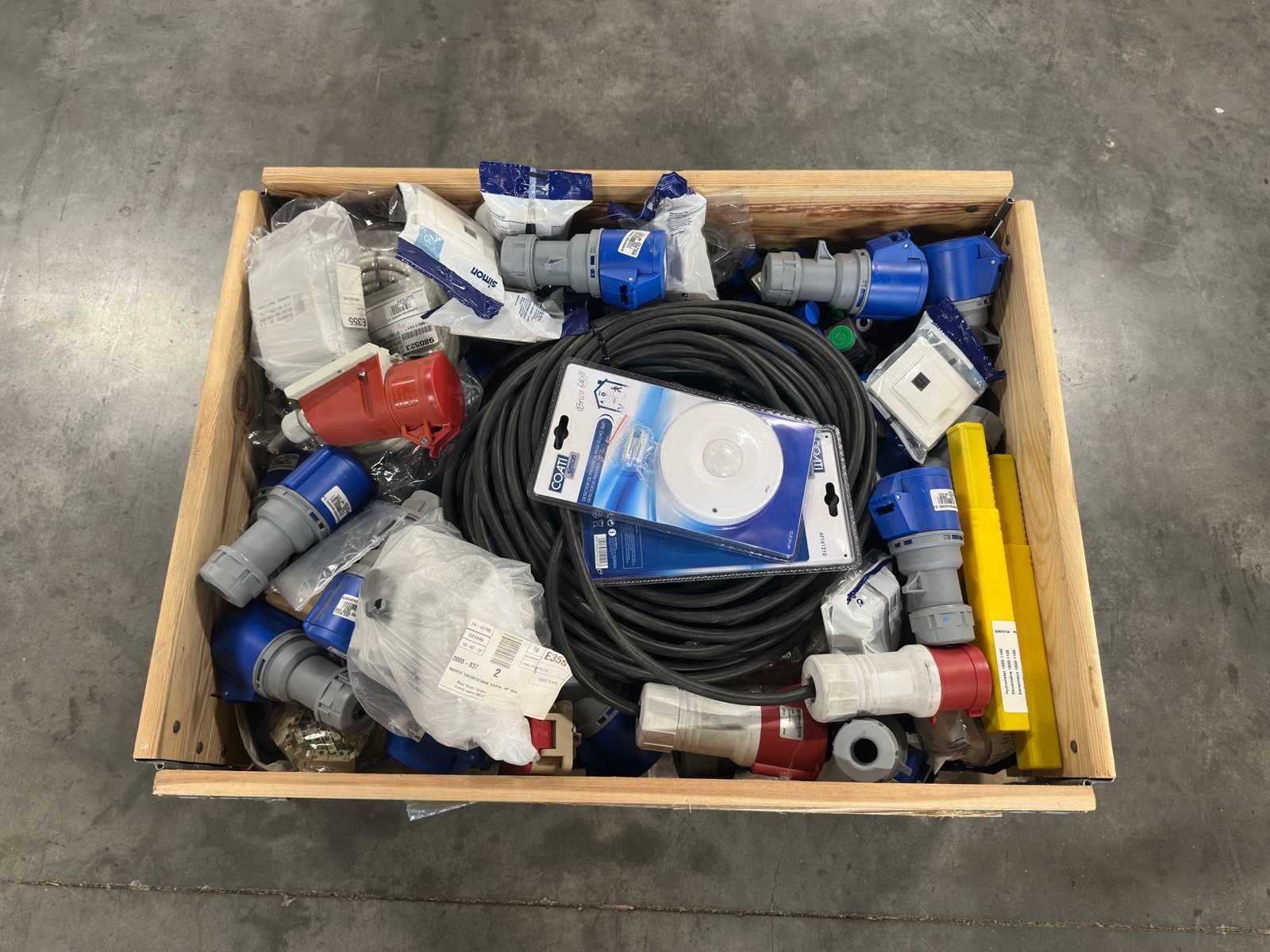 Partij krachtstroom stekkers/contra’s, kabel & sensoren