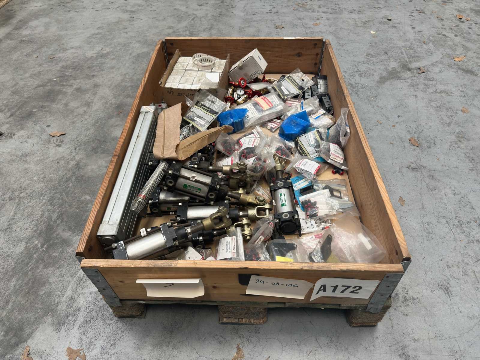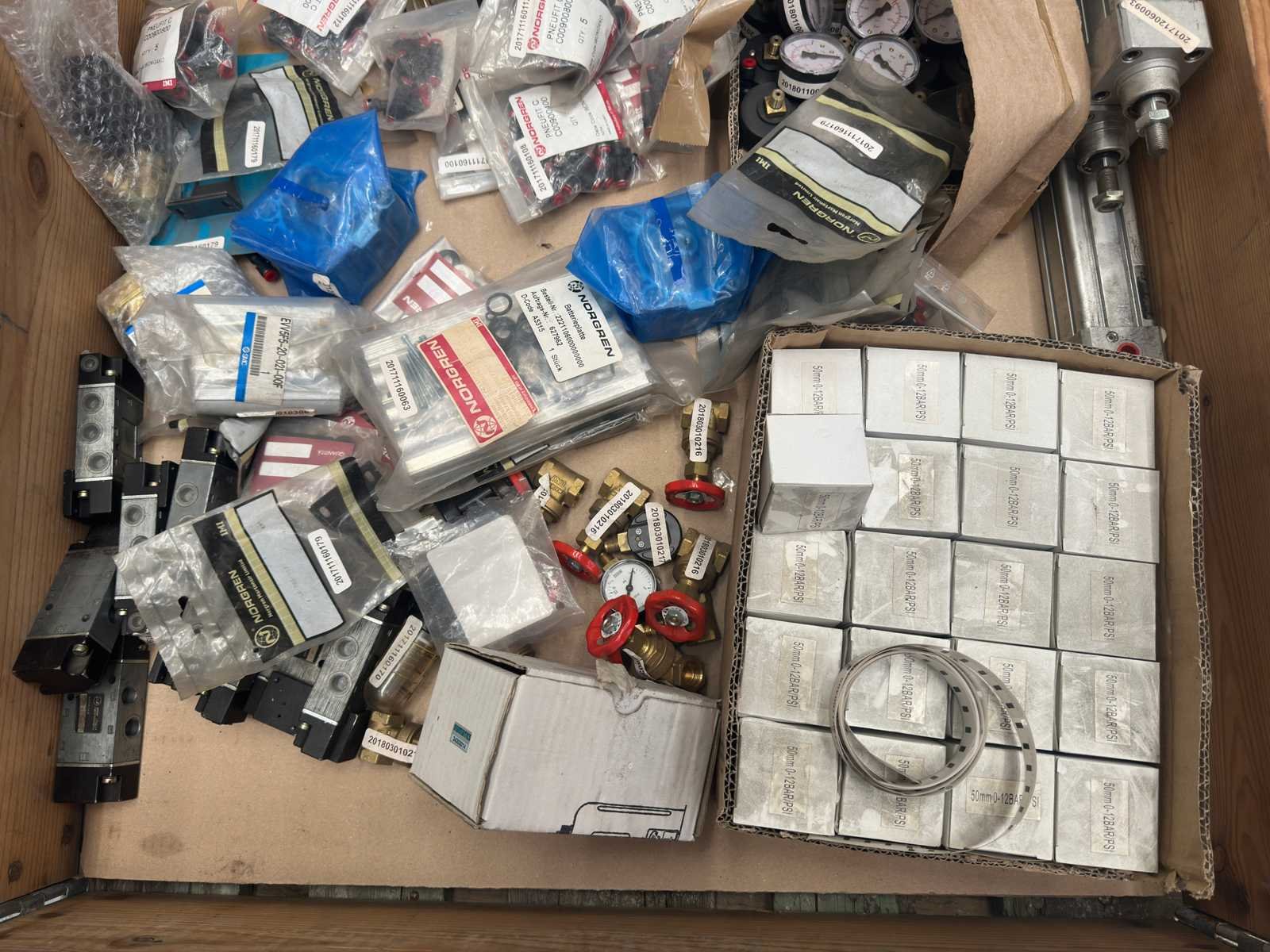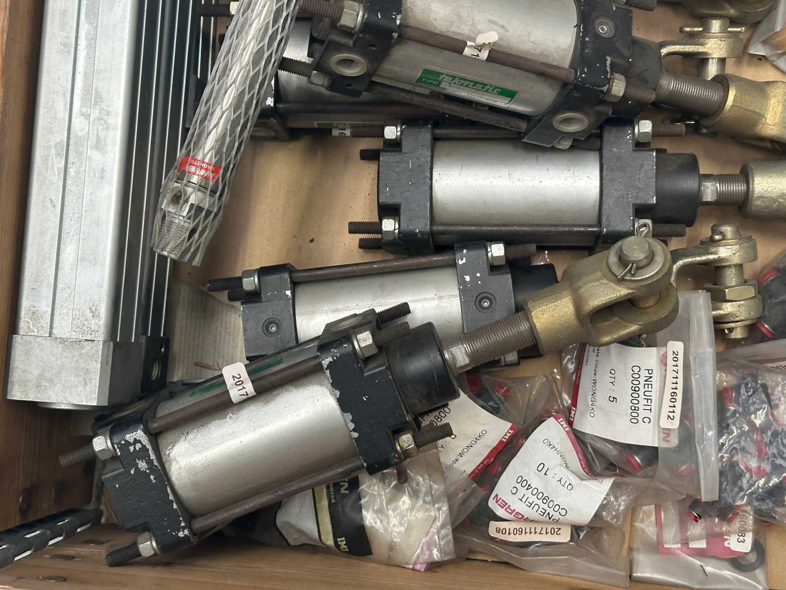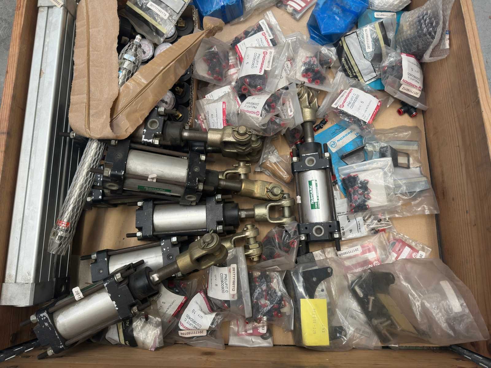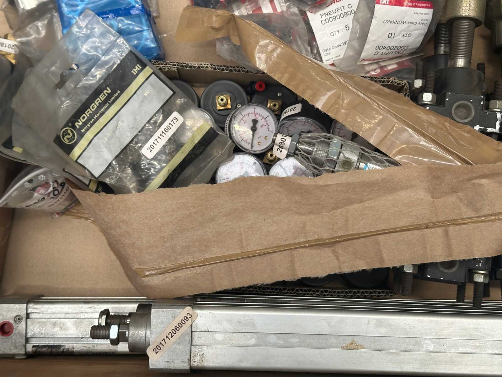 Partij pneumatiek onderdelen (o.a koppelingen, pneumatische cilinders, manometers en ventielen)