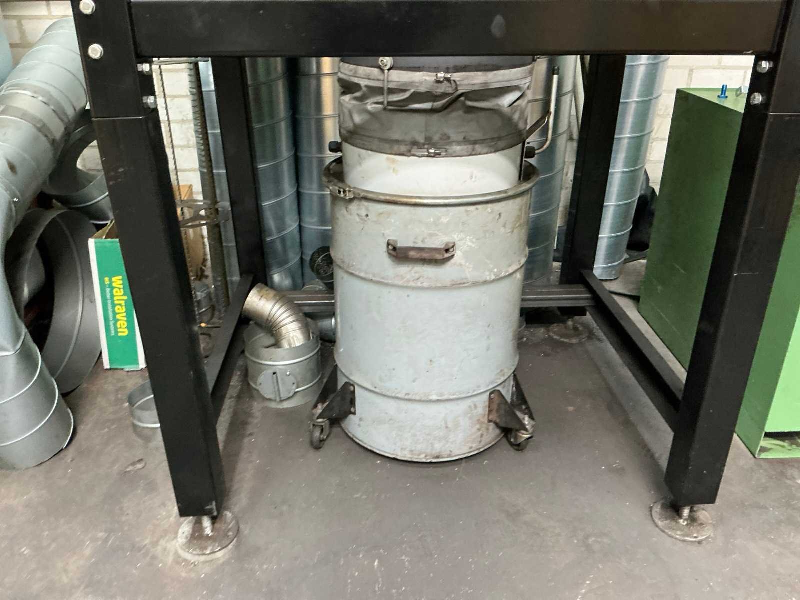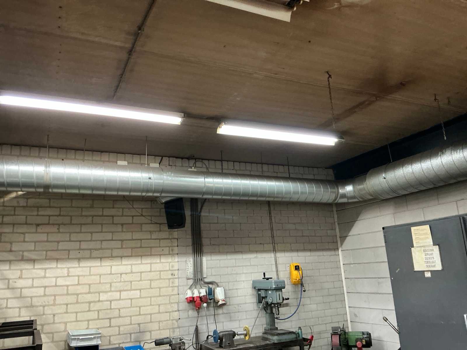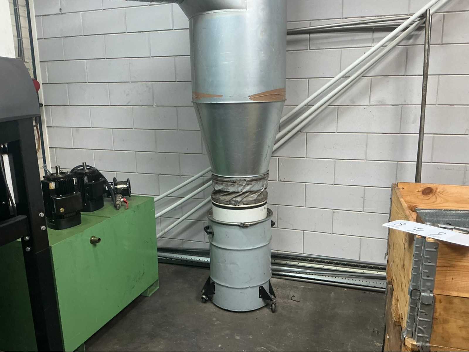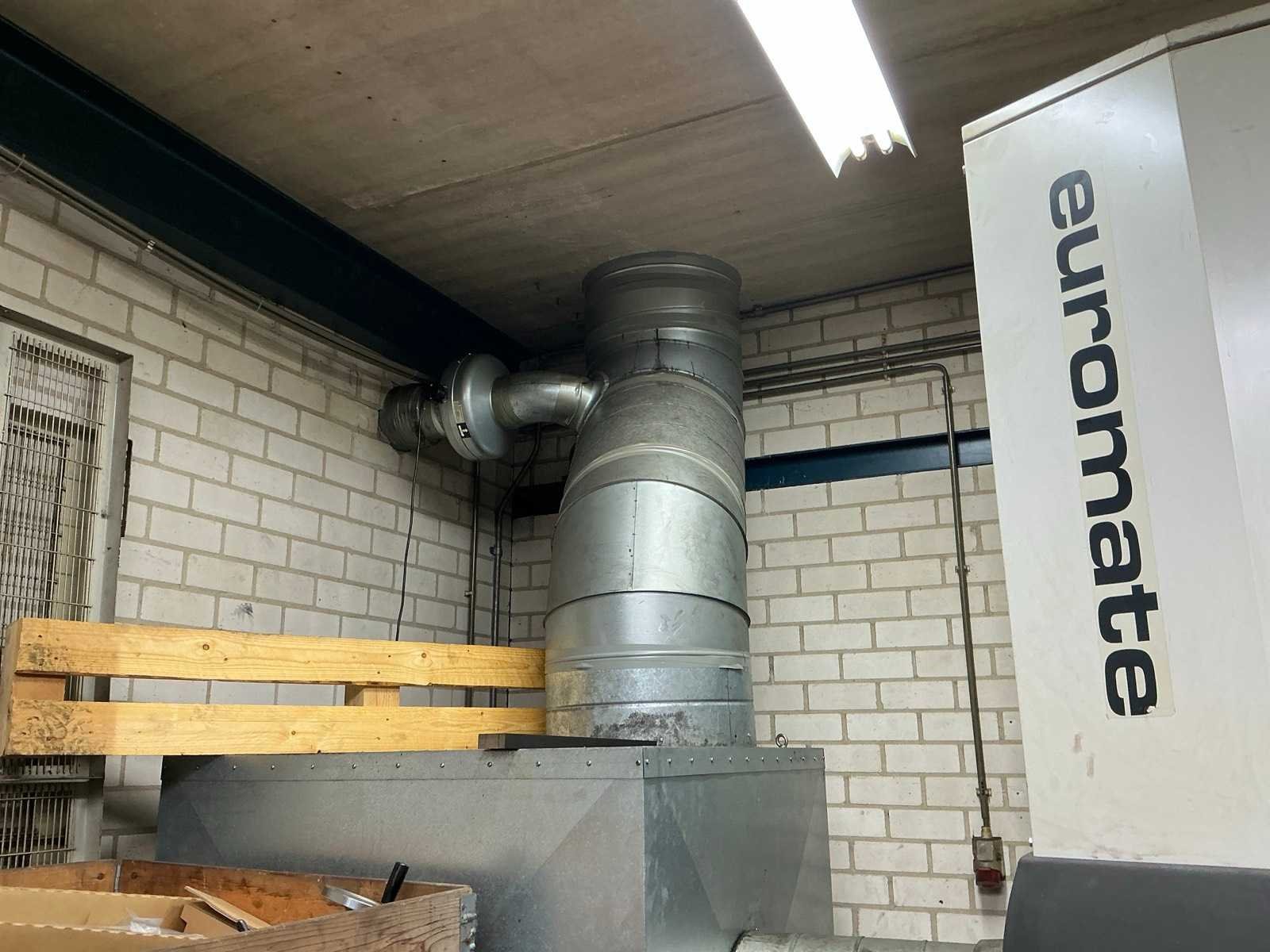 Voorzien van diverse luchtkanalen totaal ca. 30 lm; metalen collector1100x1100x1850 mm; 3x lasarm Euromate Low ceiling UF 4. Nee Merk: Euromate Type: Stationair: true Filterunit: true Aansluiting: 400V Afmeting l: 1100mm Afmeting b: 1150mm Afmeting h: 2900mm