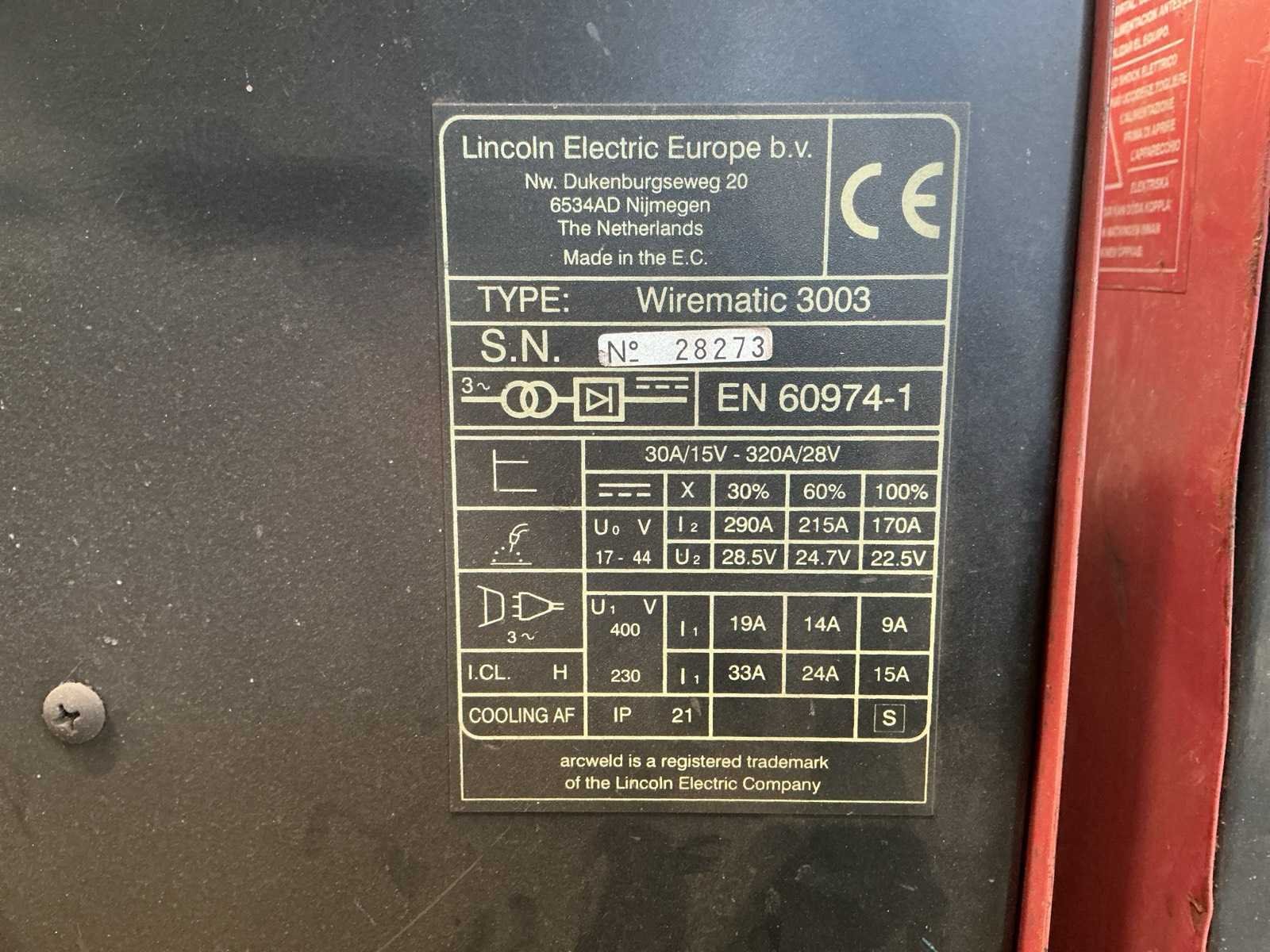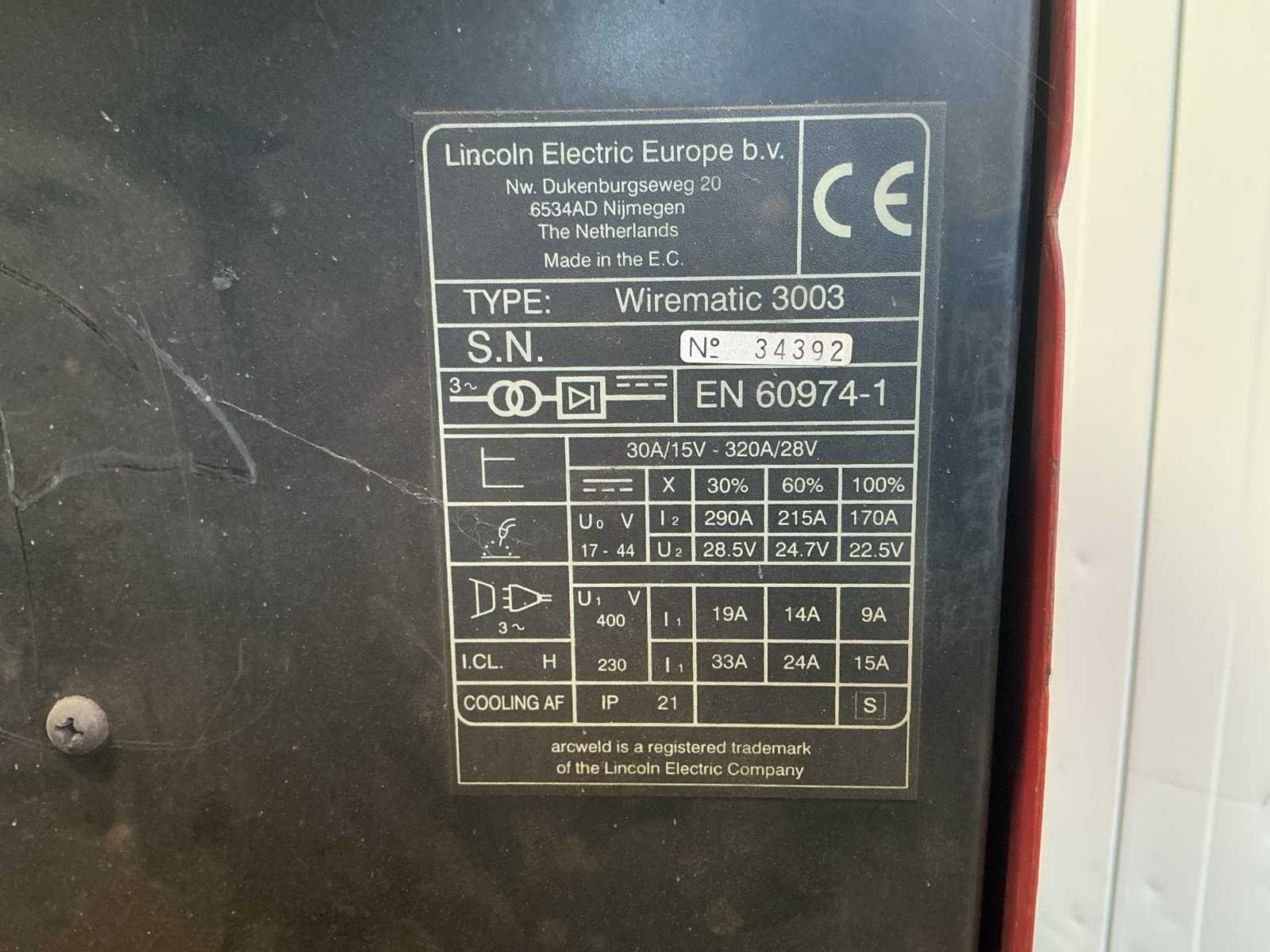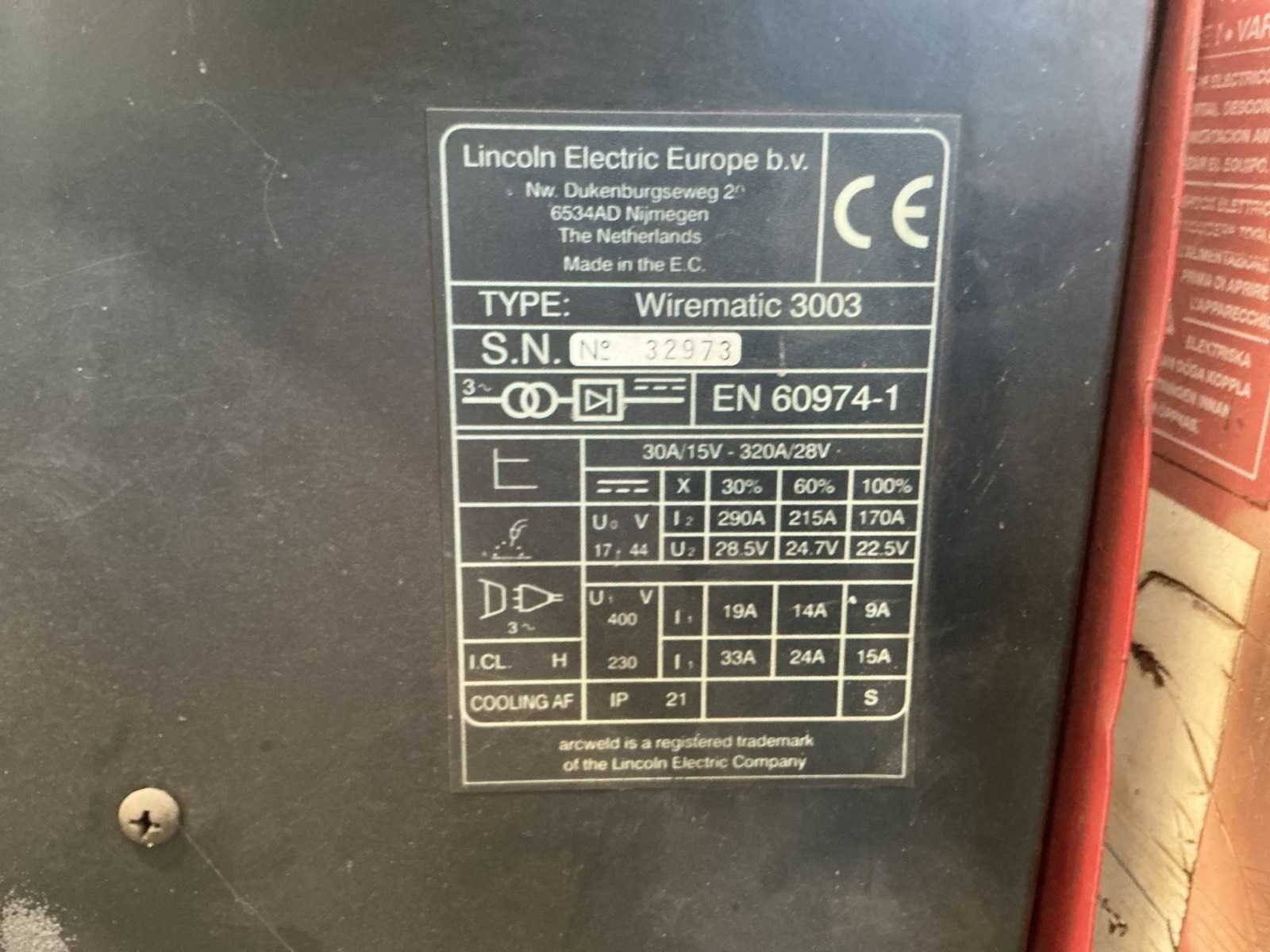 Nee Merk: Arcweld Type: Wirematic3003 Mig type: true Ampère belasting: 300A Aansluiting: 400V
