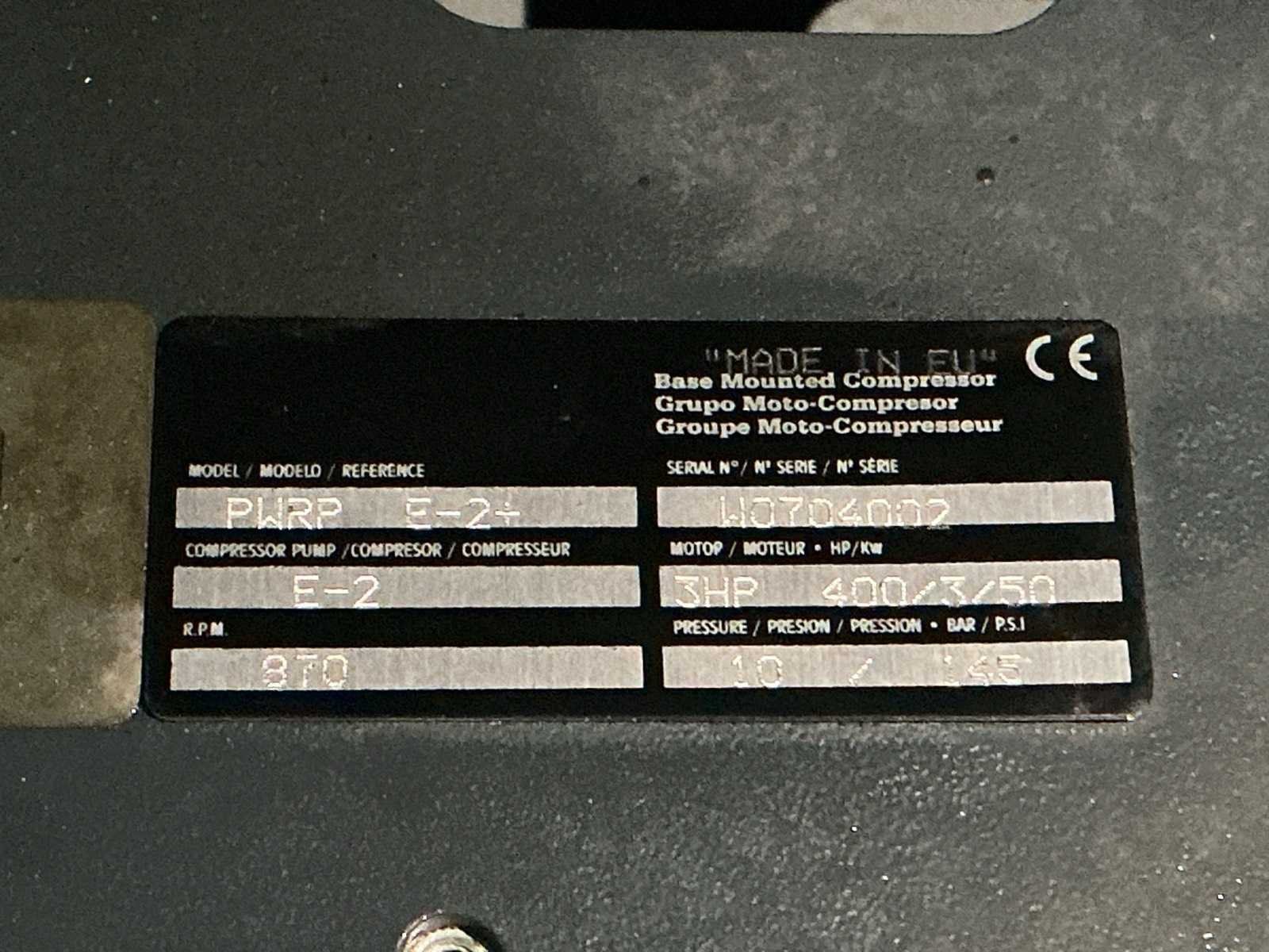 Let op! Pomp defect Nee Merk: Creemers Type: SGC 380K Serienummer: WCF202710 Capaciteit.: 10bar Vermogen: 2.2kW Aansluiting: 400V