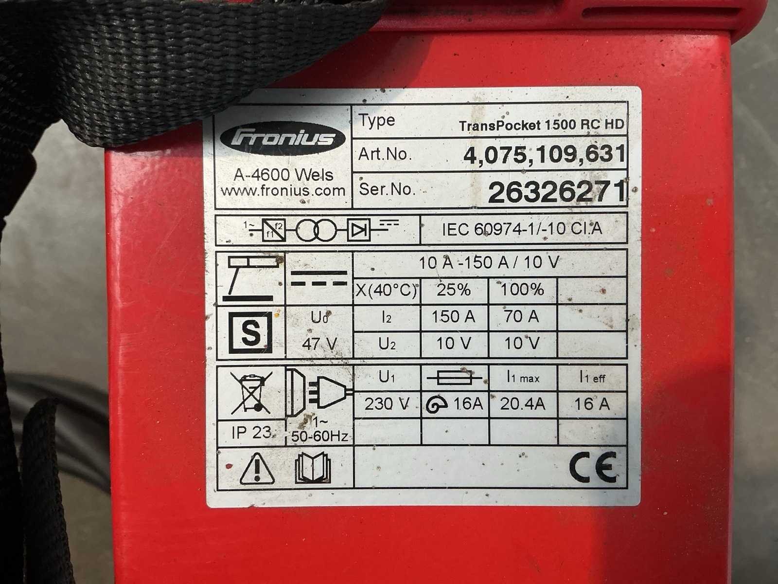 Let op! Dient te worden nagekeken Nee Merk: Fronius Type: TransPocket 1500RC Electrode type: true Inverter type: true Draagbaar: true Ampère belasting: 150A Aansluiting: 220V