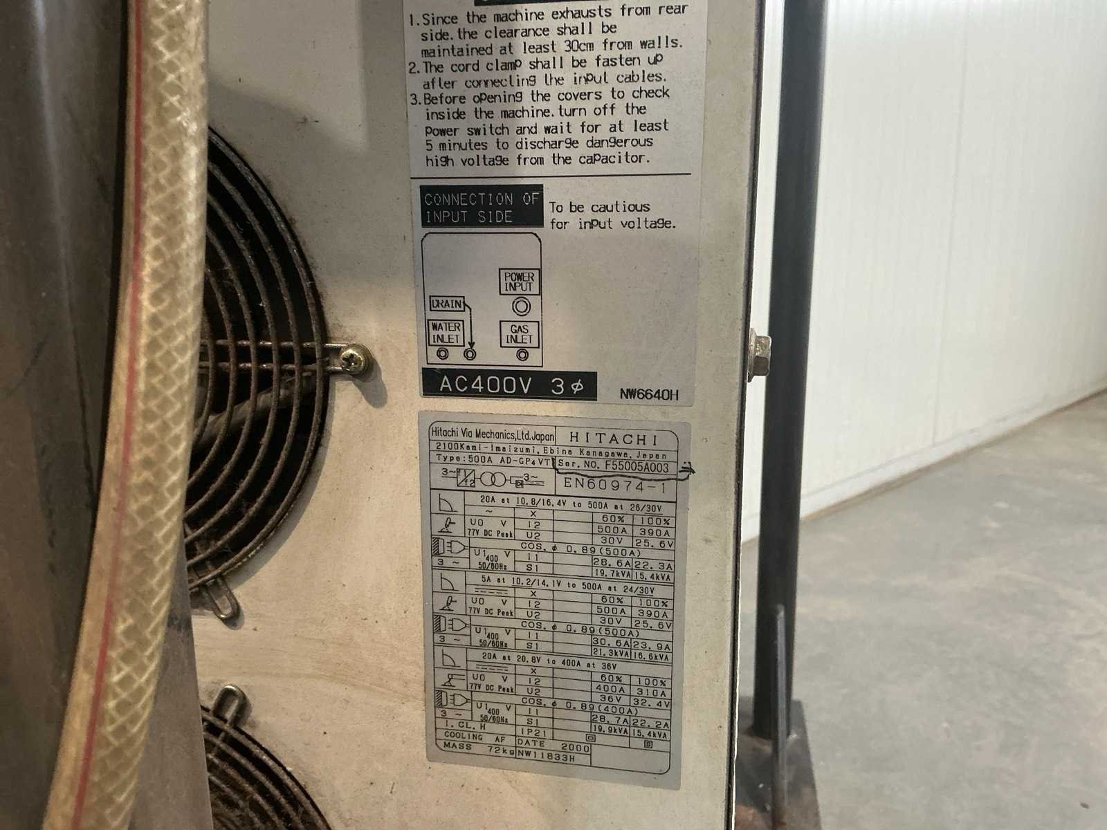 Let op! Dient te worden nagekeken Nee Merk: Hitachi Type: Inverter Pair 500GP Tig type: true Electrode type: true AC/DC: true Inverter type: true Ampère belasting: 500A Aansluiting: 400V