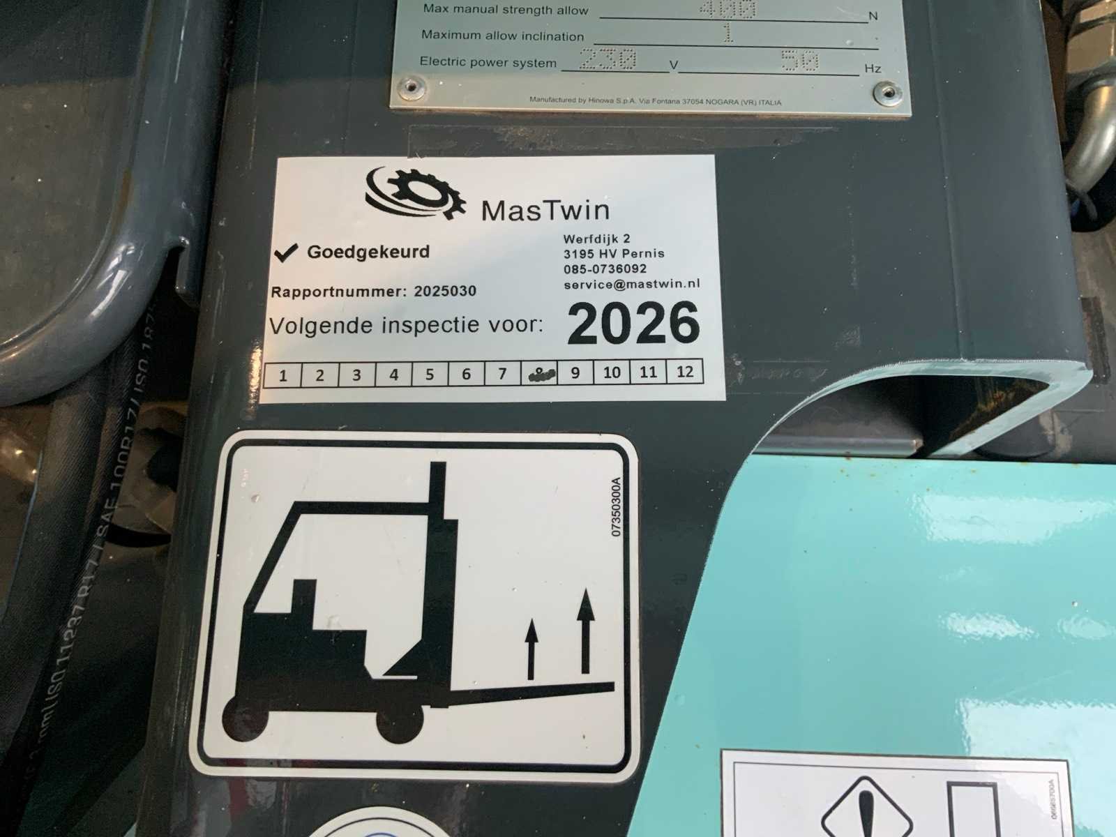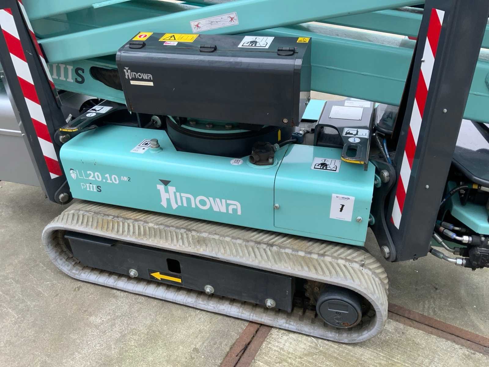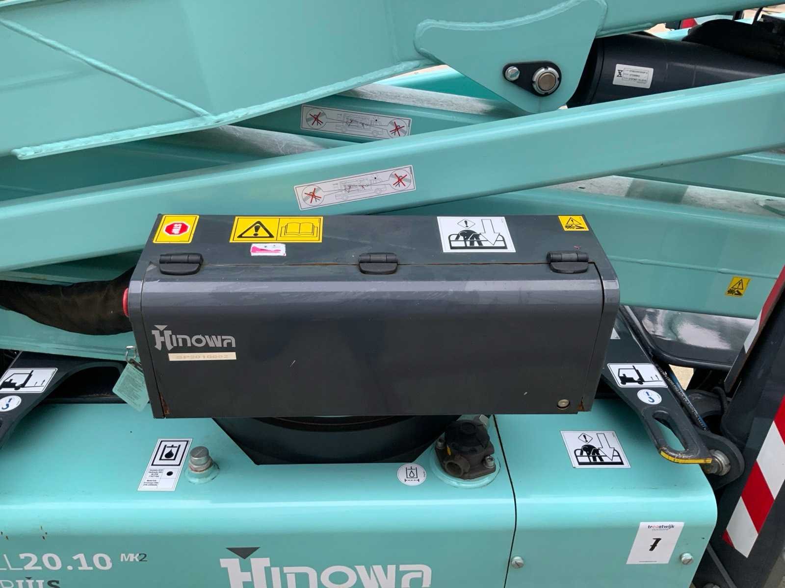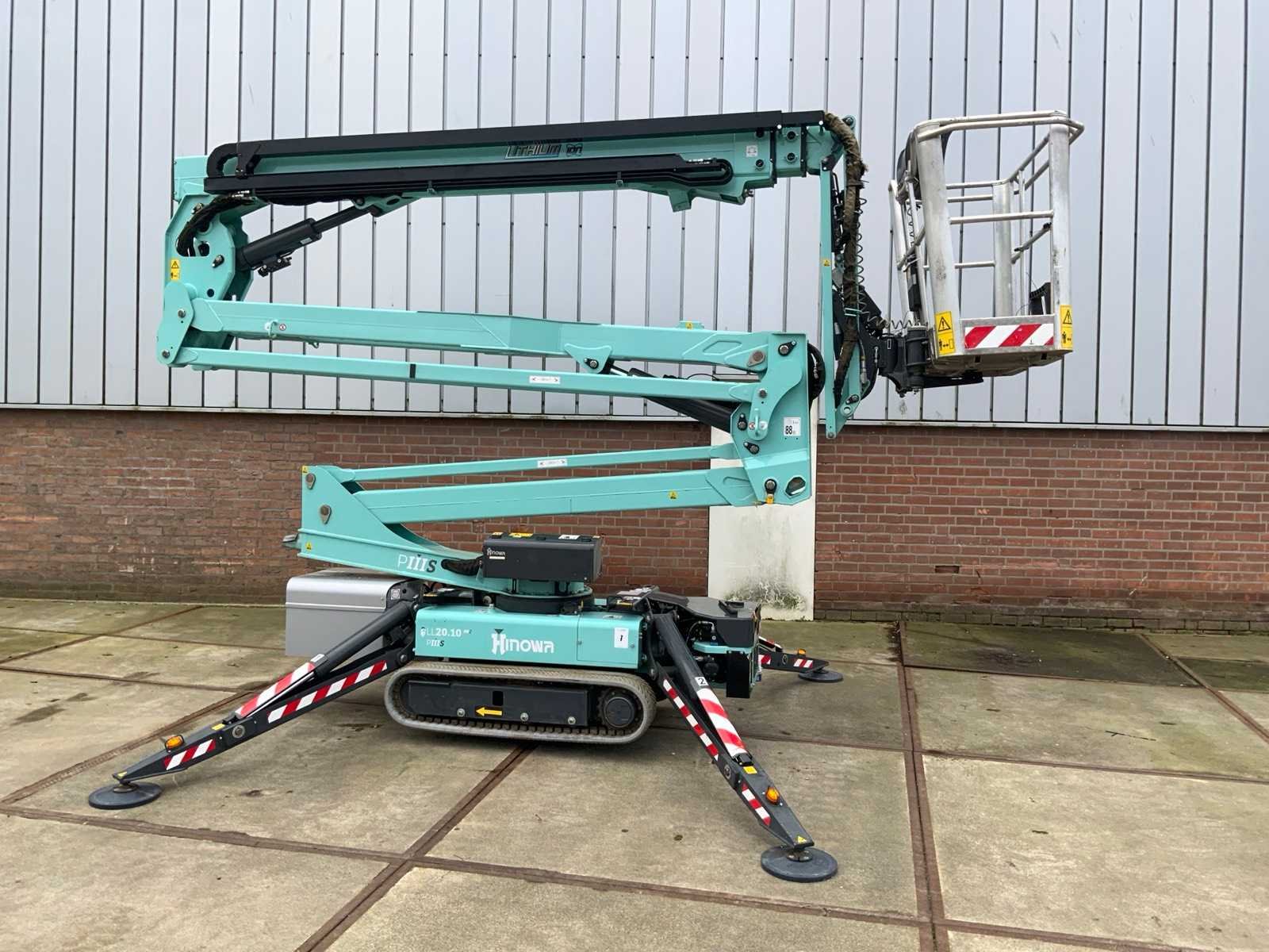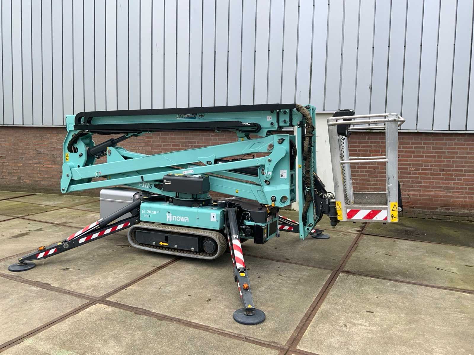 Binnen en buiten, Max. rotatie 360°, dubbele rij snelheid, maximum scheefstand (B / L) 15,00, max. wind 15.00, voorzien van hydraulische stempels, stempelbreedte buitenmaat: 3,35 meter, Lithum-ion accu’s, aansluit spanning: 230 volt, 50 Hz, perslucht, water en stroom aansluiting in de korf, Non-marking tracks. Inclusief hoogwerkerboek en volledige onderhoudshistorie Nee Merk: Hinowa Type: Lightlift 20.10LI Performance IIIS Bouwjaar: 2018 Serienummer: 2S420 Elektrisch: true Werkhoogte: 20000mm Horizontale rijkwijdte: 9.7mm Plateau afm. l: 1330mm Plateau afm. b: 690mm Platform capaciteit: 230kg Accu lader: true Afgelezen urenstand: 191 Eigen gewicht: 2950kg Totale afmeting L: 5100mm Totale afmeting Breedte: 1500mm Totale afmeting Hoogte: 2000mm