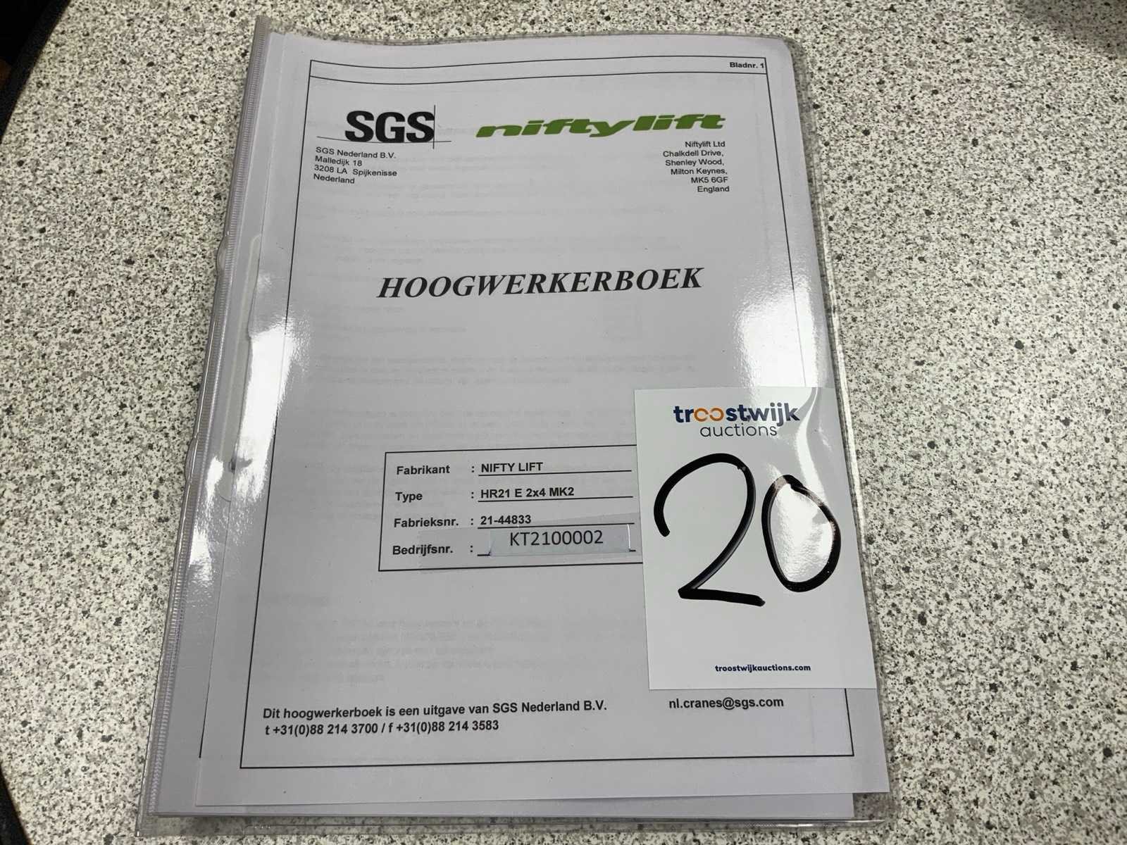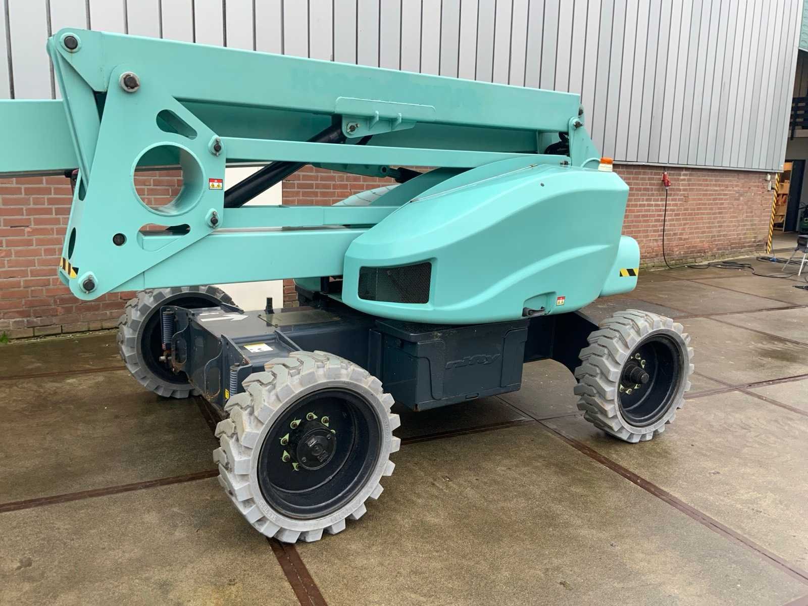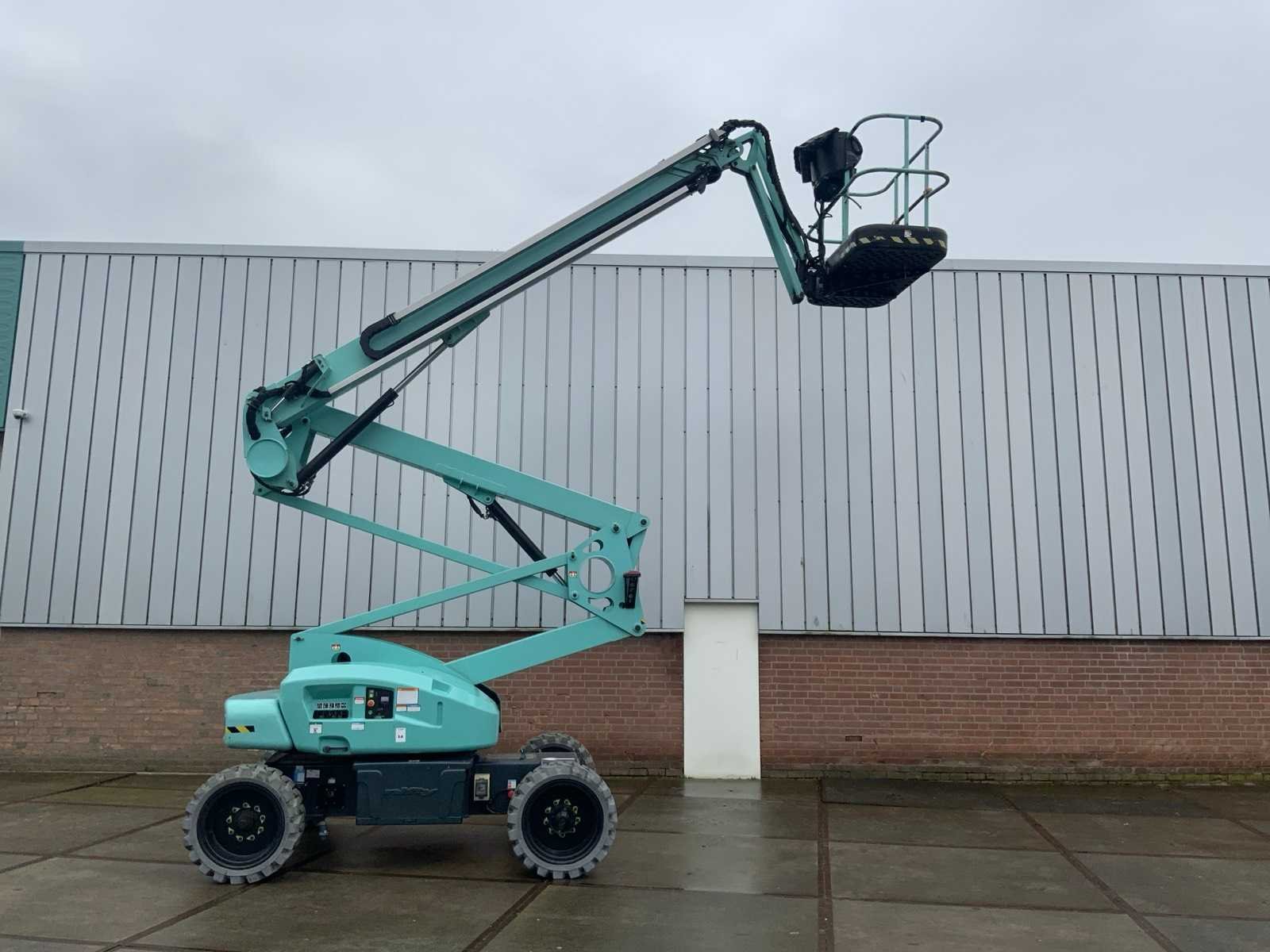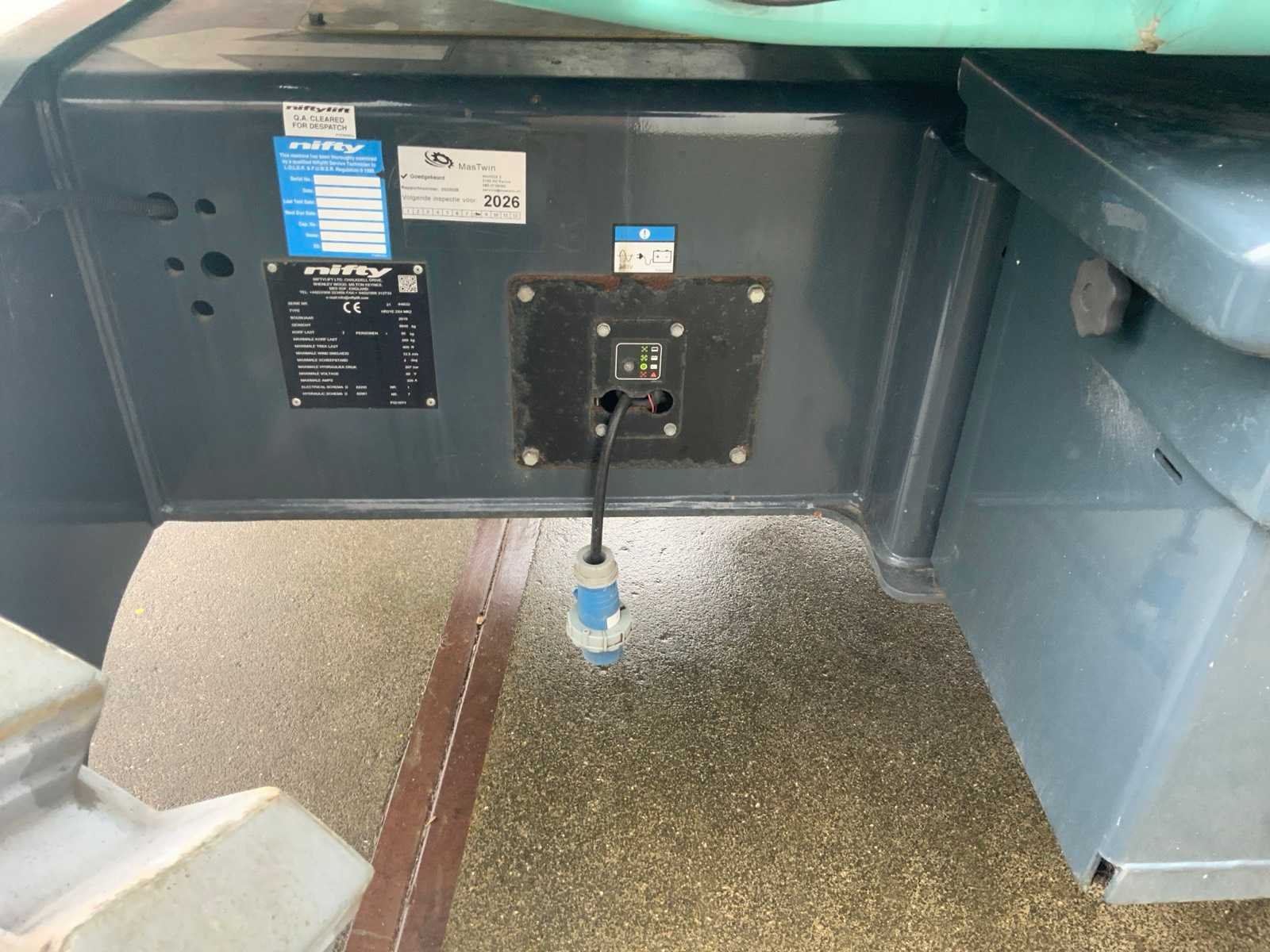 Draaicirkel 360°, voorzien van perslucht en stroomaansluiting in de manbak, voorzien van hoogwerkerboek en volledige onderhoudshistorie Nee Merk: Nifty Type: HR21 E 2x4 MK2 Bouwjaar: 2019 Serienummer: 2144833 Elektrisch: true Knikarm hoogwerker: true Werkhoogte: 20800mm Horizontale rijkwijdte: 13000mm Plateau afm. l: 800mm Plateau afm. b: 1800mm Platform capaciteit: 250kg Accu lader: true Afgelezen urenstand: 255 Eigen gewicht: 6640kg Totale afmeting L: 5470mm Totale afmeting Breedte: 2270mm Totale afmeting Hoogte: 2180mm
