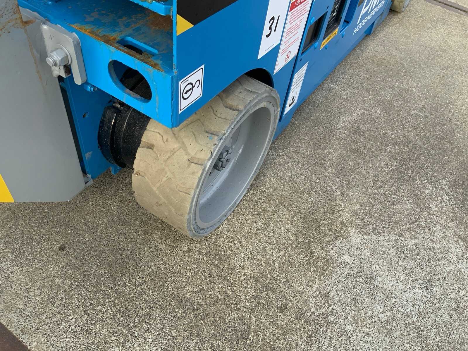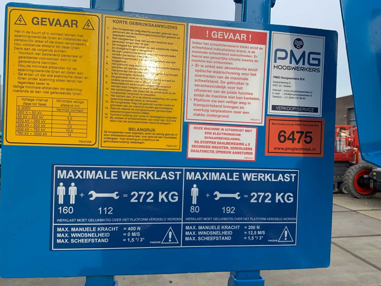 Plateau uitschuifbaar tot: 2450mm, aansluiting: 230 volt Nee Merk: Genie Type: GS-1532 Bouwjaar: 2015 Serienummer: CGS1350C 18554 Elektrisch: true Motorvermogen (kW): 3.3kW Werkhoogte: 6550mm Plateau afm. l: 1550mm Plateau afm. b: 650mm Platform capaciteit: 272kg Afgelezen urenstand: 648.9 Totale afmeting L: 1850mm Totale afmeting Breedte: 8200mm Totale afmeting Hoogte: 2070mm