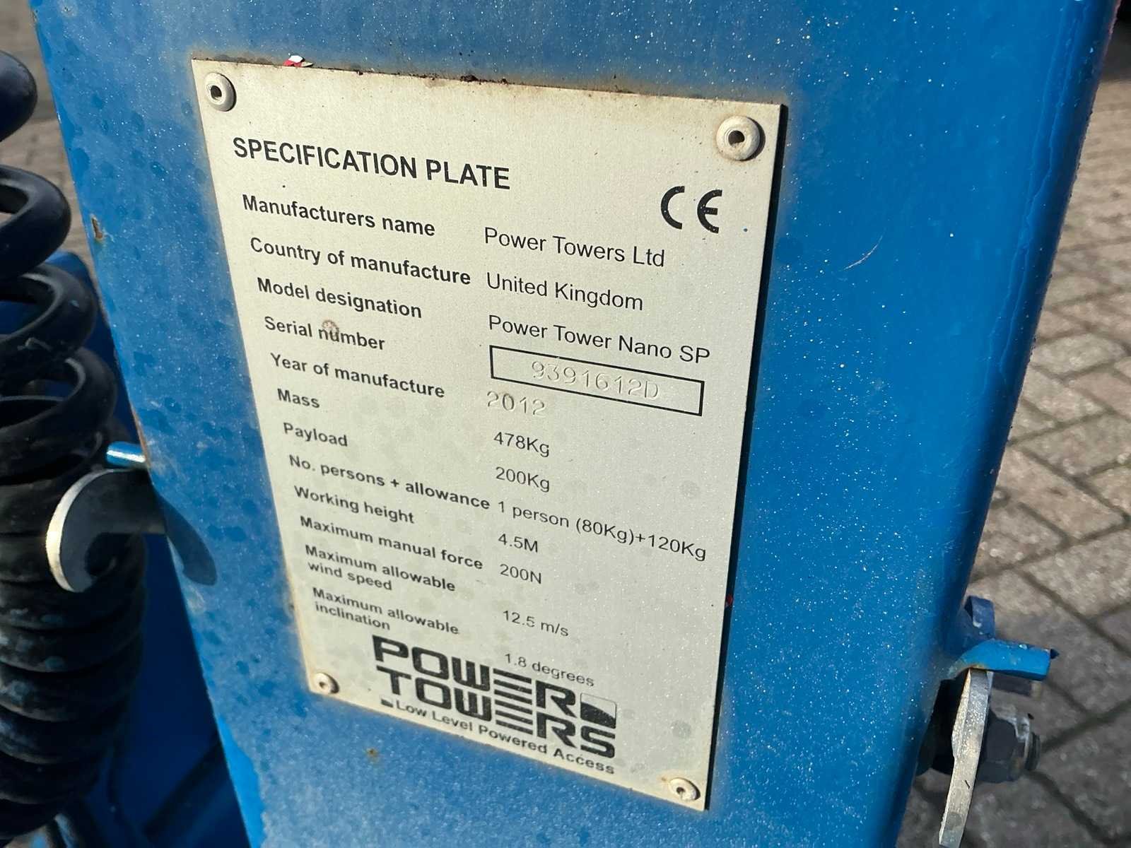 Niet getest Nee Merk: JLG Type: Nano Sp Bouwjaar: 2012 Serienummer: 9391612d Elektrisch: true Telescoop hoogwerker: true Masthoogwerker: true Werkhoogte: 4500mm Plateau afm. l: 980mm Plateau afm. b: 700mm Platform capaciteit: 200kg Eigen gewicht: 478kg Totale afmeting L: 1300mm Totale afmeting Breedte: 750mm Totale afmeting Hoogte: 1560mm