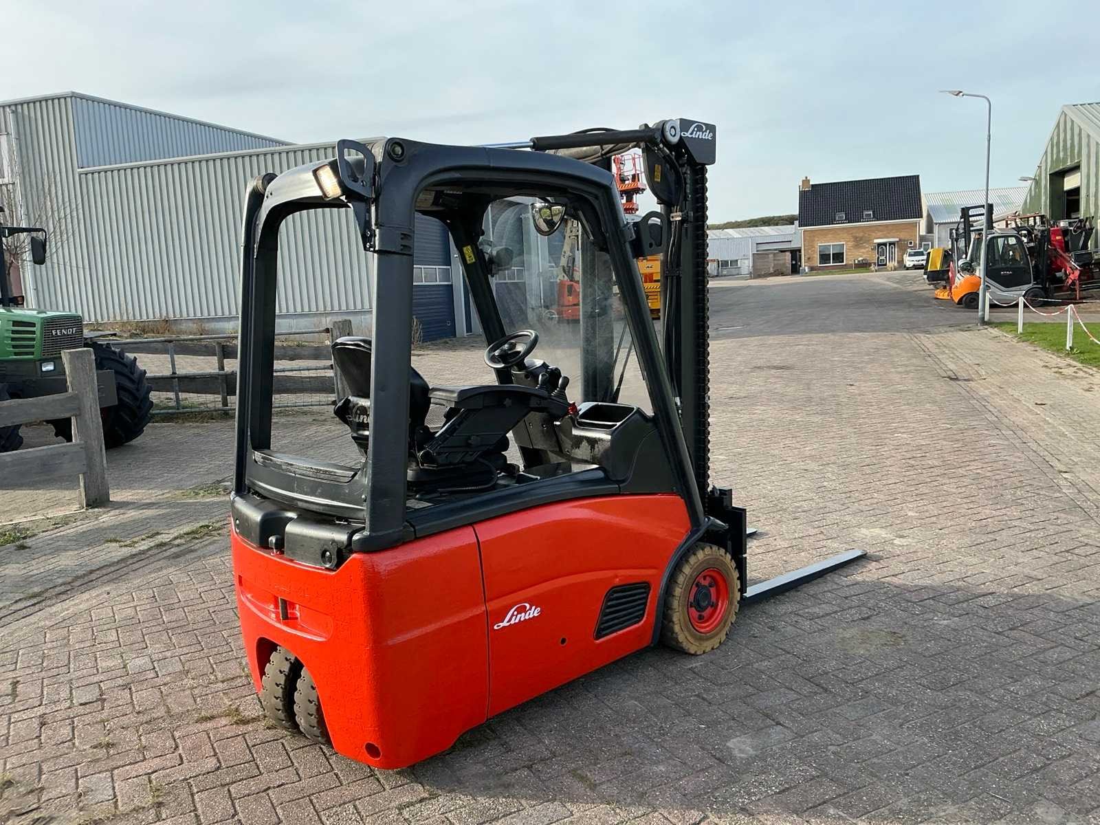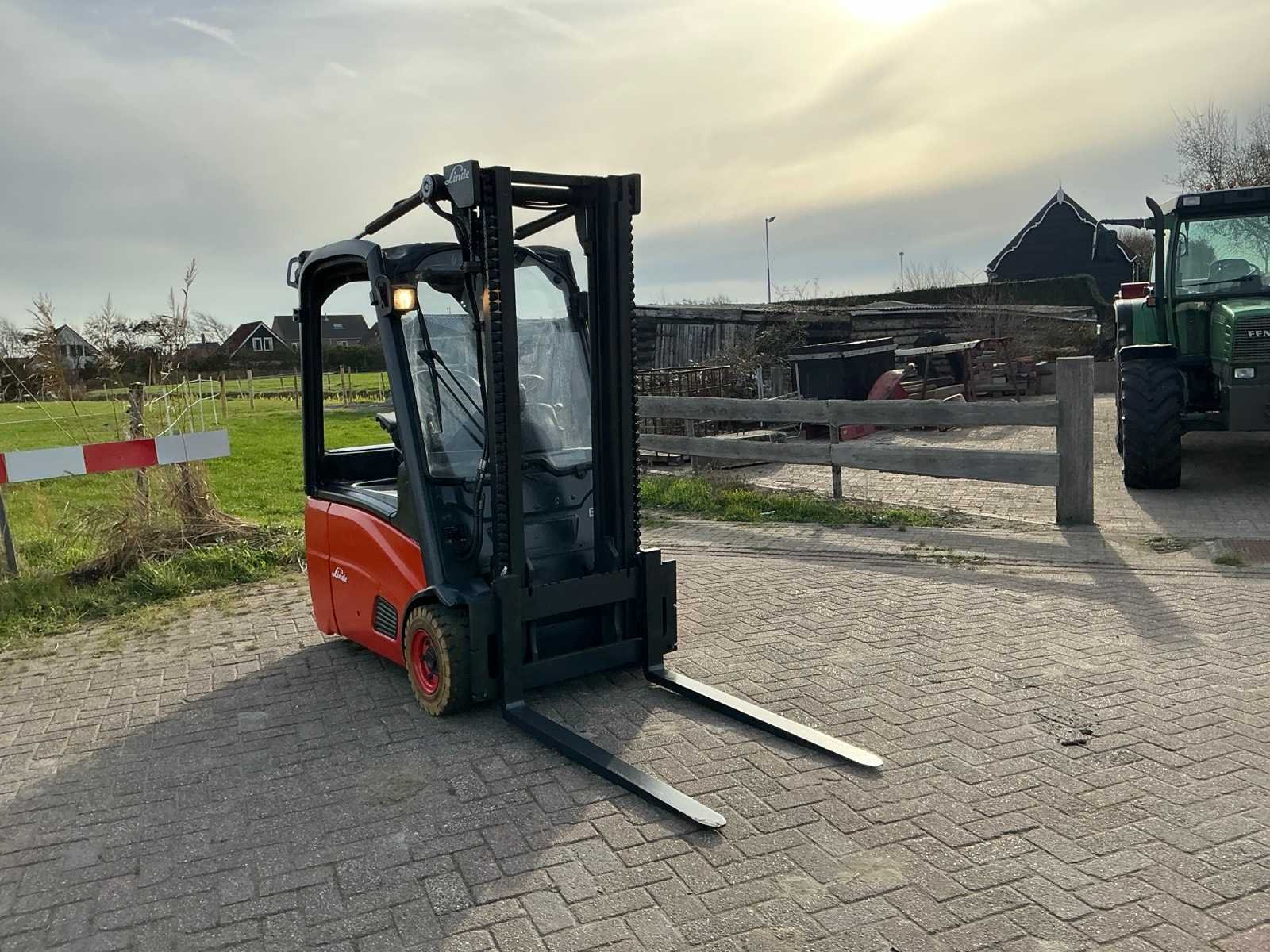 Nee Merk: Linde Type: E16-01 Bouwjaar: 2011 Serienummer: H2X386B06408 Brandstof: Elektrisch Mast: Duplex Soort band: Volrubber banden Aantal wielen: 3 Afgelezen urenstand: 8320 Duplex mast: true Eigen gewicht: 3204kg Hefvermogen: 1600kg Lepellengte: 1200mm Hefhoogte: 3150mm Vol rubber banden: true Totale afmeting L: 1950mm Totale afmeting Breedte: 1150mm Totale afmeting Hoogte: 2100mm