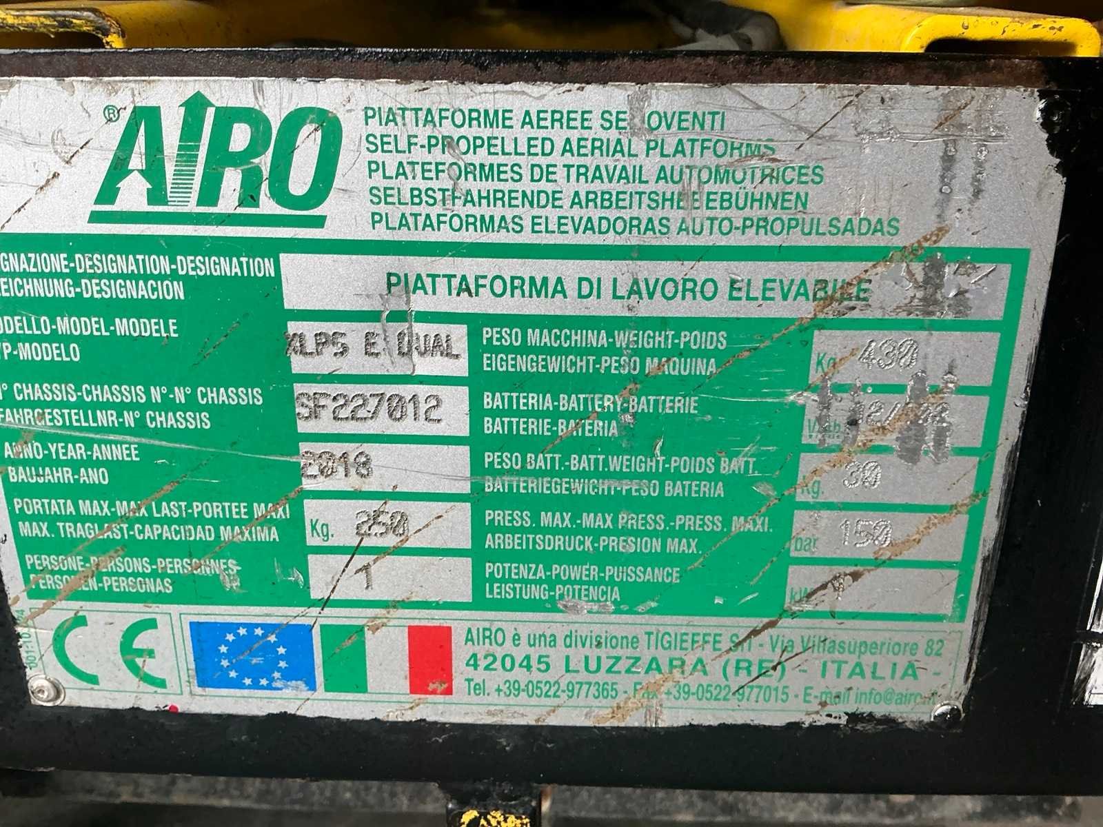 Variabel instelbaar platform Nee Merk: Airo Type: XLP5E dual Bouwjaar: 2018 Serienummer: SF227012 Elektrisch: true Schaarhoogwerker: true Werkhoogte: 5350mm Plateau afm. l: 1050mm Plateau afm. b: 570mm Platform capaciteit: 250kg Accu lader: true Afgelezen urenstand: 48 Eigen gewicht: 430kg Totale afmeting L: 1200mm Totale afmeting Breedte: 700mm Totale afmeting Hoogte: 1950mm