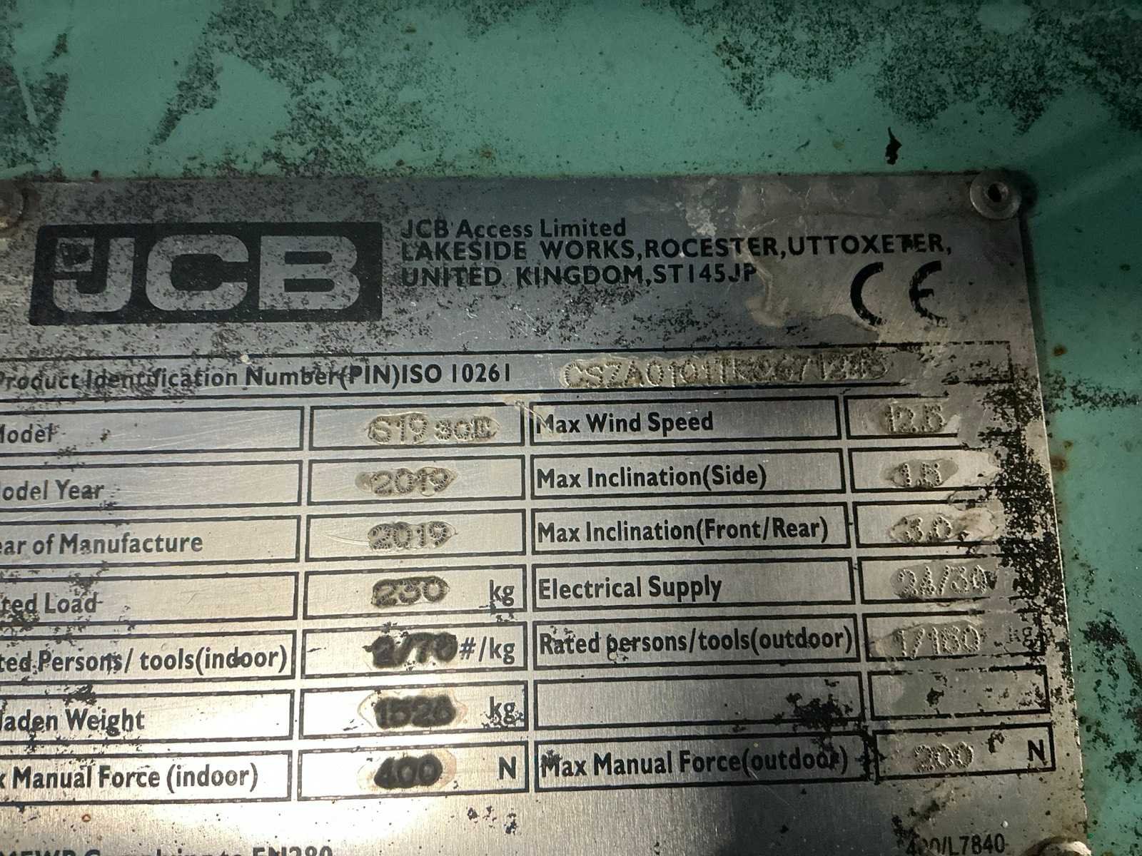 Nee Merk: JCB Type: S1930E Bouwjaar: 2019 Serienummer: CSZA0101CK1671246 Elektrisch: true Schaarhoogwerker: true Werkhoogte: 7700mm Horizontale rijkwijdte: 910mm Plateau afm. l: 1640mm Plateau afm. b: 760mm Platform capaciteit: 230kg Accu lader: true Afgelezen urenstand: 35 Eigen gewicht: 1526kg Totale afmeting L: 1800mm Totale afmeting Breedte: 7700mm Totale afmeting Hoogte: 1850mm