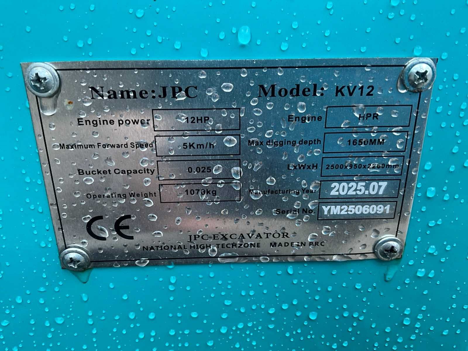 Ongebruikt Nee Merk: JPC Type: KV12 Bouwjaar: 2025 Serienummer: YM2506092 Motorvermogen (kW): 12kW Brandstof: Diesel Bedrijfsgewicht: 1070kg Max. graafdiepte: 1650mm Inclusief graafbak: Yes Rups breedte: 180mm Eigen gewicht: 1070kg Totale afmeting L: 2500mm Totale afmeting Breedte: 950mm Totale afmeting Hoogte: 2200mm