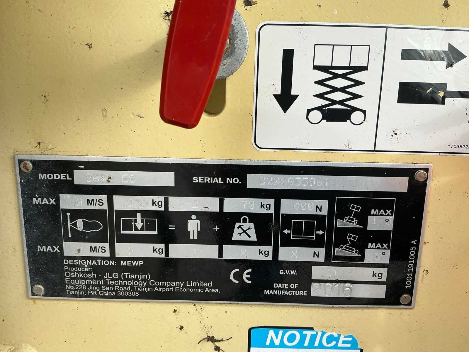Nee Merk: JLG Type: 2632ES Bouwjaar: 2016 Serienummer: B200035961 Elektrisch: true Schaarhoogwerker: true Werkhoogte: 9920mm Horizontale rijkwijdte: 1270mm Plateau afm. l: 2500mm Plateau afm. b: 1120mm Platform capaciteit: 230kg Accu lader: true Afgelezen urenstand: 245 Eigen gewicht: 2126kg Totale afmeting L: 2500mm Totale afmeting Breedte: 1170mm Totale afmeting Hoogte: 1970mm