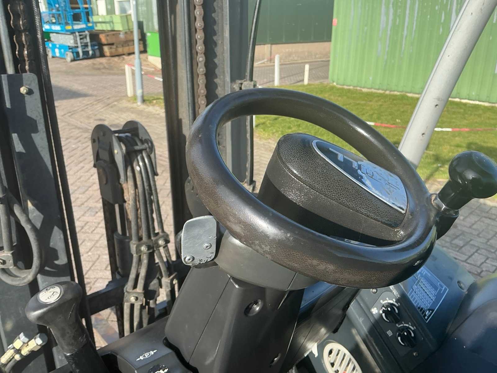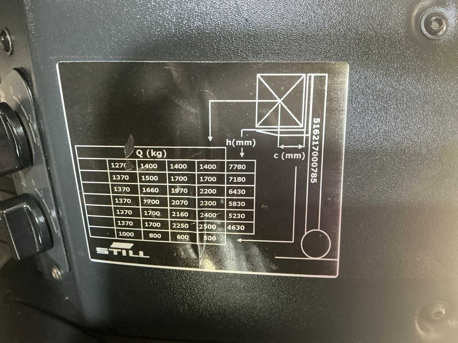 Geen accu,niet getest Nee Merk: Still Type: RX60-25 Bouwjaar: 2008 Serienummer: 516321004346 Brandstof: Elektrisch Mast: Triple Soort band: Volrubber banden Aantal wielen: 4 Free-lift: true Side-shift: true Triple mast: true Eigen gewicht: 3323kg Hefvermogen: 2500kg Lepellengte: 1050mm Hefhoogte: 7780mm Vol rubber banden: true Totale afmeting L: 2400mm Totale afmeting Breedte: 1200mm Totale afmeting Hoogte: 2200mm