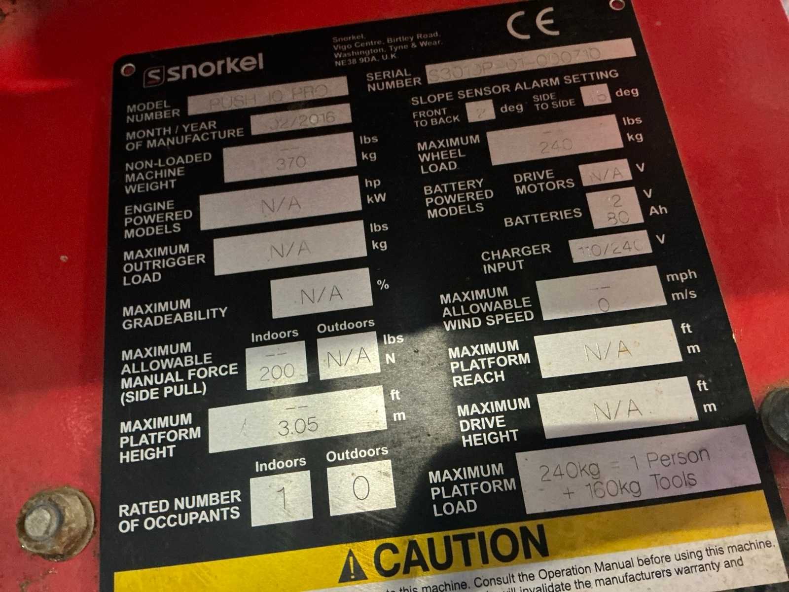 2016 snorkel push 10 pro hoogwerker