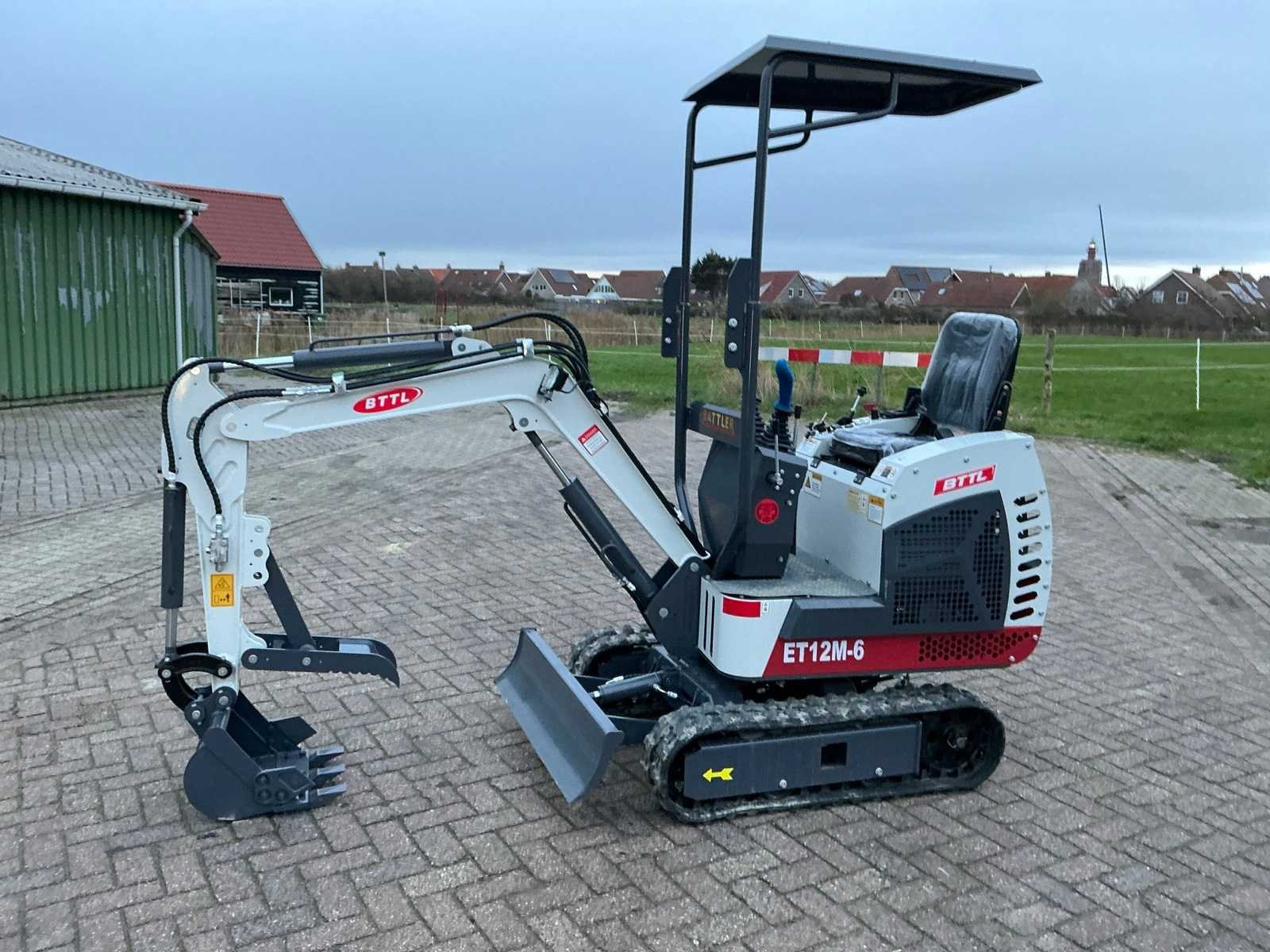 Nee Merk: BTTL Type: ET12M-6 Bouwjaar: 2025 Merk motor: Briggs&stratton Motorvermogen (kW): 13.5kW Brandstof: Benzine Bedrijfsgewicht: 1100kg Inclusief graafbak: Yes Rups breedte: 180mm Eigen gewicht: 1100kg Totale afmeting L: 2500mm Totale afmeting Breedte: 950mm Totale afmeting Hoogte: 2200mm