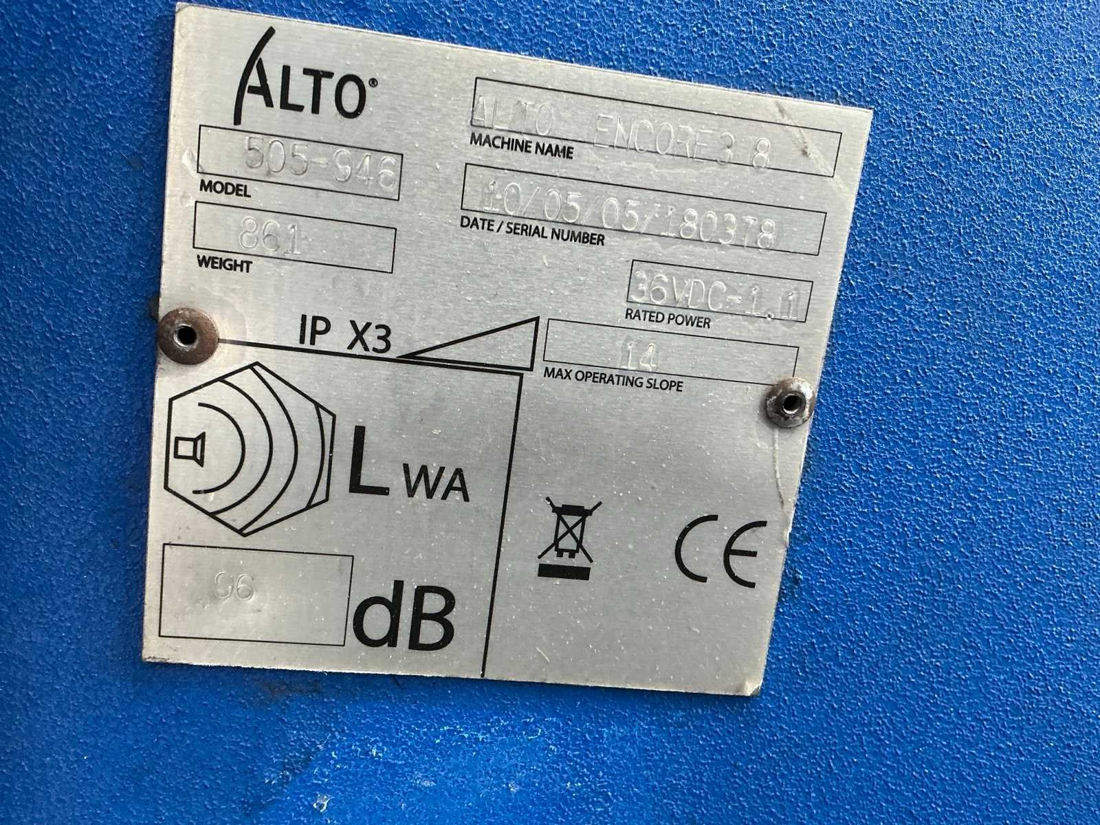 Nee Merk: Alto Type: Encore 38 Serienummer: 180378 Eigen gewicht: 861kg Totale afmeting L: 1700mm Totale afmeting Breedte: 1150mm Totale afmeting Hoogte: 1400mm