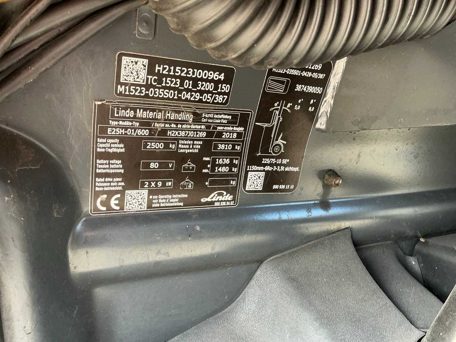 Nee Merk: Linde Type: E25PH-01/600 Bouwjaar: 2018 Serienummer: H2X387J01269 Brandstof: Elektrisch Mast: Duplex Soort band: Volrubber banden Aantal wielen: 4 Duplex mast: true Eigen gewicht: 5446kg Hefvermogen: 2500kg Lepellengte: 1200mm Hefhoogte: 4300mm Vol rubber banden: true Totale afmeting L: 2750mm Totale afmeting Breedte: 1150mm Totale afmeting Hoogte: 2750mm
