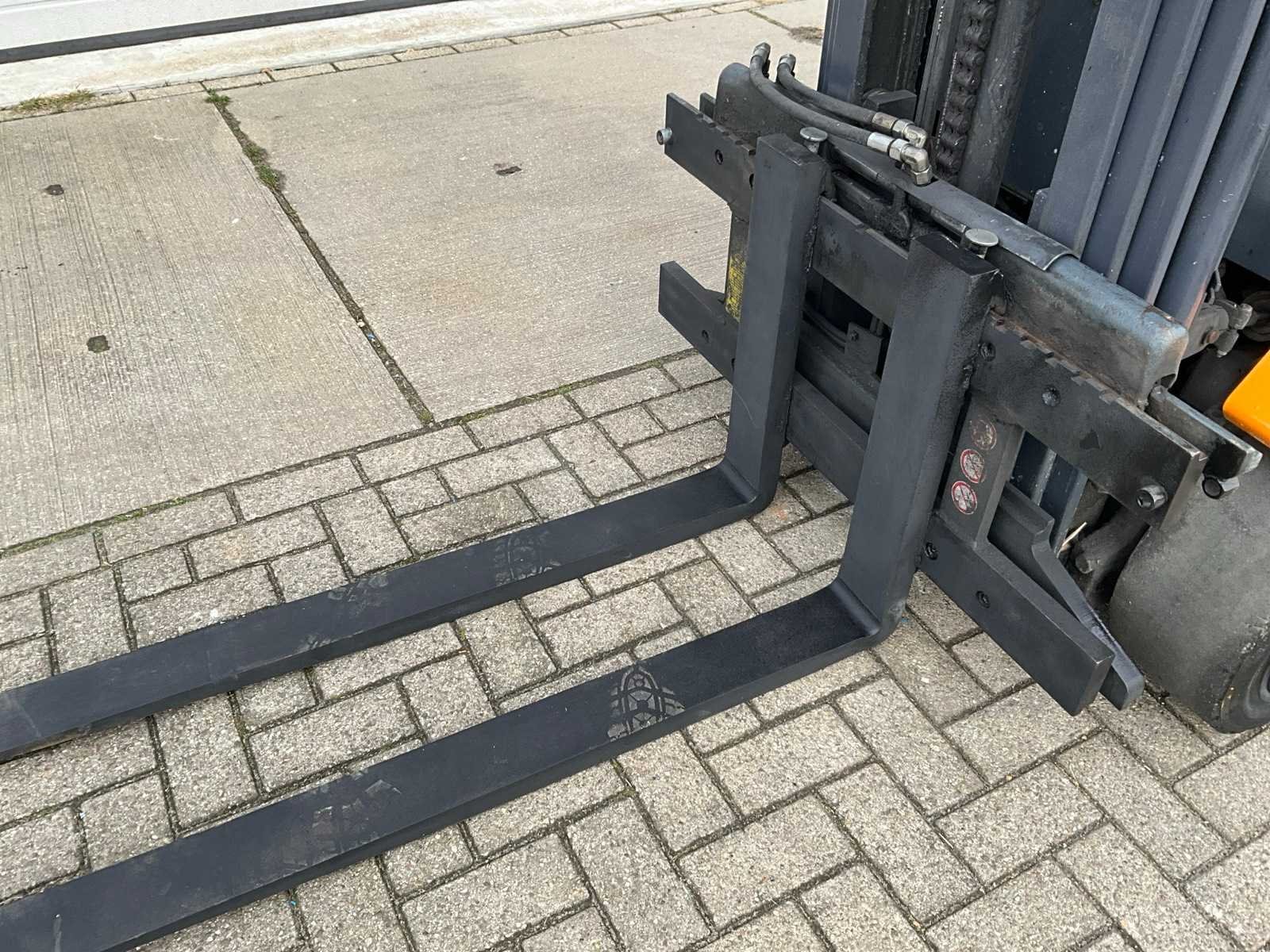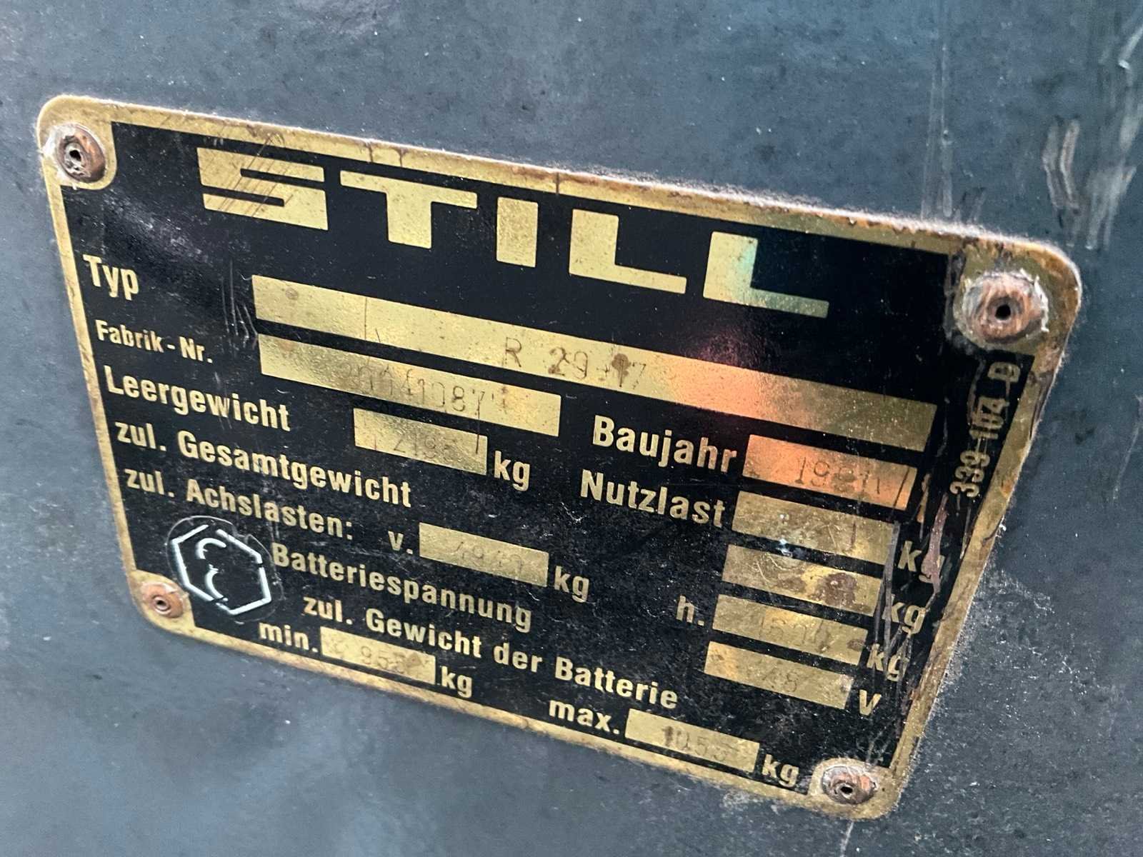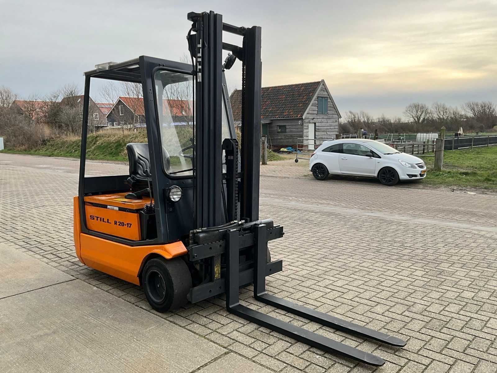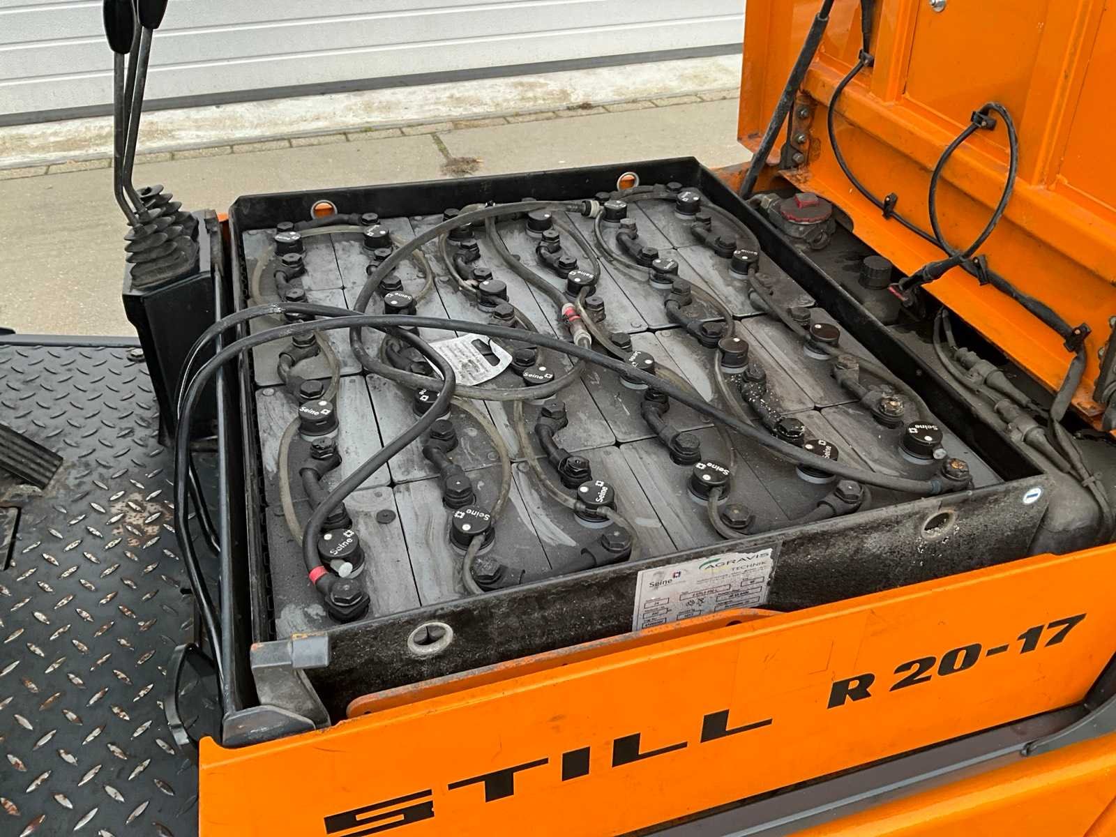 Nee Merk: Still Type: R20-17 Brandstof: Elektrisch Mast: Triple Soort band: Volrubber banden Aantal wielen: 3 Afgelezen urenstand: 4620 Free-lift: true Side-shift: true Triple mast: true Eigen gewicht: 2195kg Hefvermogen: 2000kg Lepellengte: 1200mm Hefhoogte: 5000mm Vol rubber banden: true Minimale doorrijhoogte: 2250mm Totale afmeting L: 2000mm Totale afmeting Breedte: 1150mm Totale afmeting Hoogte: 2250mm