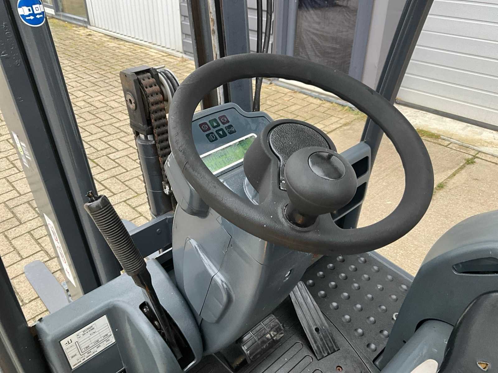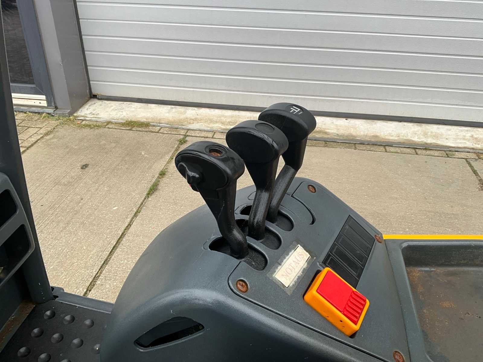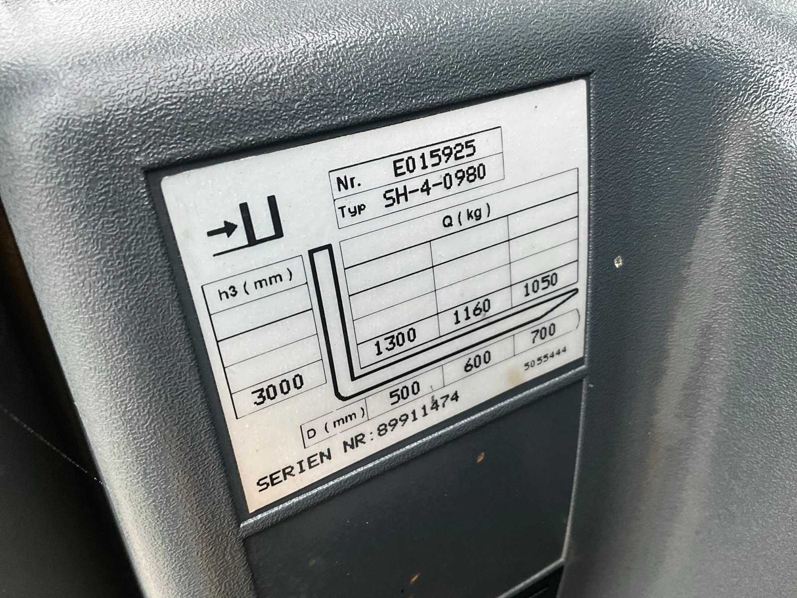 Nee Merk: Jungheinrich Type: EFF-DF13 Serienummer: 89911474 Brandstof: Elektrisch Mast: Duplex Soort band: Volrubber banden Aantal wielen: 3 Afgelezen urenstand: 1742 Free-lift: true Side-shift: true Duplex mast: true Eigen gewicht: 2160kg Hefvermogen: 1300kg Lepellengte: 900mm Hefhoogte: 3000mm Vol rubber banden: true Minimale doorrijhoogte: 1950mm Totale afmeting L: 1770mm Totale afmeting Breedte: 1060mm Totale afmeting Hoogte: 1950mm