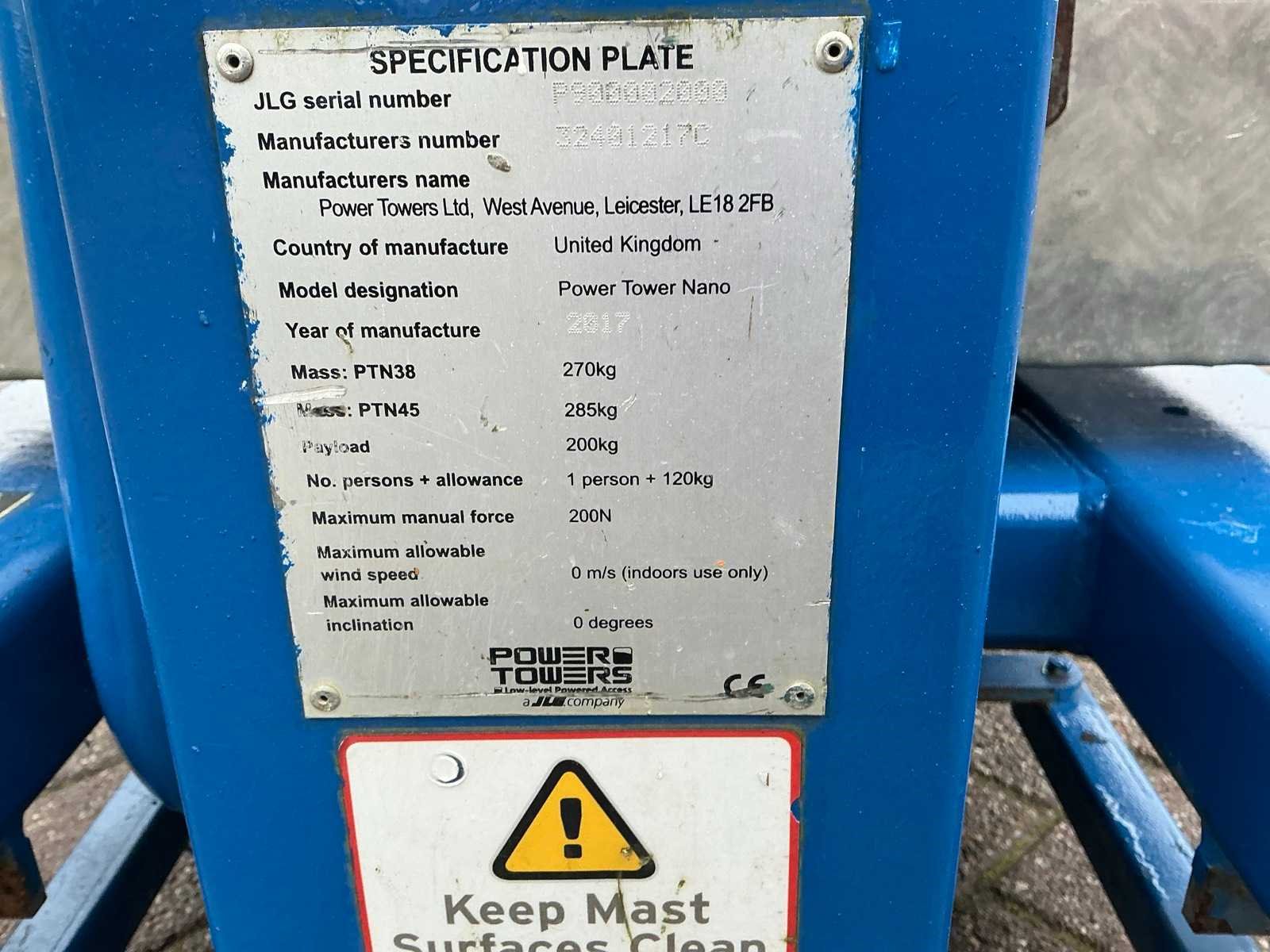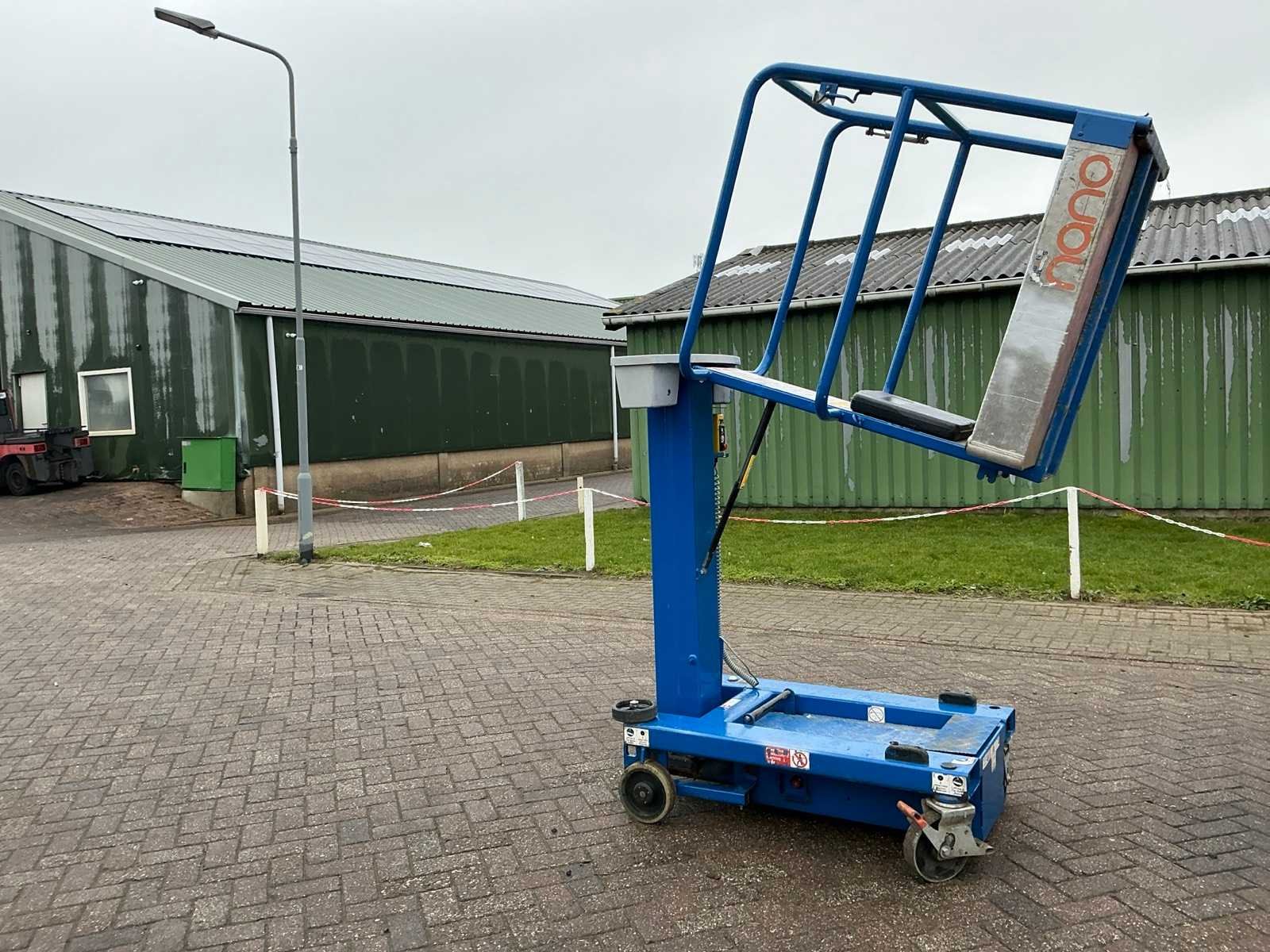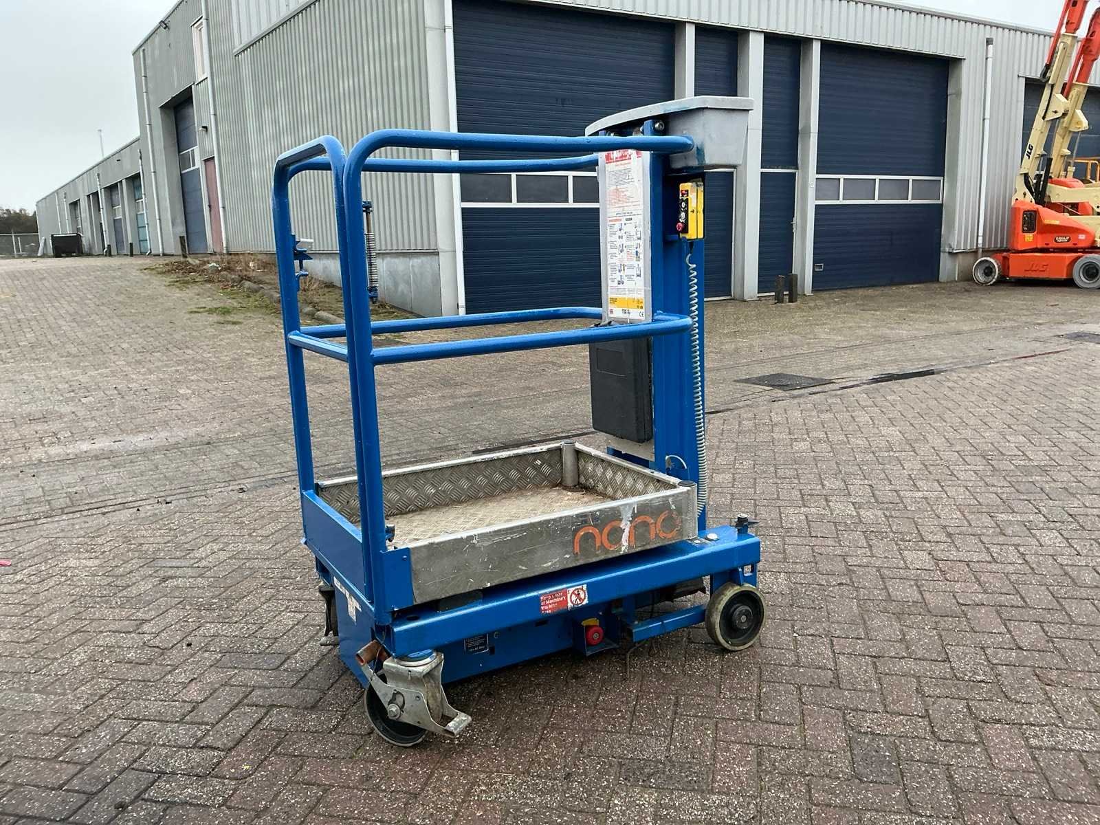 Accu leeg, niet getest Nee Merk: JLG Type: Nano Bouwjaar: 2017 Serienummer: P900002000 Elektrisch: true Telescoop hoogwerker: true Werkhoogte: 4500mm Plateau afm. l: 1000mm Plateau afm. b: 730mm Platform capaciteit: 200kg Eigen gewicht: 285kg Totale afmeting L: 1250mm Totale afmeting Breedte: 750mm Totale afmeting Hoogte: 1580mm