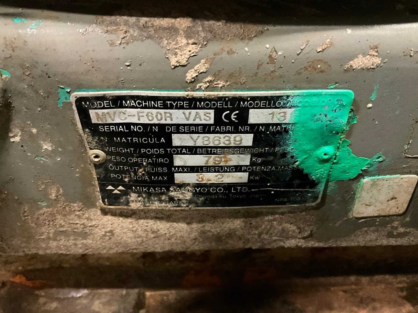 Trekstarter ontbreekt Nee Merk: Mikasa Type: MVC F60R Bedrijfsgewicht: 79kg Merk motor: Subaru Brandstof: Benzine