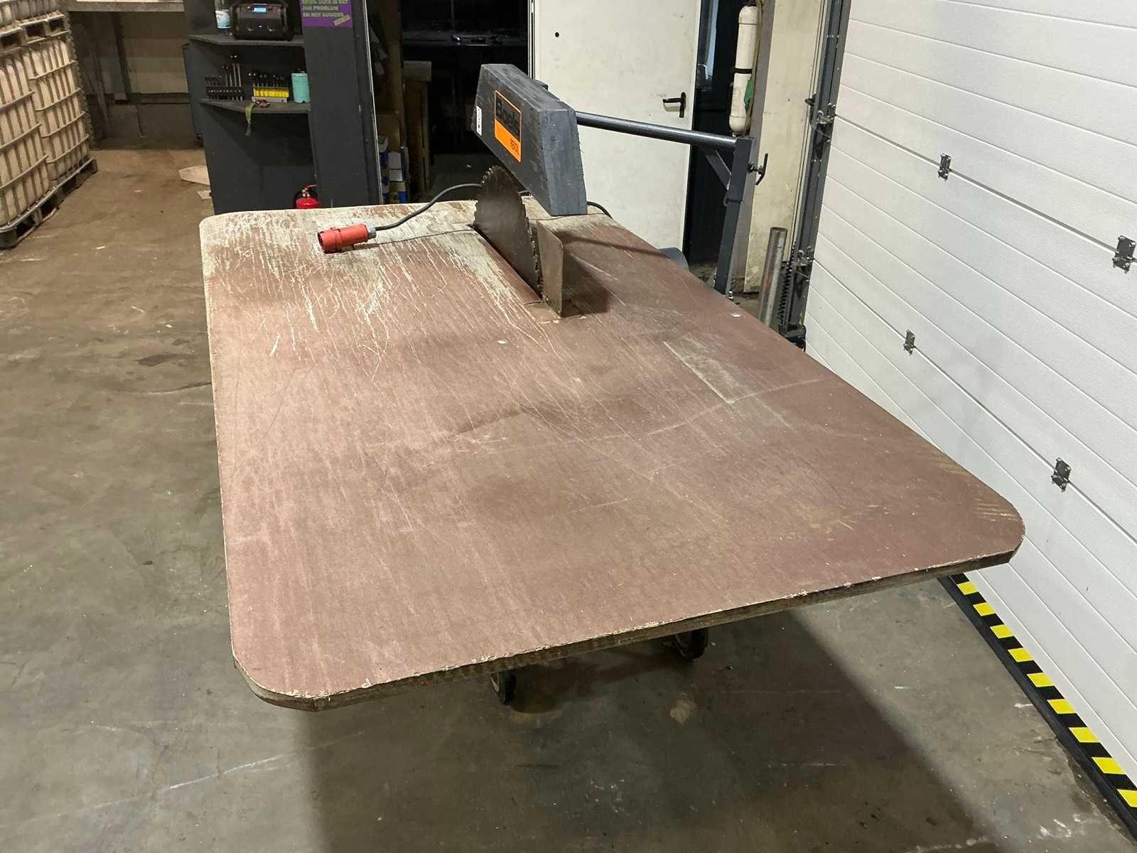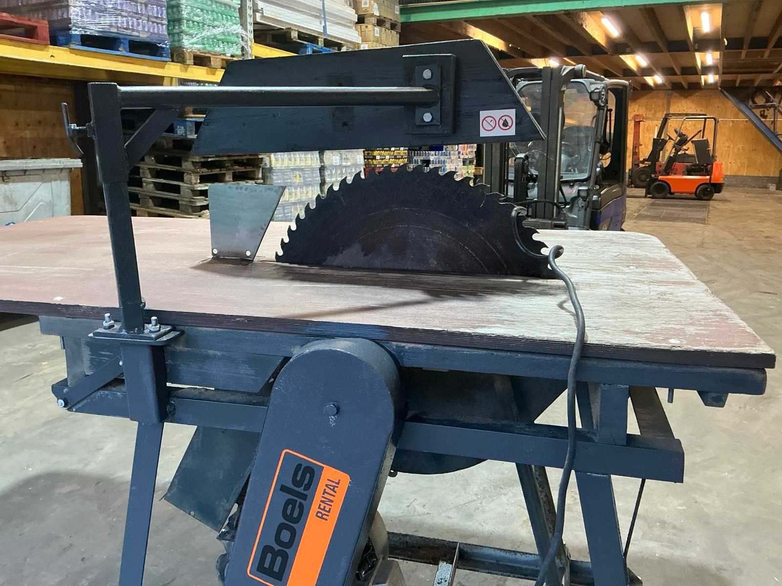Nee Merk: Lammers Type: Bouwzaag Zaagblad Ø: 700mm Zaaghoogte: 250mm Tafel afmeting l: 1100mm Tafel afmeting b: 2200mm Motorvermogen (kW): 3.3kW Aansluiting: 380V Machinegewicht: 230kg Totale afmeting L: 1350mm Totale afmeting Breedte: 2200mm Totale afmeting Hoogte: 1100mm