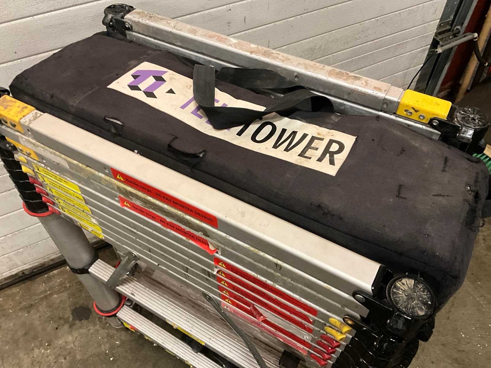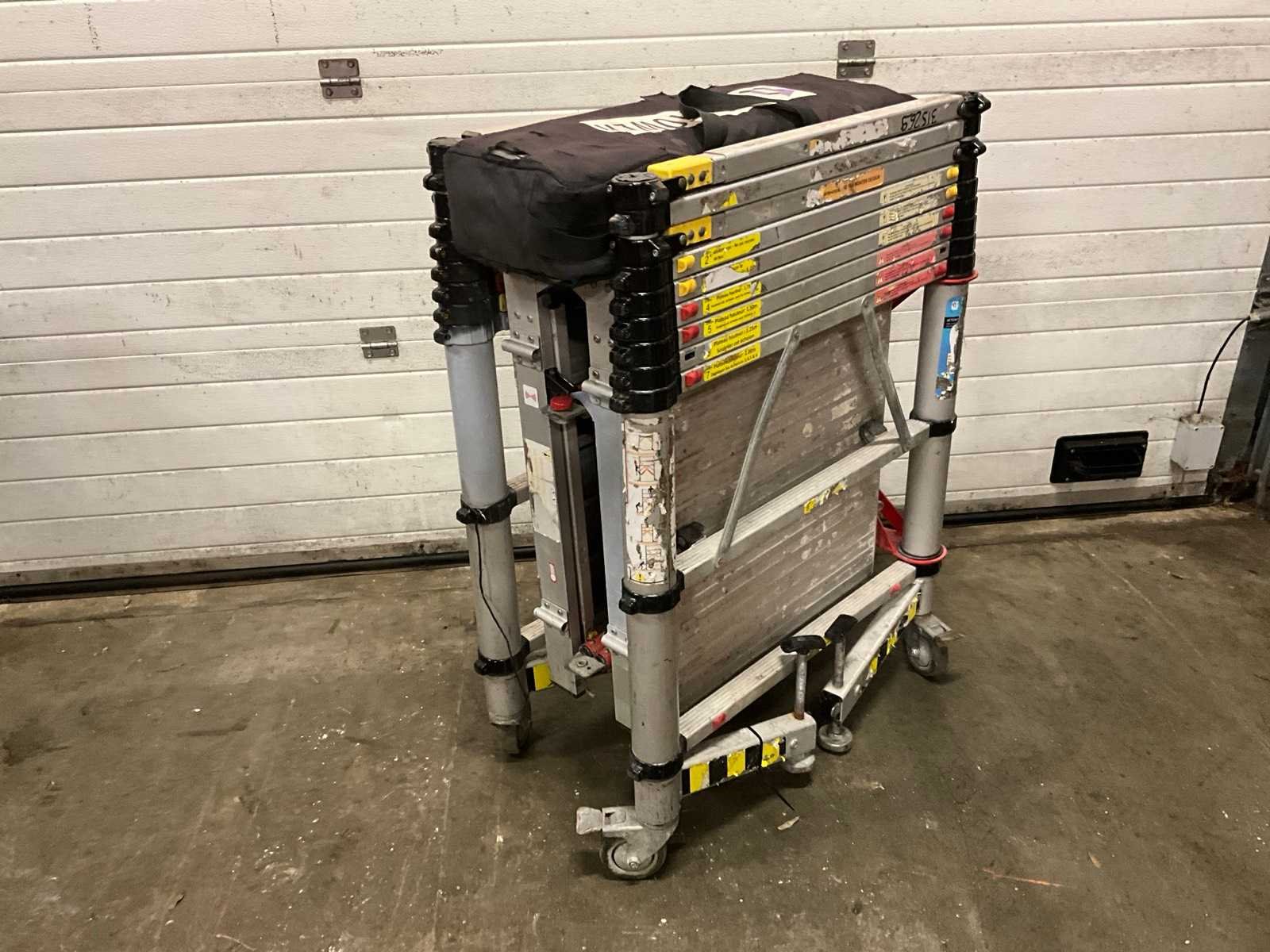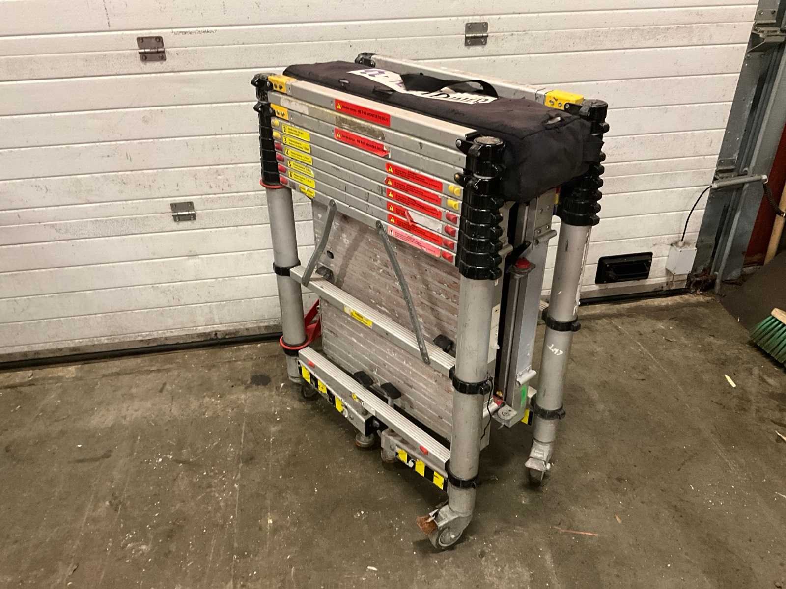Nee Merk: Teletower Type: Telescopic Afmeting l: 1450mm Afmeting b: 750mm Afmeting h: 4000mm Aantal opbouwdelen: 2 Aantal platforms: 1 Aantal platforms met luik: 1 Kantplankenset: true Aantal wielen: 4 Vouwsteiger: true