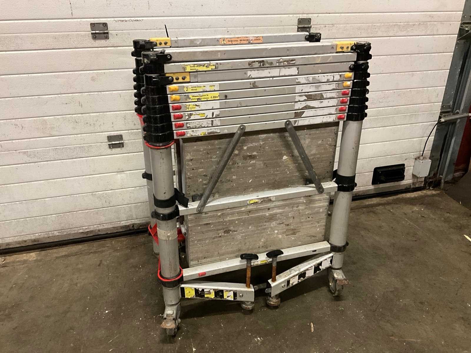 Nee Merk: Teletower Type: Telescopic Afmeting l: 1450mm Afmeting b: 750mm Afmeting h: 4000mm Aantal opbouwdelen: 2 Aantal platforms: 1 Aantal platforms met luik: 1 Aantal wielen: 4 Vouwsteiger: true
