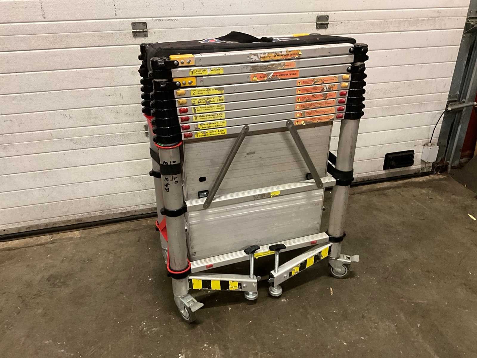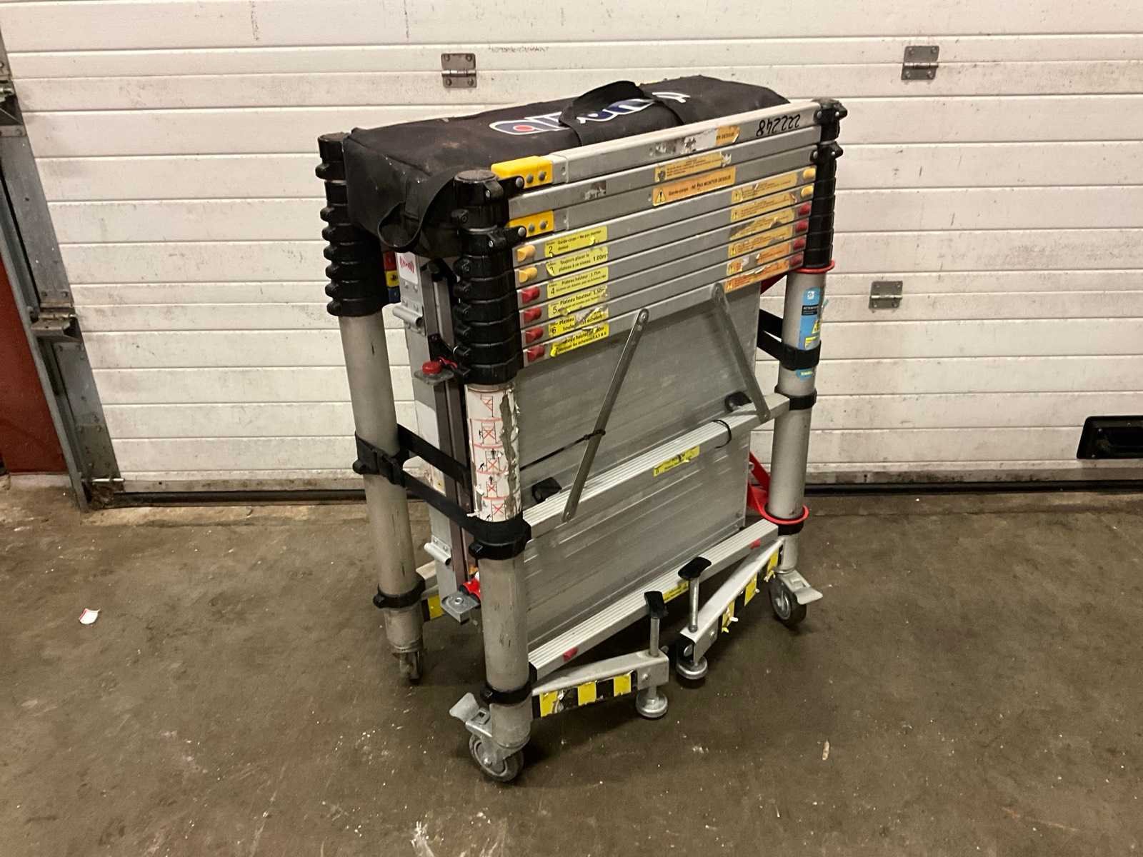 Nee Merk: Teletower Type: Telescopic Afmeting l: 1450mm Afmeting b: 750mm Afmeting h: 4000mm Aantal opbouwdelen: 2 Aantal platforms: 1 Aantal platforms met luik: 1 Kantplankenset: true Aantal wielen: 4 Vouwsteiger: true