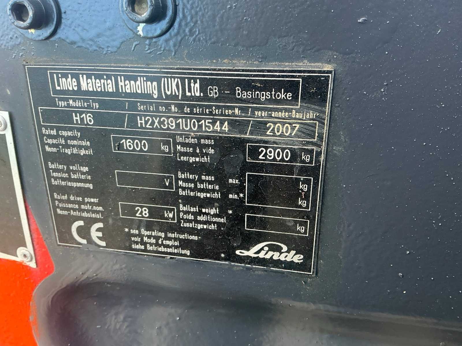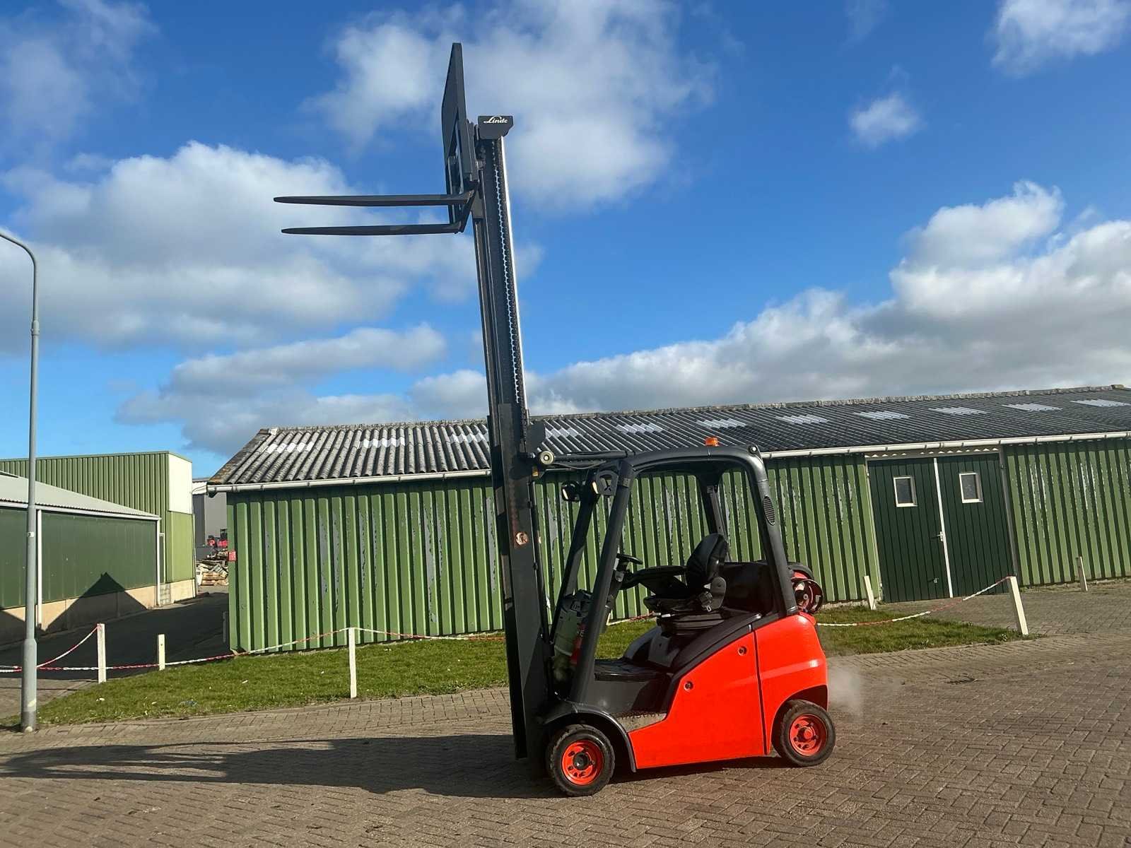 Gascilinder niet inbegrepen Nee Merk: Linde Type: H16 Bouwjaar: 2007 Serienummer: H2X3961U01544 Brandstof: LPG Mast: Duplex Soort band: Volrubber banden Aantal wielen: 4 Side-shift: true Duplex mast: true Eigen gewicht: 2900kg Hefvermogen: 1600kg Lepellengte: 1200mm Hefhoogte: 3850mm Vol rubber banden: true Totale afmeting L: 2250mm Totale afmeting Breedte: 1050mm Totale afmeting Hoogte: 2500mm LPG: true