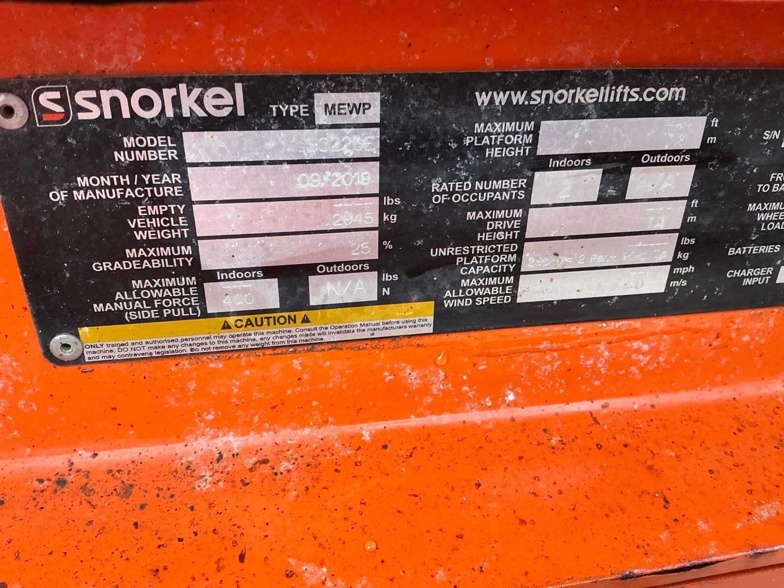 Nee Merk: Snorkel Type: S3226E Bouwjaar: 2019 Serienummer: 1900664 Elektrisch: true Schaarhoogwerker: true Werkhoogte: 9900mm Horizontale rijkwijdte: 910mm Plateau afm. l: 2140mm Plateau afm. b: 720mm Platform capaciteit: 250kg Accu lader: true Eigen gewicht: 2045kg Totale afmeting L: 2300mm Totale afmeting Breedte: 810mm Totale afmeting Hoogte: 2300mm