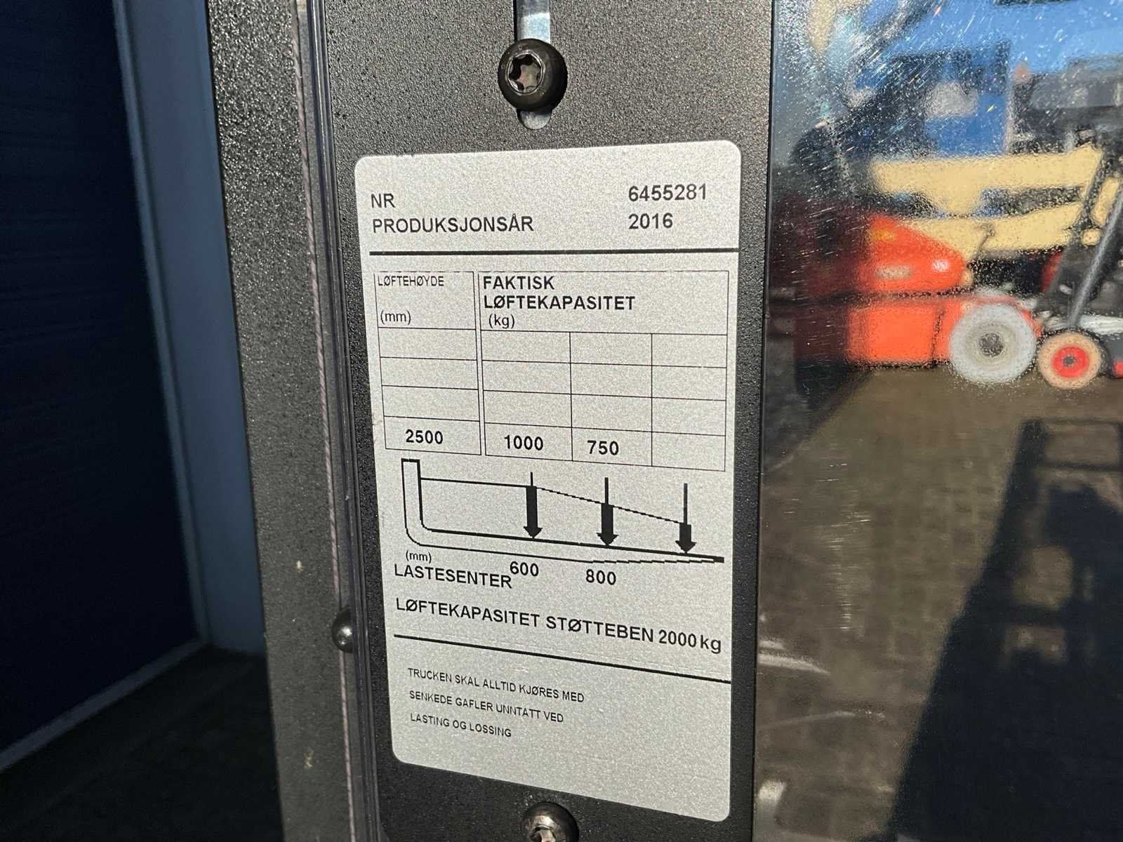 Double stacker Nee Merk: BT Type: SPE200D Bouwjaar: 2016 Serienummer: 6455281 Hefvermogen: 2000kg Hefhoogte: 2600mm Lepellengte: 1200mm Eigen gewicht: 957kg Minimale doorrijhoogte: 1850mm Totale afmeting L: 2200mm Totale afmeting Breedte: 750mm Meerij stapelaar: true