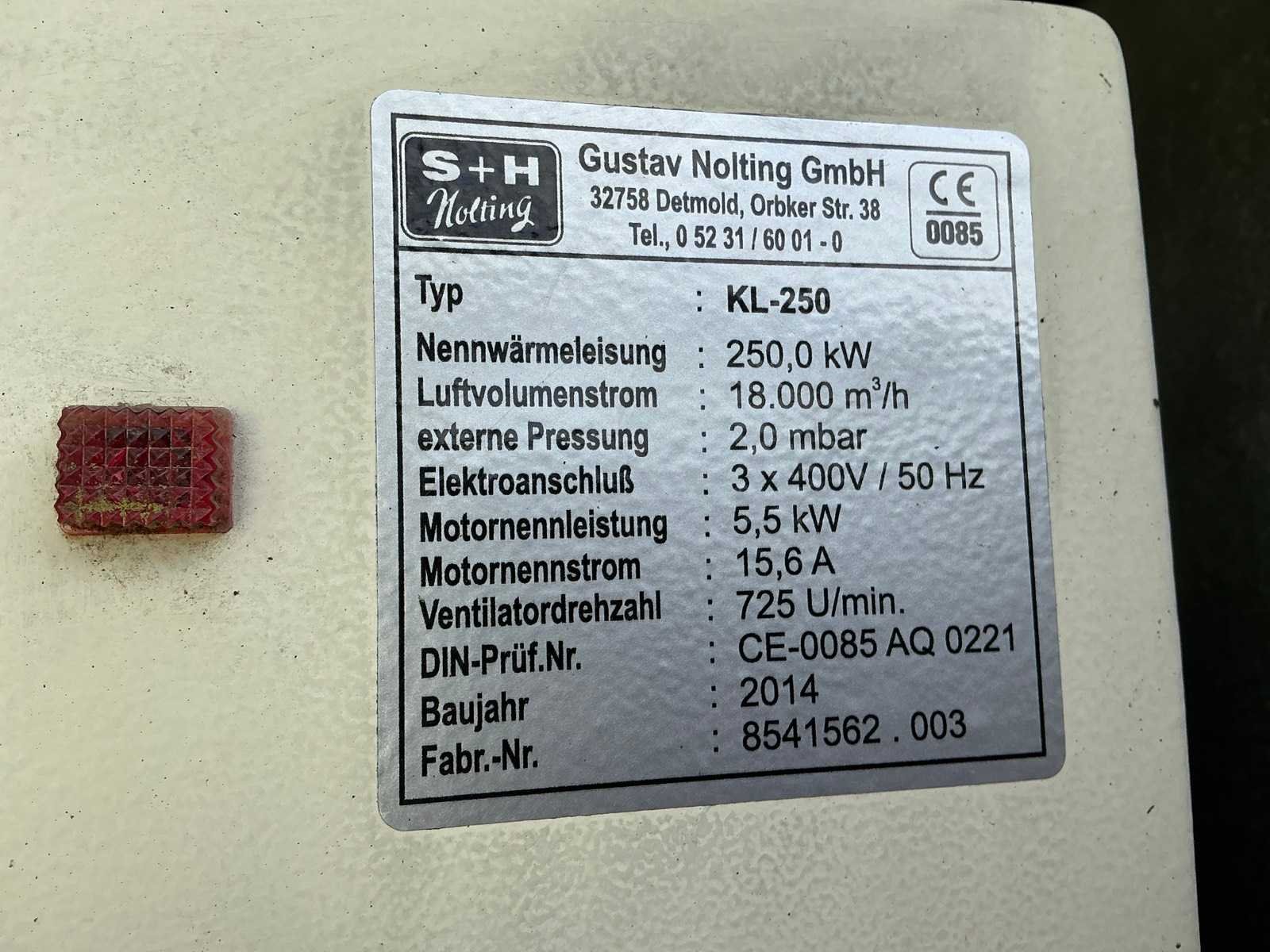 Nee Merk: Gustav nolting Type: KL260 Bouwjaar: 2014 Serienummer: 8541562003 Vermogen: 250kW Ventilator: true Thermostaat: true Totale afmeting L: 1100mm Totale afmeting Breedte: 3550mm Totale afmeting Hoogte: 2050mm
