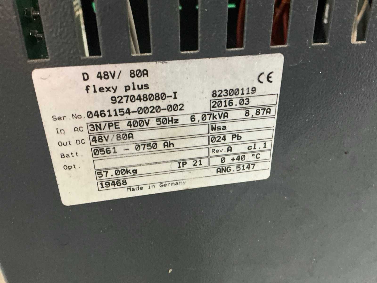 Niet getest Nee Merk: Flexi plus Type: 48/80 Spanning: 80V Laadstroom: 48A Aansluiting: 400V