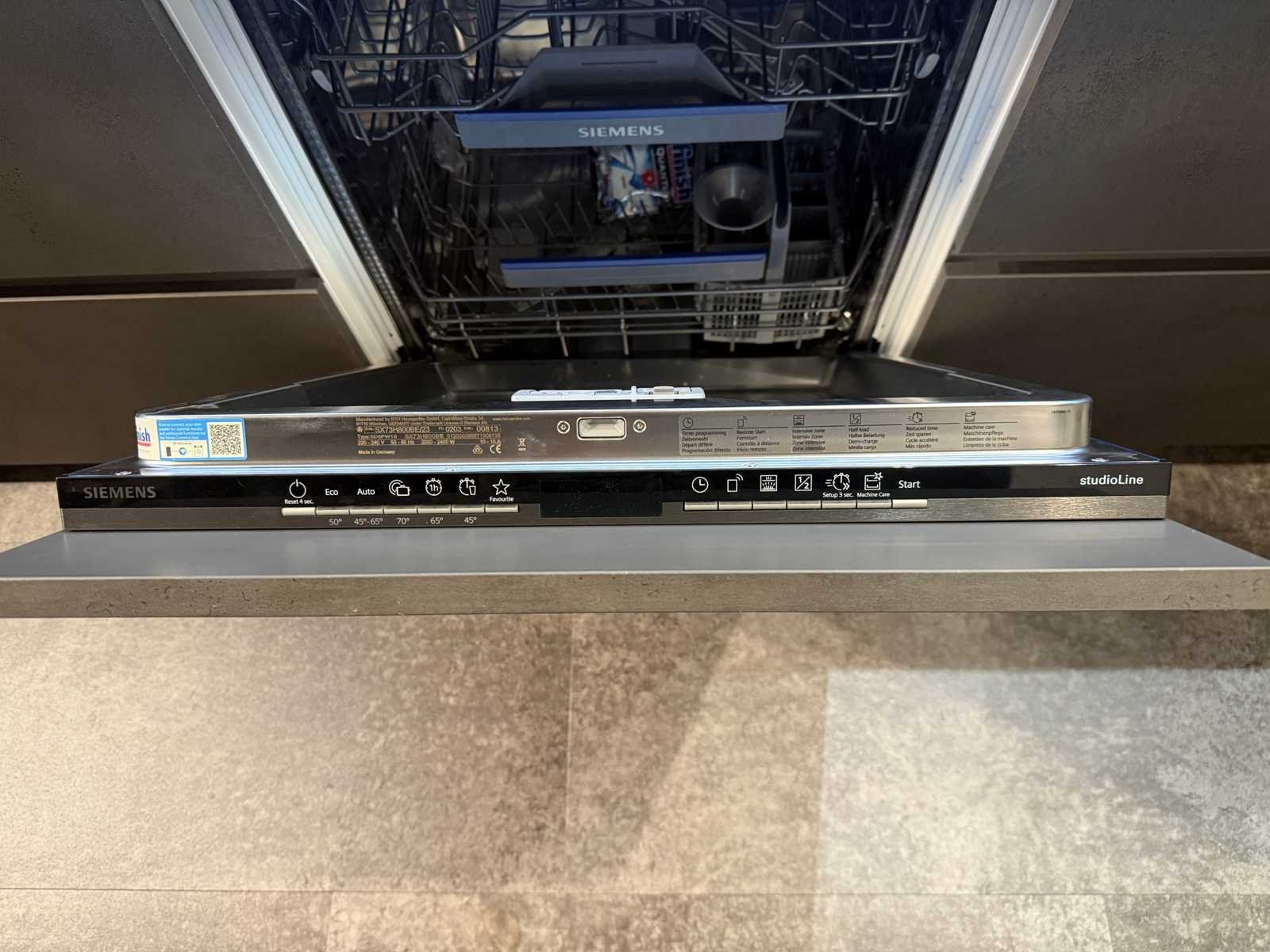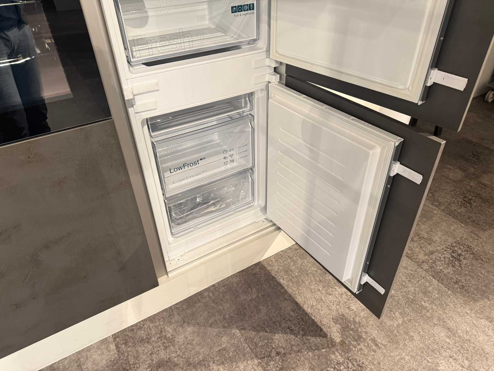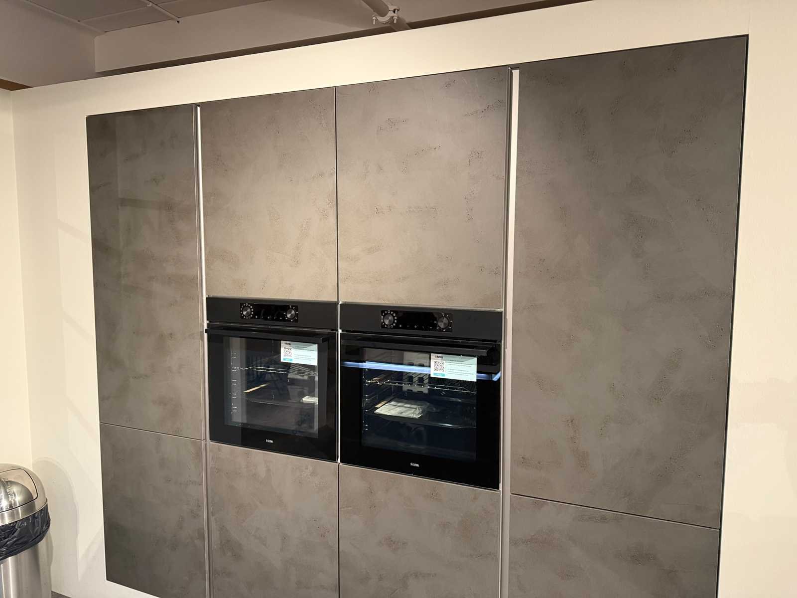 Afmetingen kastenwand met ovens circa 246x60x225 cm; afmetingen witte kastenwand circa 180x30 cm; reeds gedemonteerd en ingepakt op pallets. (afstapelen, omruilen of statiegeld per pallet); pallets zijn niet inbegrepen; statiegeld betalen bij afhalen, of pallets afstapelen; werkblad niet ingepakt op pallets (25-KEX-02578) Nee Merk: Nolte Type keukenopstelling: Eiland Kraan: Kludi Gootsteen: Franke Aanrechtblad: Kunststof betonlook Fornuis: Bosch Accent line Koelkast: Siemens KI86V5SF0 Softclose: true Oven: 2x Etna OM316MZ Afzuigkap: Novy 7520 Vaatwasser: Siemens Studioline SX73H800BE Lengte kookeiland: 300cm Breedte kookeiland: 102cm Hoogte kookeiland: 90cm Kleur: Grijs betonlook