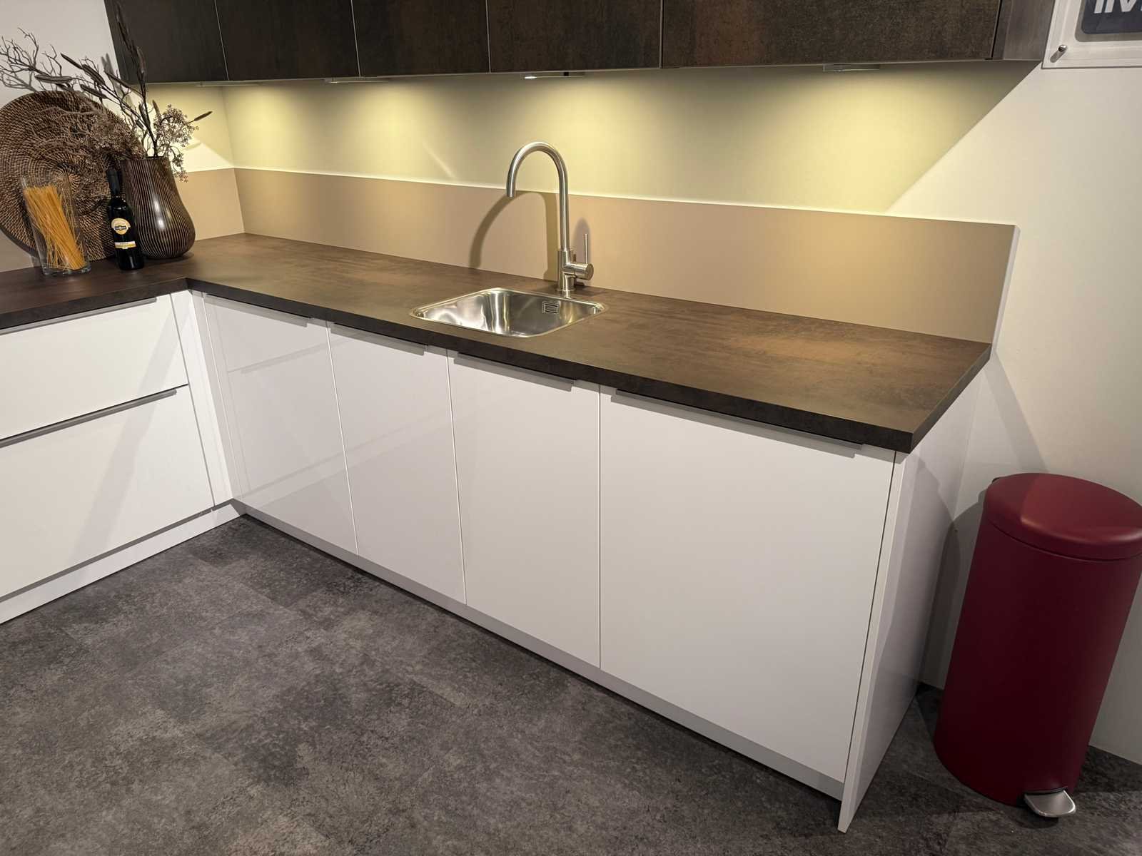 Afmetingen linkerdeel circa 232x60x90 cm; afmetingen rechterdeel circa 275x60x90 cm; afmetingen kastenwand circa 123x65x220 cm; reeds gedemonteerd en ingepakt op pallets. (afstapelen, omruilen of statiegeld per pallet); pallets zijn niet inbegrepen; statiegeld betalen bij afhalen, of pallets afstapelen; werkblad niet ingepakt op pallets (25-KEX-02584) Nee Merk: Nolte Type keukenopstelling: Hoek Kraan: Lanesto Gootsteen: Lanesto Aanrechtblad: Kunststof roestlook Magnetron: AEG CD710M Fornuis: AEG Koelkast: AEG SKB810E1AF Softclose: true Afzuigkap: AEG DD5960V Vaatwasser: AEG FD395V Kleur: Hoogglans wit