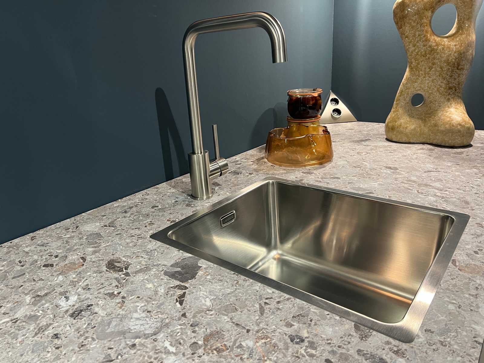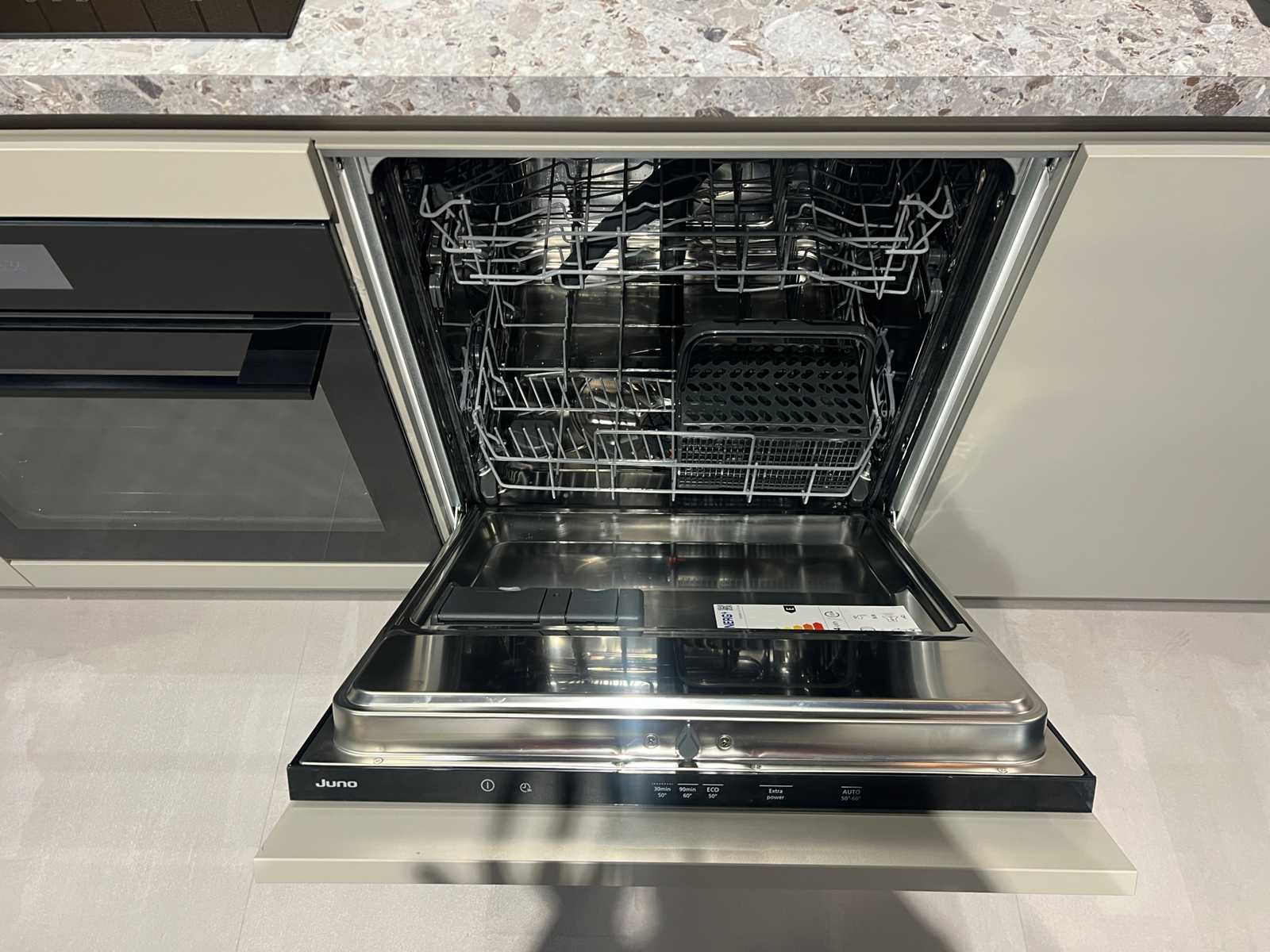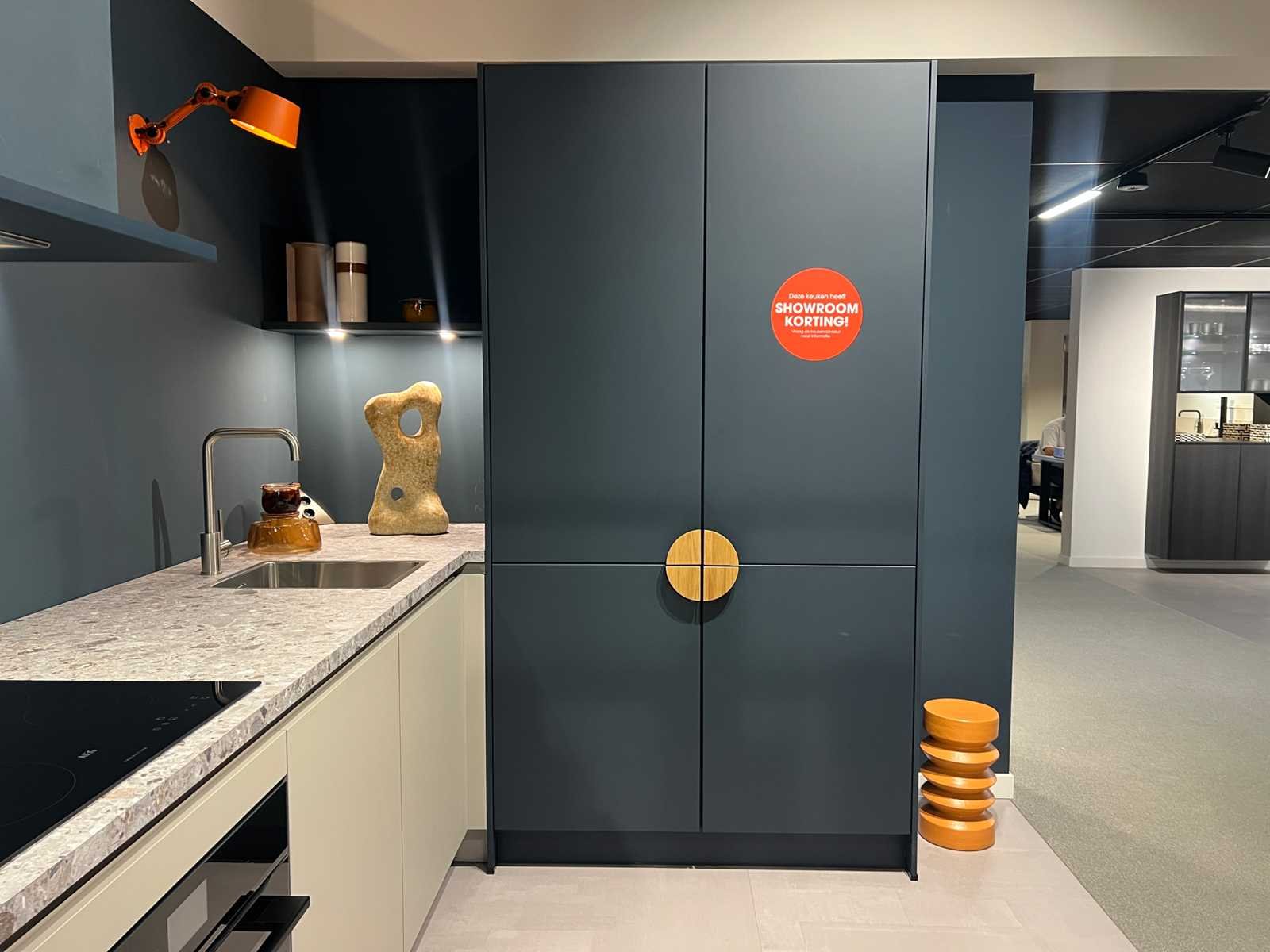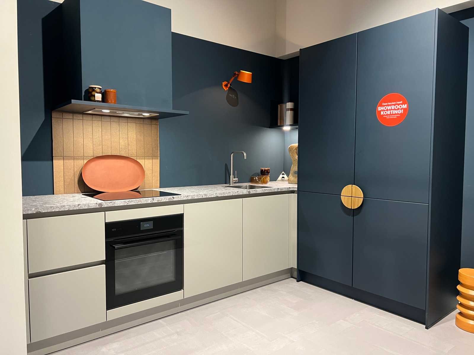 Afmetingen kastenwand circa 123x60x228 cm; reeds gedemonteerd en ingepakt op pallets. (afstapelen, omruilen of statiegeld per pallet); pallets zijn niet inbegrepen; statiegeld betalen bij afhalen, of pallets afstapelen; werkblad niet ingepakt op pallets (26-SKU-03783) Nee Merk: Schüller Type keukenopstelling: Recht met kastenwand Lengte: 295cm Breedte: 70cm Hoogte: 94,5cm Kraan: Lanesto Gootsteen: Lanesto Aanrechtblad: Decortop Fornuis: AEG Softclose: true Oven: AEG BP7200B Afzuigkap: AEG DGB2531M Vaatwasser: Juno JGVN606E4 Kleur: Kiezelgrijs / diepblauw anti-fingerprint