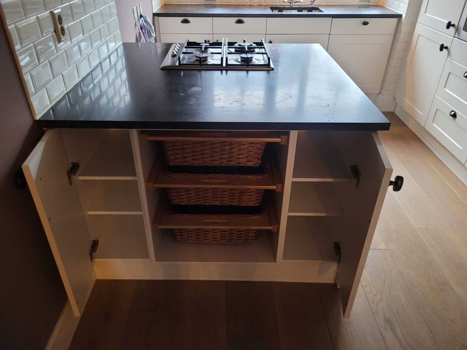 Conditie: gebruikt; afmetingen kastenwand circa 201x60x235 cm; reeds gedemonteerd en ingepakt op pallets. (afstapelen, omruilen of statiegeld per pallet); pallets zijn niet inbegrepen; statiegeld betalen bij afhalen, of pallets afstapelen; werkblad niet ingepakt op pallets (26-2DE-03653) Nee Type keukenopstelling: Schiereiland Lengte: 225cm Breedte: 60cm Hoogte: 92cm Kraan: Ja + Quooker Gootsteen: Ja Aanrechtblad: Natuursteen Magnetron: Whirlpool AMW520 Fornuis: Siemens ER14853NL Koelkast: AEG SCB418F3LS Softclose: true Afzuigkap: Whirlpool AKR510IX Vaatwasser: Indesit DIFP28T9AEU Lengte kookeiland: 127cm Breedte kookeiland: 120cm Hoogte kookeiland: 92cm