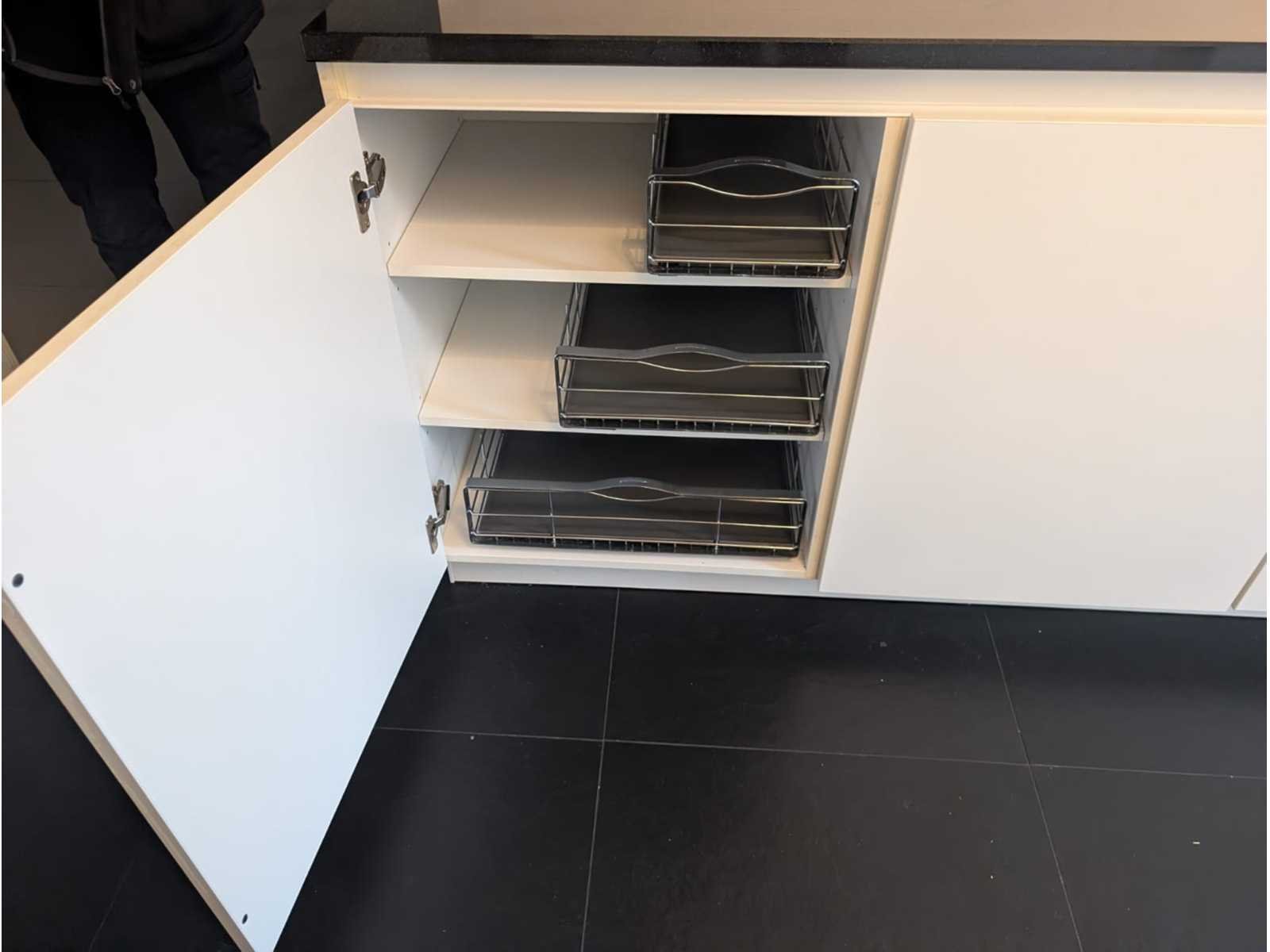 Conditie: gebruikt; afmetingen kastenwand circa 247x60x223 cm; reeds gedemonteerd en ingepakt op pallets. (afstapelen, omruilen of statiegeld per pallet); pallets zijn niet inbegrepen; statiegeld betalen bij afhalen, of pallets afstapelen; werkblad niet ingepakt op pallets (26-2DE-03761) Nee Type keukenopstelling: Eiland Lengte: 246cm Breedte: 60cm Hoogte: 91cm Kraan: Grohe Gootsteen: ABK Aanrechtblad: Composiet Magnetron: Miele Fornuis: Boretti Koelkast: Boretti Vriezer: Boretti Vaatwasser: Siemens Lengte kookeiland: 305cm Breedte kookeiland: 100cm Hoogte kookeiland: 92cm