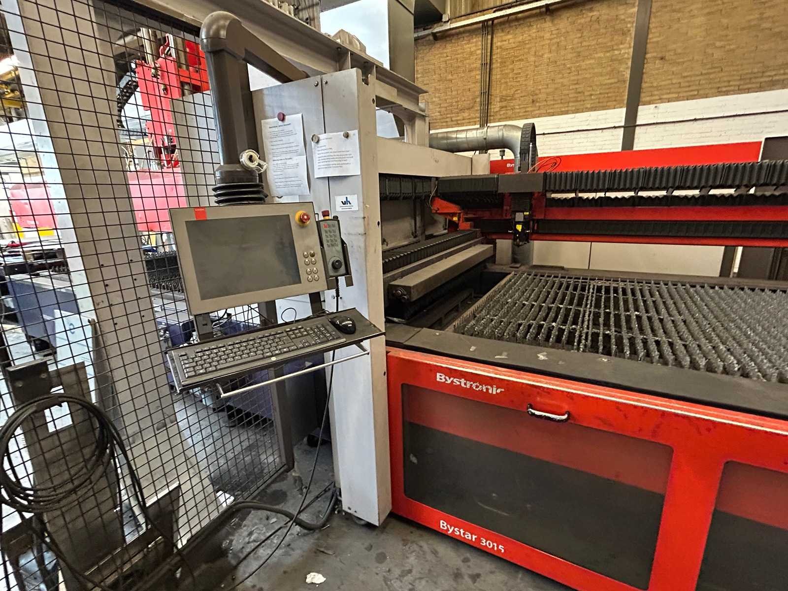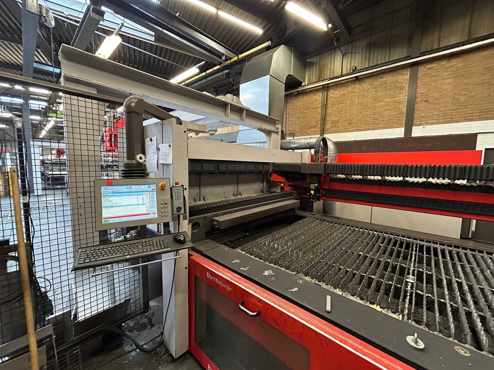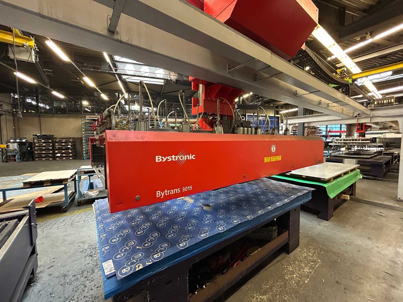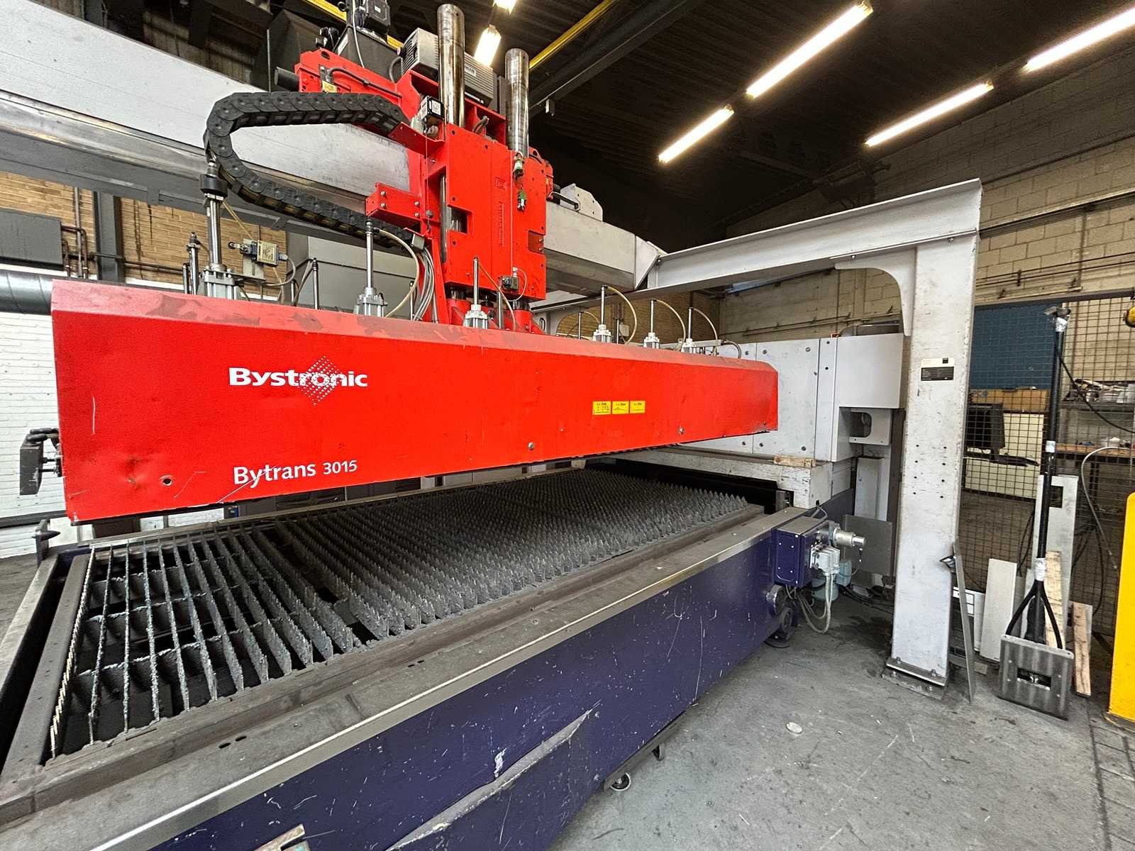 Lasersnijmachine Bystar 3015: Snij Tijd 37010 Uur. Vacuum pomp 23315 Uur. Power on Tijd 77838 Uur. Laad en los systeem Bytrans 3015 Koeler Afzuigsysteem Inclusief gasinstallatie 2024 Groot onderhoud gedaan en CPU unit vervangen. Rekeningen zijn aanwezig. machine is per direct beschikbaar. No Merk: Bystronic Type: Bystar 3015 + Bytrans 3015 Bouwjaar: 2009 Serienummer: 3319 Laservermogen: 4,4kW Golflengte bereik: 10600nm Werkbereik x: 3000mm Werkbereik y: 1500mm Werkbereik z: 170mm Snijsnelheid: 50m/min Tafel afmeting l: 3000mm Tafel afmeting b: 1500mm Afgelezen urenstand: 77838 Motorvermogen (kW): 51kW Aansluitwaarde: 125A Aansluiting: 380V Machinegewicht: 13000kg Afmeting l: 19000mm Afmeting b: 7300mm Afmeting h: 3883mm Leveringsvoorwaarden: Niet gefundeerd - onverpakt