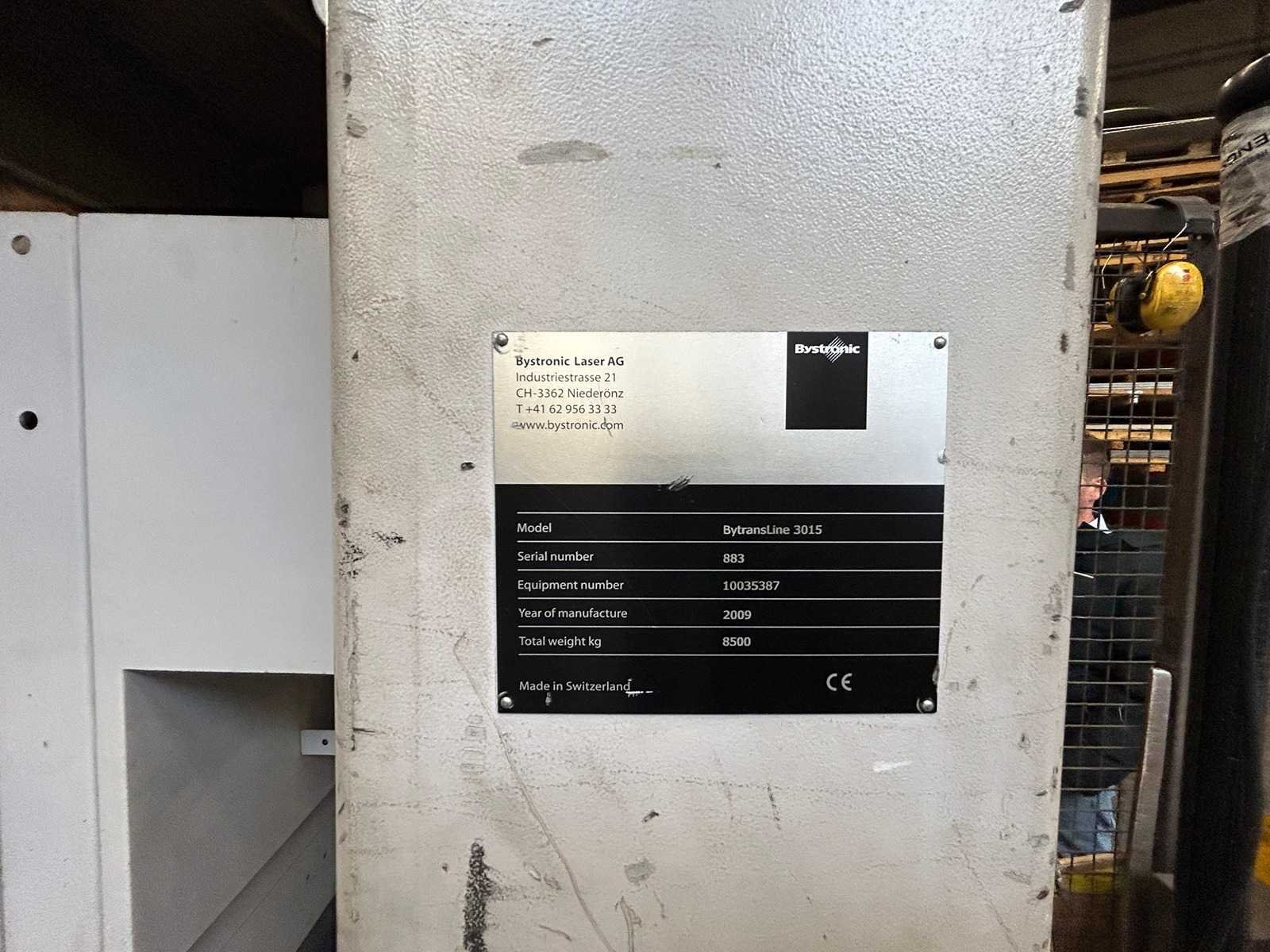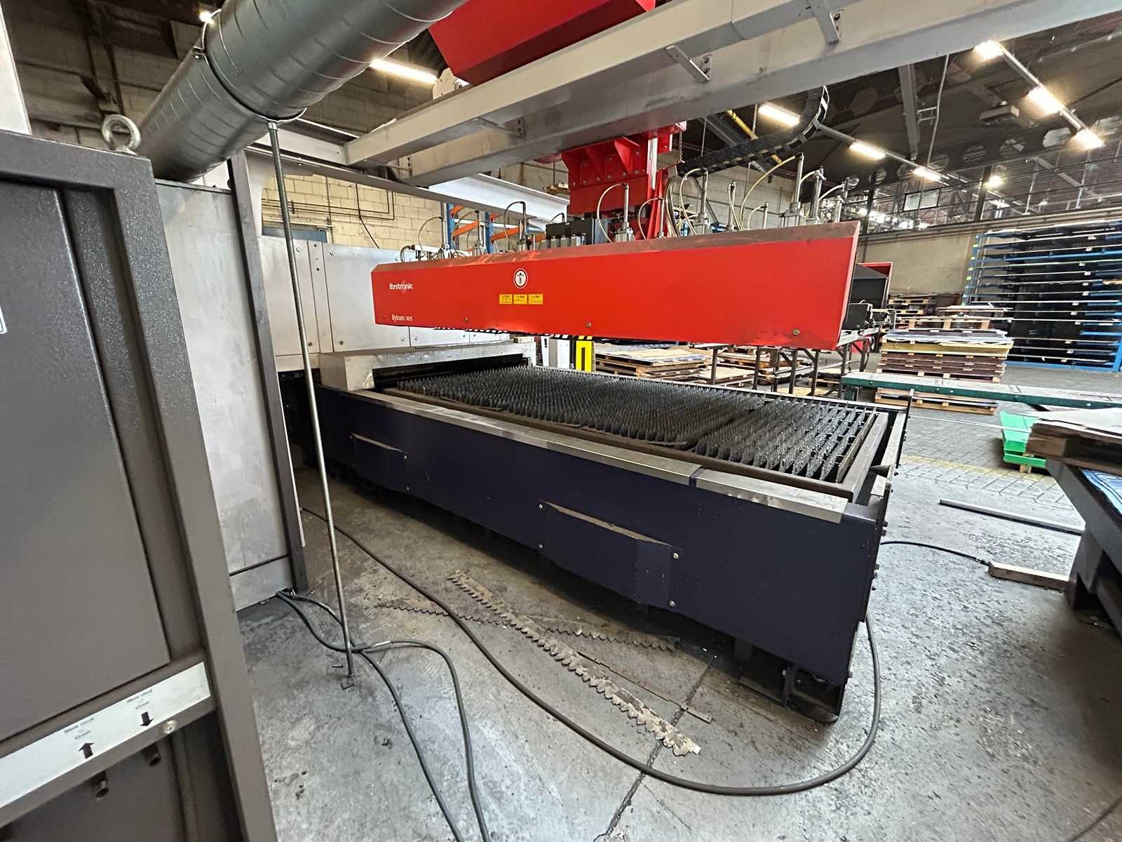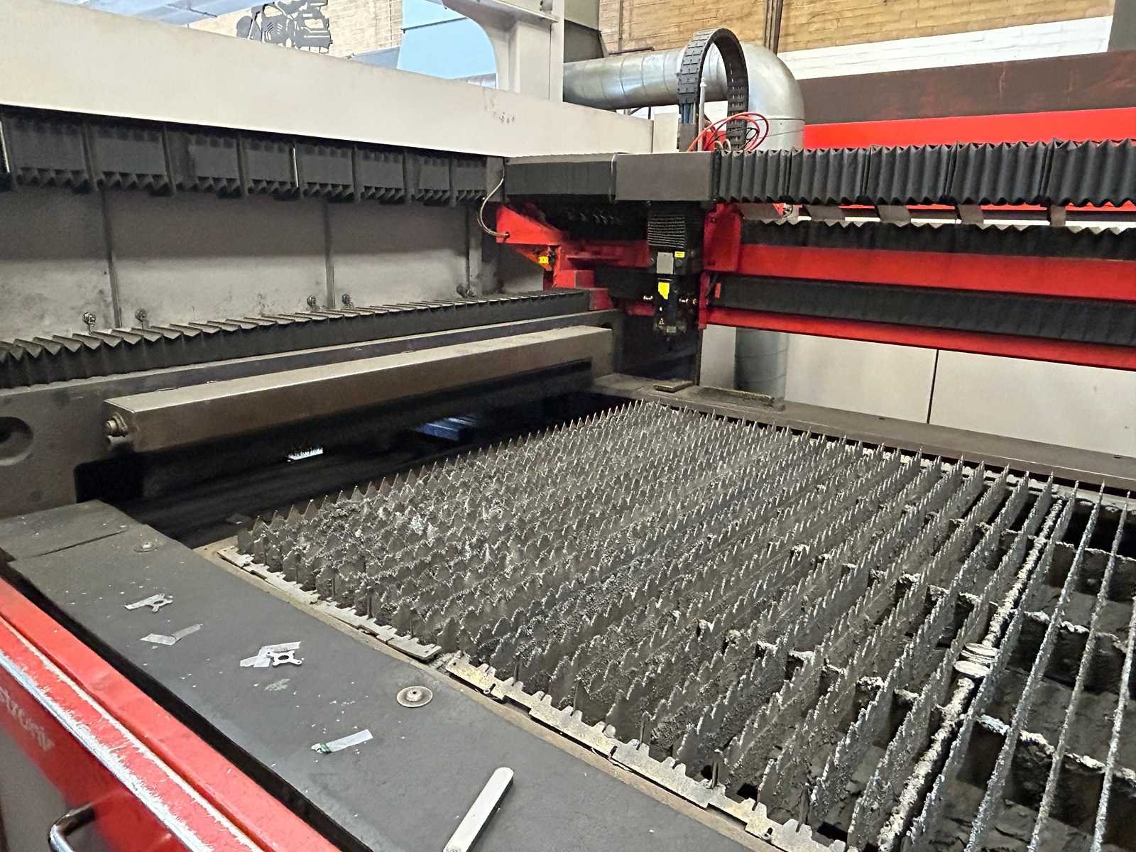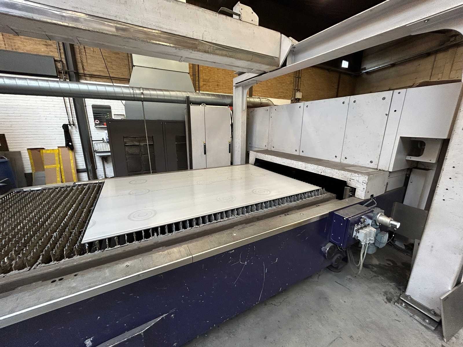 Lasersnijmachine Bystar 3015: Snij Tijd 37010 Uur. Vacuum pomp 23315 Uur. Power on Tijd 77838 Uur. Laad en los systeem Bytrans 3015 Koeler Afzuigsysteem Inclusief gasinstallatie 2024 Groot onderhoud gedaan en CPU unit vervangen. Rekeningen zijn aanwezig. machine is per direct beschikbaar. No Merk: Bystronic Type: Bystar 3015 + Bytrans 3015 Bouwjaar: 2009 Serienummer: 3319 Laservermogen: 4,4kW Golflengte bereik: 10600nm Werkbereik x: 3000mm Werkbereik y: 1500mm Werkbereik z: 170mm Snijsnelheid: 50m/min Tafel afmeting l: 3000mm Tafel afmeting b: 1500mm Afgelezen urenstand: 77838 Motorvermogen (kW): 51kW Aansluitwaarde: 125A Aansluiting: 380V Machinegewicht: 13000kg Afmeting l: 19000mm Afmeting b: 7300mm Afmeting h: 3883mm Leveringsvoorwaarden: Niet gefundeerd - onverpakt