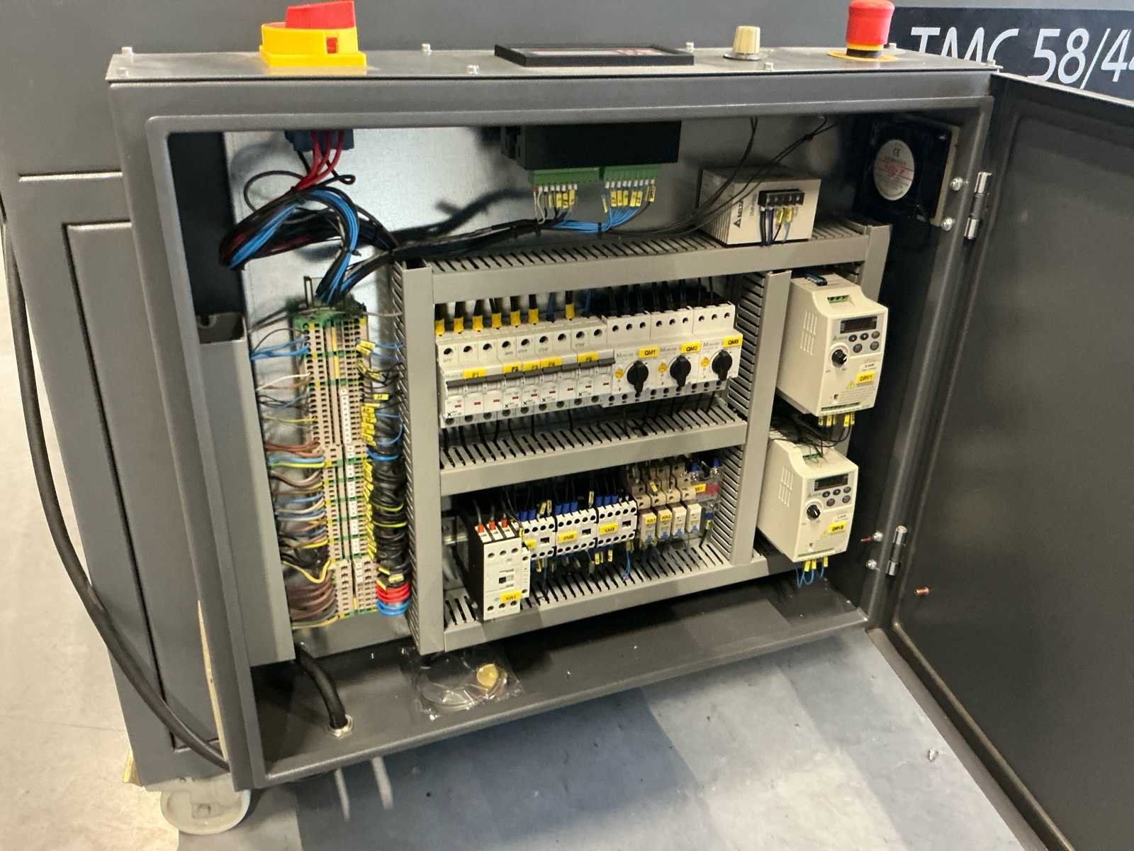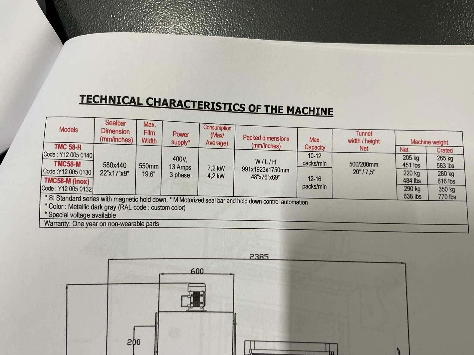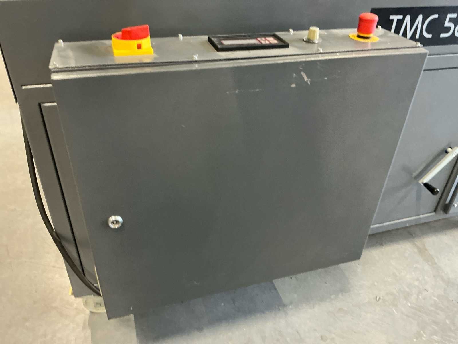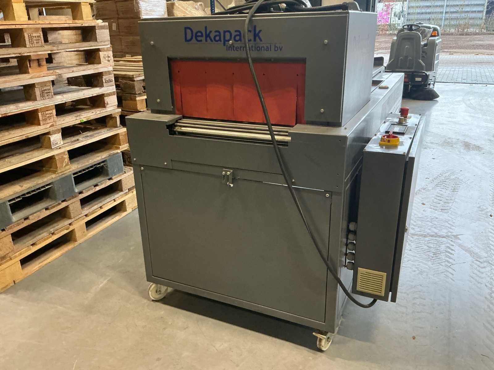 5,5 kw, maximaal 12 tot 16 per minuut, 450 uur gedraaid, inclusief transportband. Nee Merk: Dekapack Type: TMC 58x44 Bouwjaar: 2011 Serienummer: Y 12.005.0131 Max. formaat l: 550mm Werkbreedte: 440mm Rolhouder: true Transportband: true Transportband afm. l: 1200mm Transportband afm. b: 450mm Transportband afm. h: 1000mm Aansluiting: 400V Eigen gewicht: 350kg Totale afmeting L: 2385mm Totale afmeting Breedte: 1100mm Totale afmeting Hoogte: 1600mm