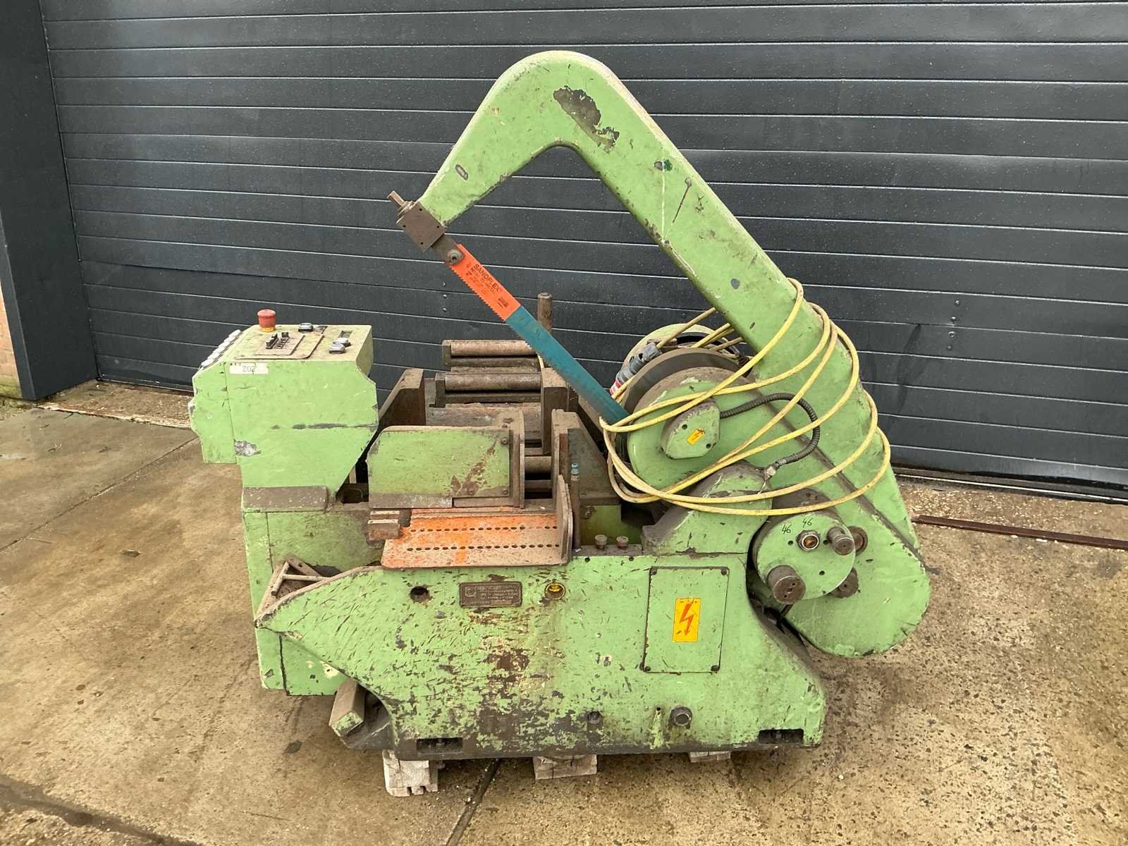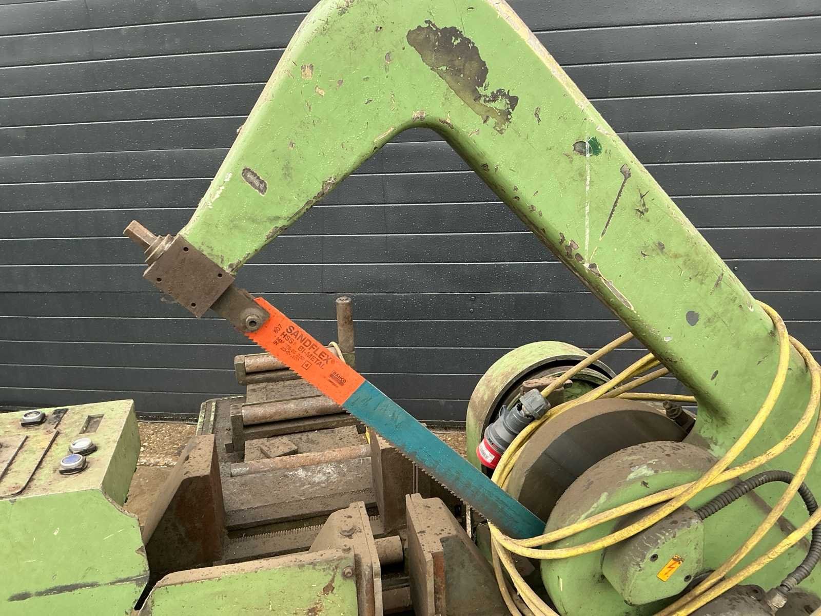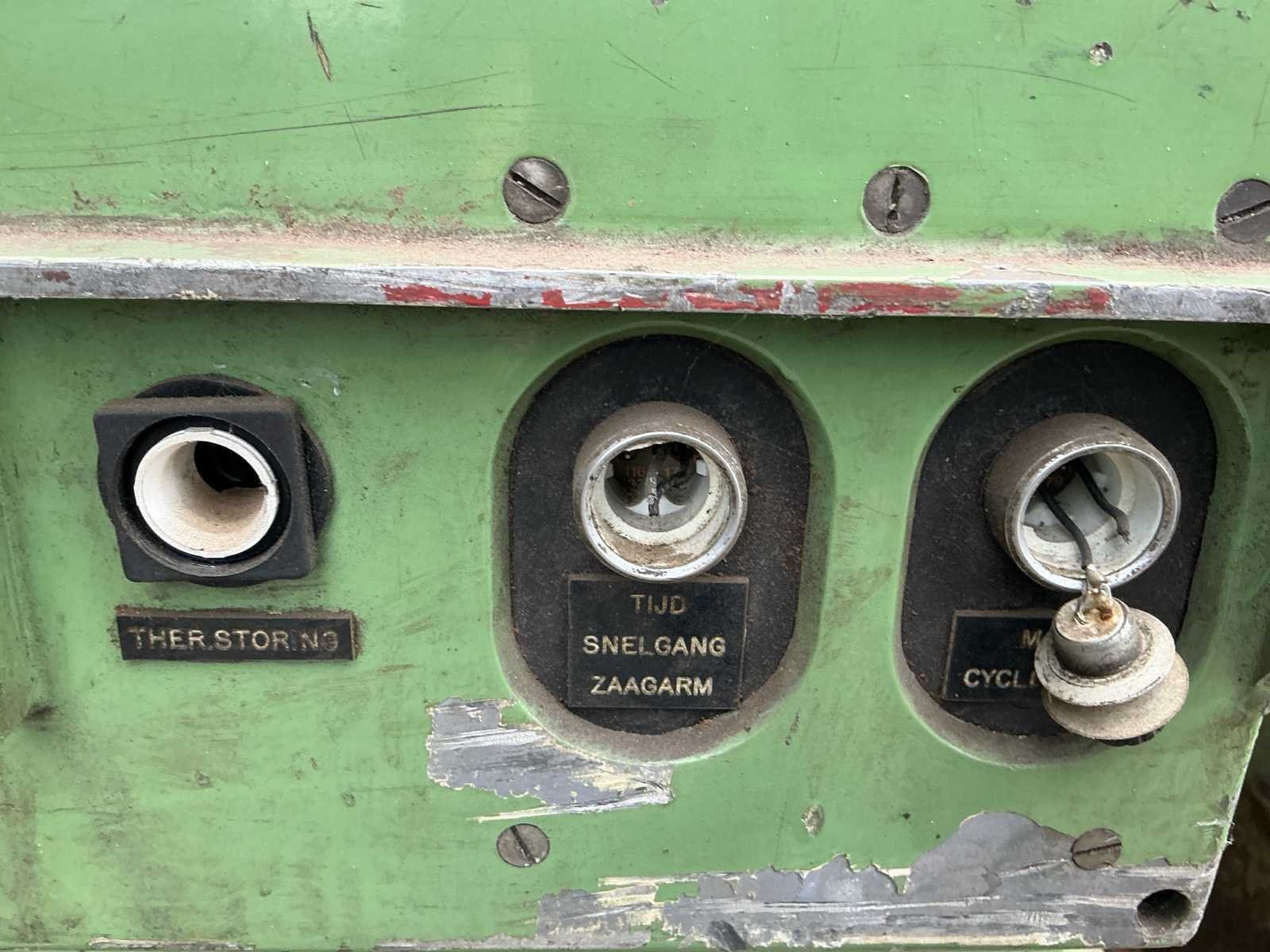 Lengte zaagblad 60cm. Max breedte opspanning: 34cm. Voorzien van 380V aansluiting, bedieningskast. Nee Merk: Kasto Zaagblad afm. l: 600mm Zaagblad afm. b: 50mm Zaagbereik: 340mm Aansluiting: 380V Afmeting l: 1700mm Afmeting b: 1900mm Afmeting h: 1600mm